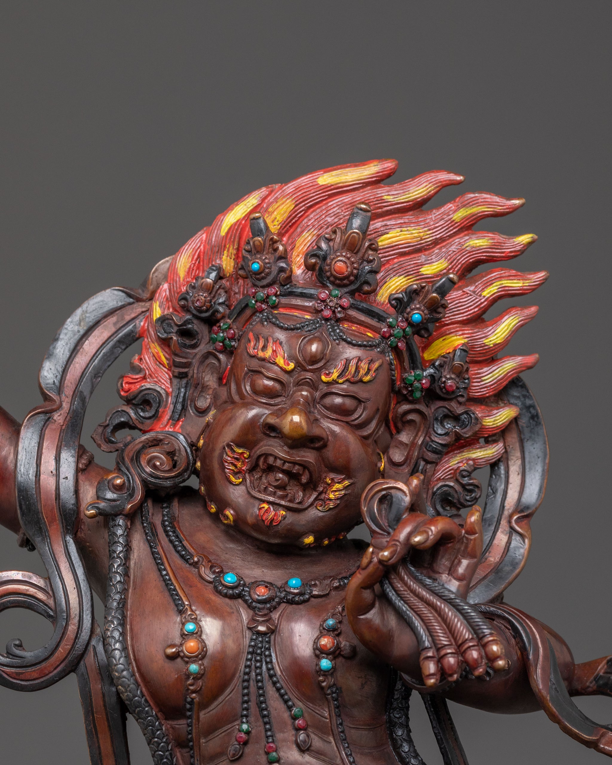 Mahakala Statue for Ritual and Meditation | Consort of Mahakali, the Fearsome God Mahakala Gerard Huber The statue of six-armed Mahakala is beautiful beyond my wildest imaginings for beauty, quality of craftsmanship, artistic insight, and overall presence in my life. I have given it "pride of place" in my artist studio and office.