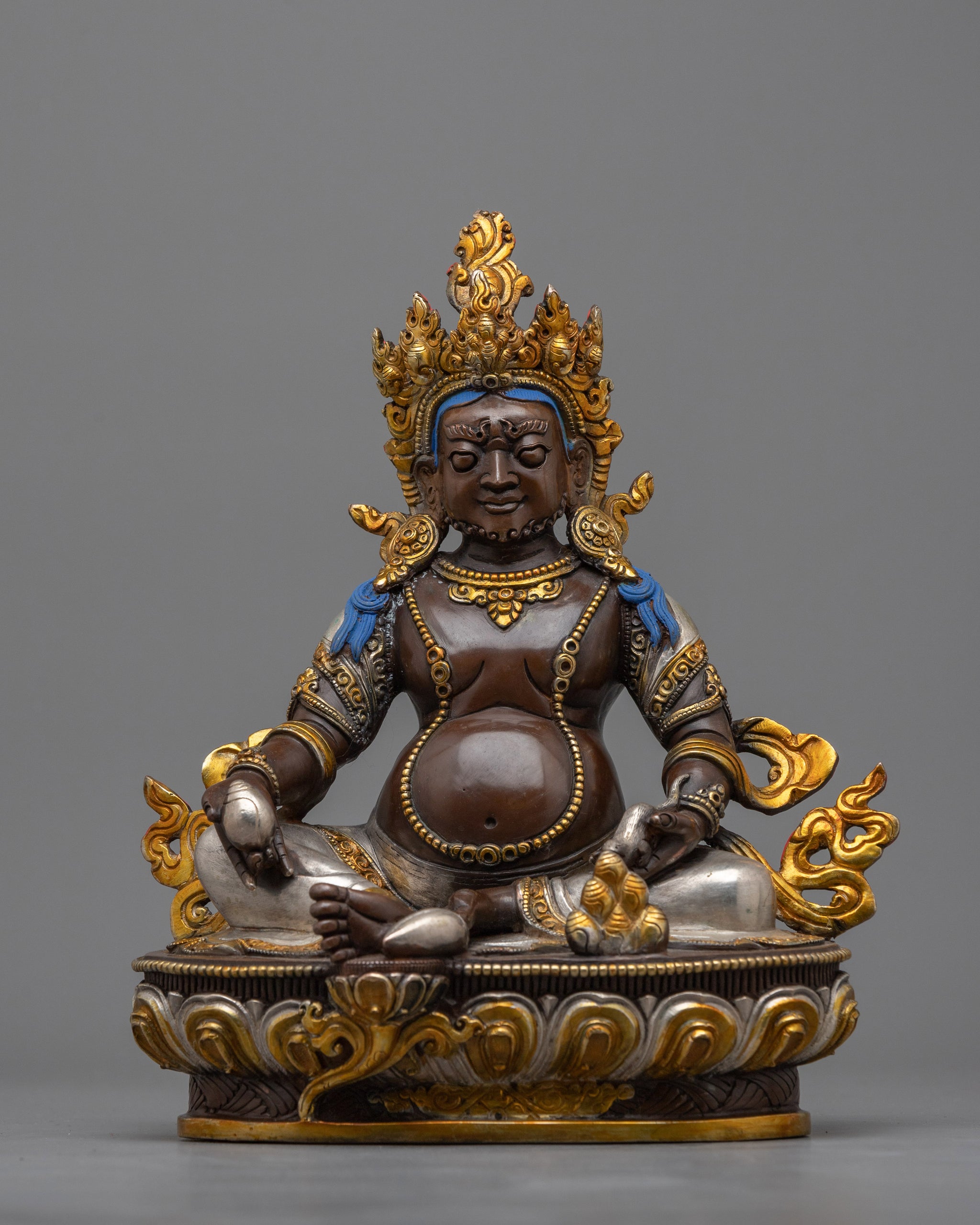 Elevate your spiritual environment with the superbly sculpted Dzamba La statue from Nepal, which exudes an opulent vibe of wealth and prosperity. The dynamic position of Dzambhala, who is regarded in the Buddhist tradition as the deity of wealth and prosperity, symbolizes his role in bestowing abundance and financial stability upon people who seek his blessings.