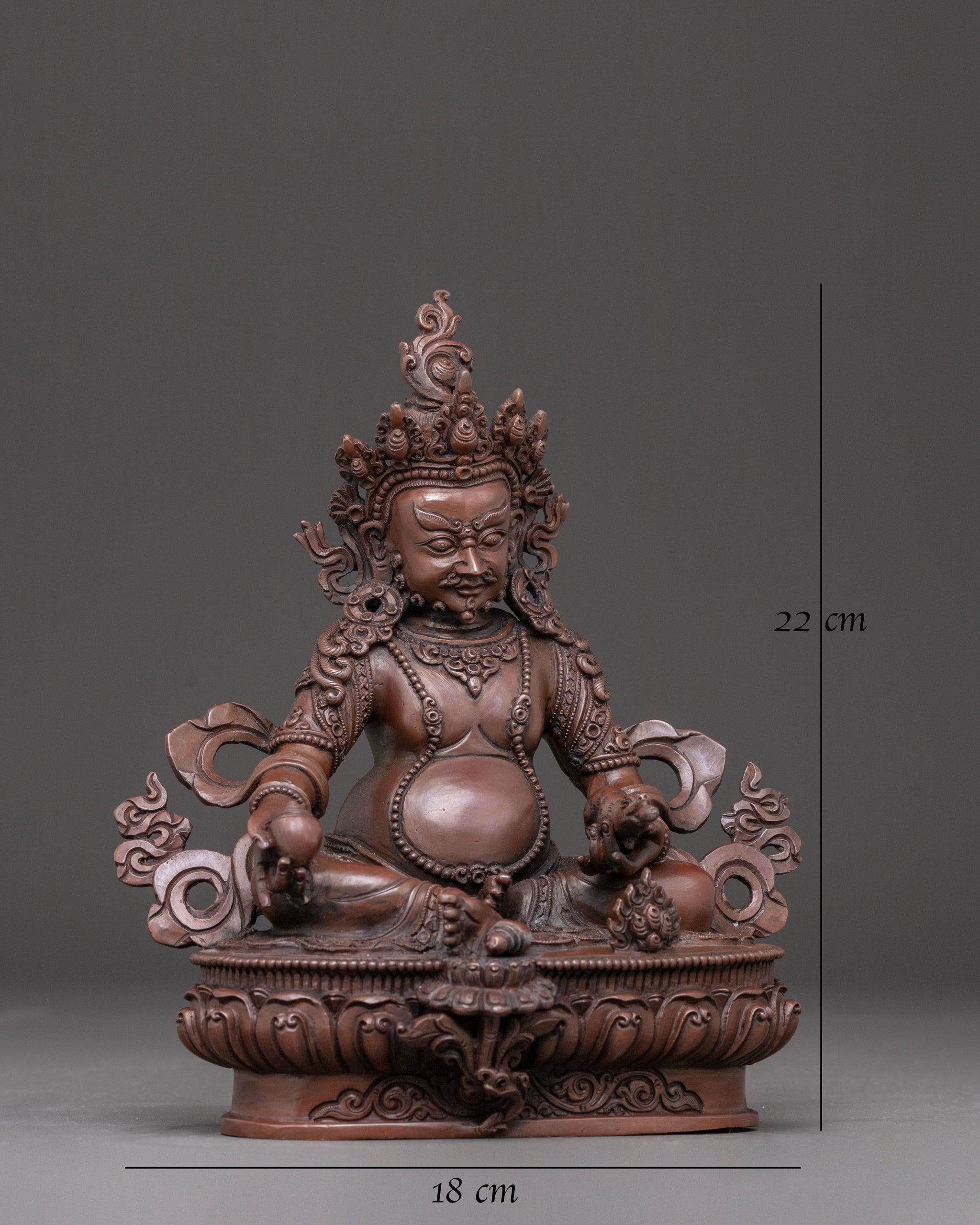 Dzambhala Kuber, a Buddhist deity, is the God of Wealth and Prosperity. This deity represents prosperity, generosity, and wealth and is designed to encourage these values in humans. By bringing this lovely Dzambhala Kuber Statue into your house, you're adding a one-of-a-kind piece of spiritual artwork to your decor and encouraging prosperity, charity, and spiritual growth.