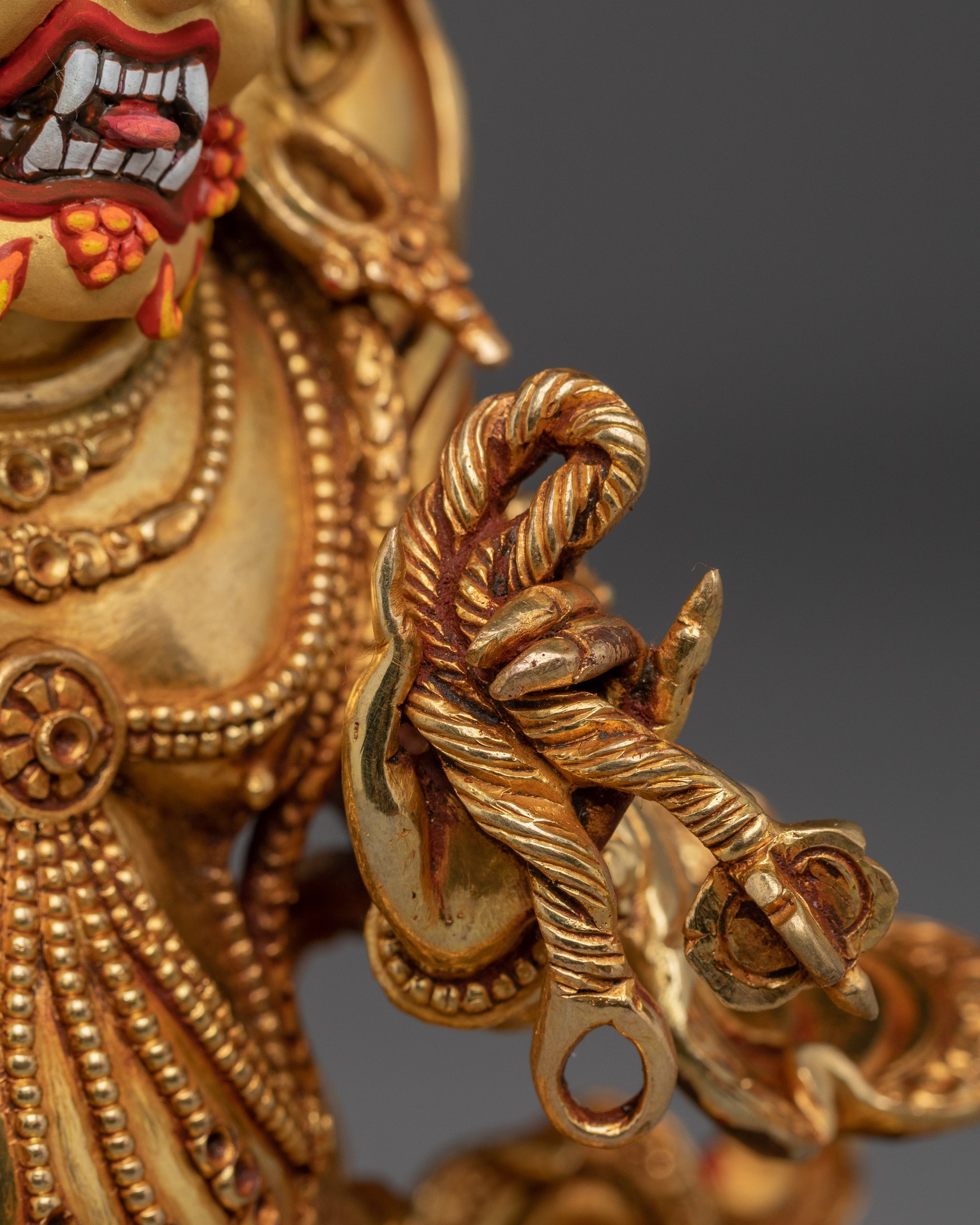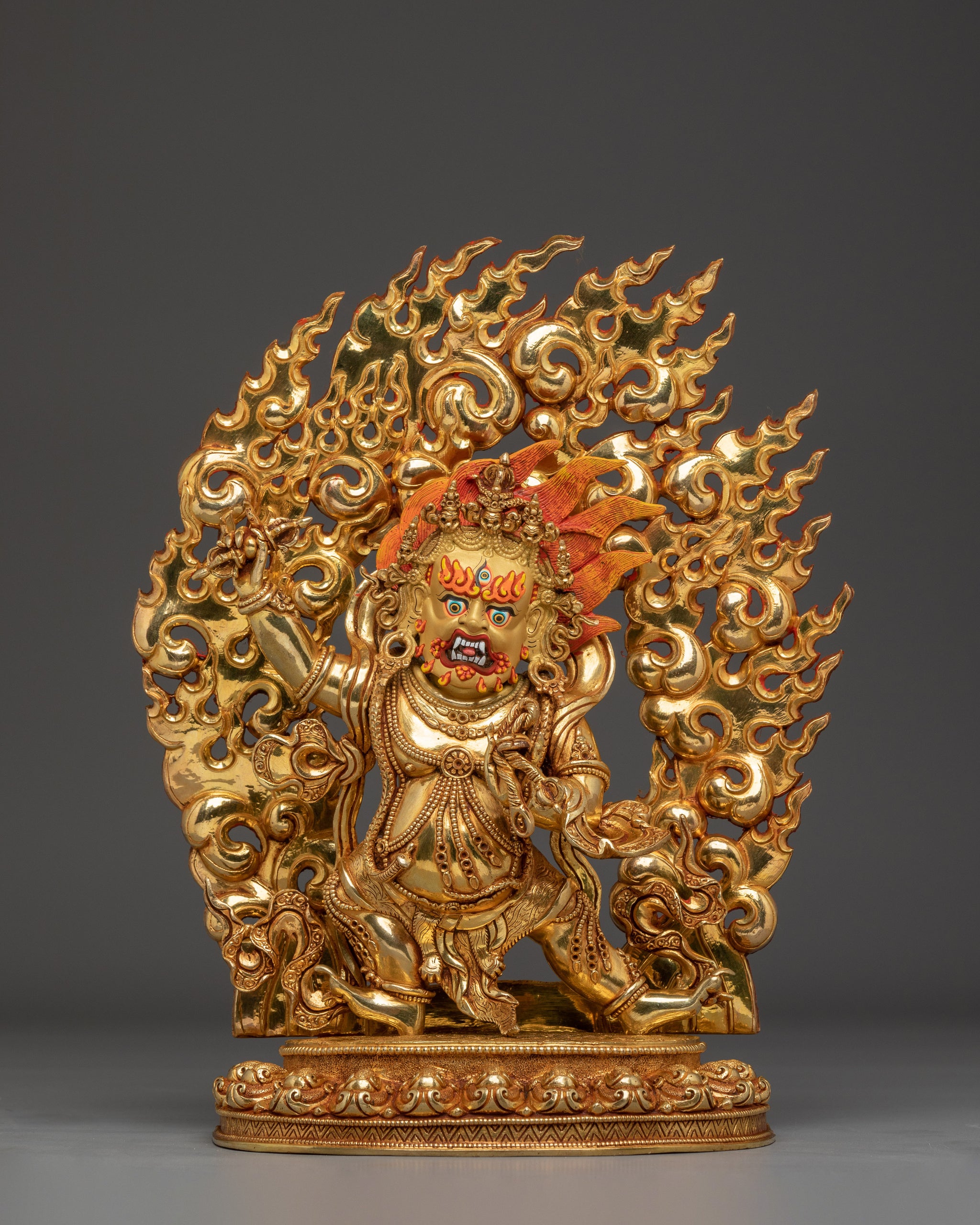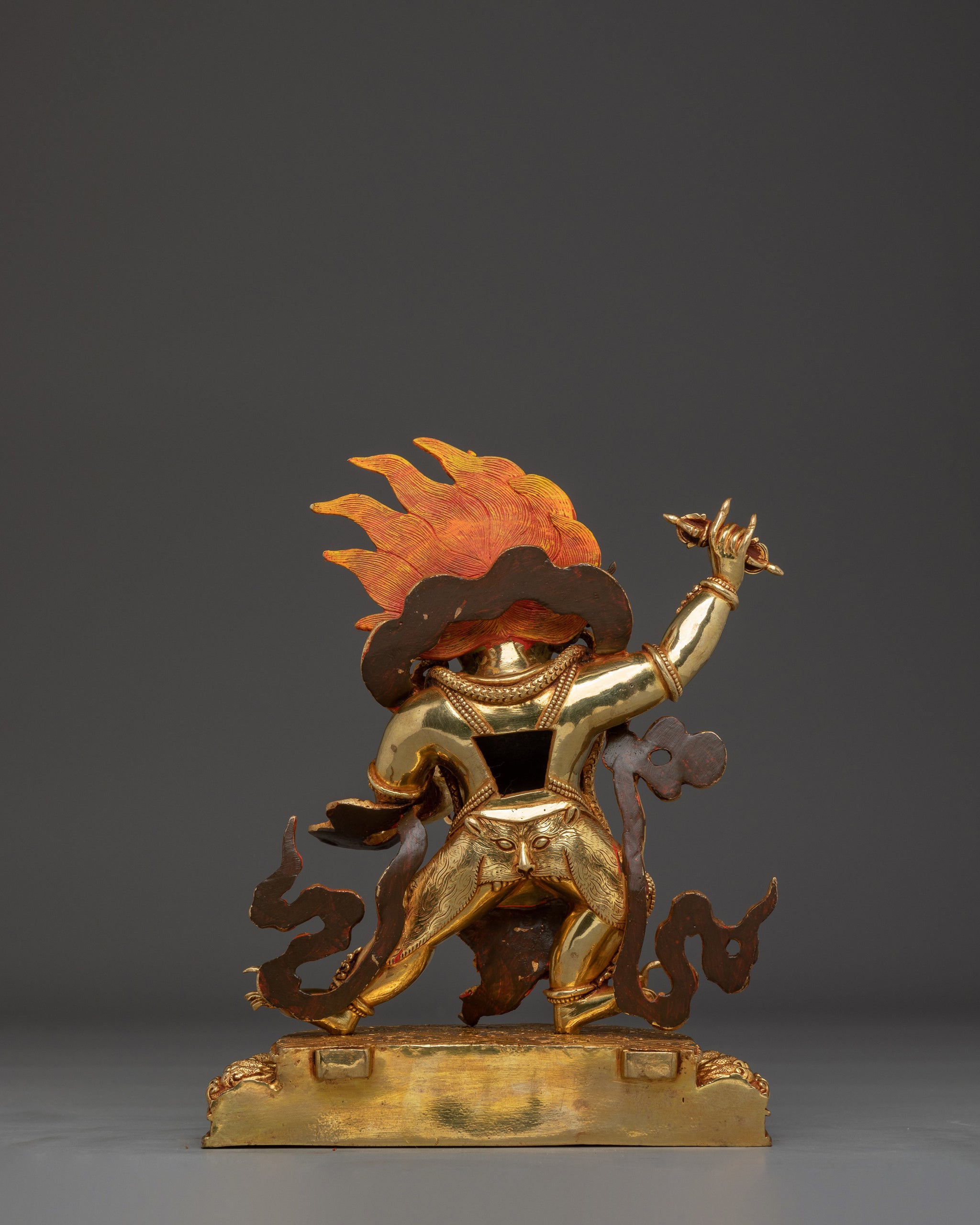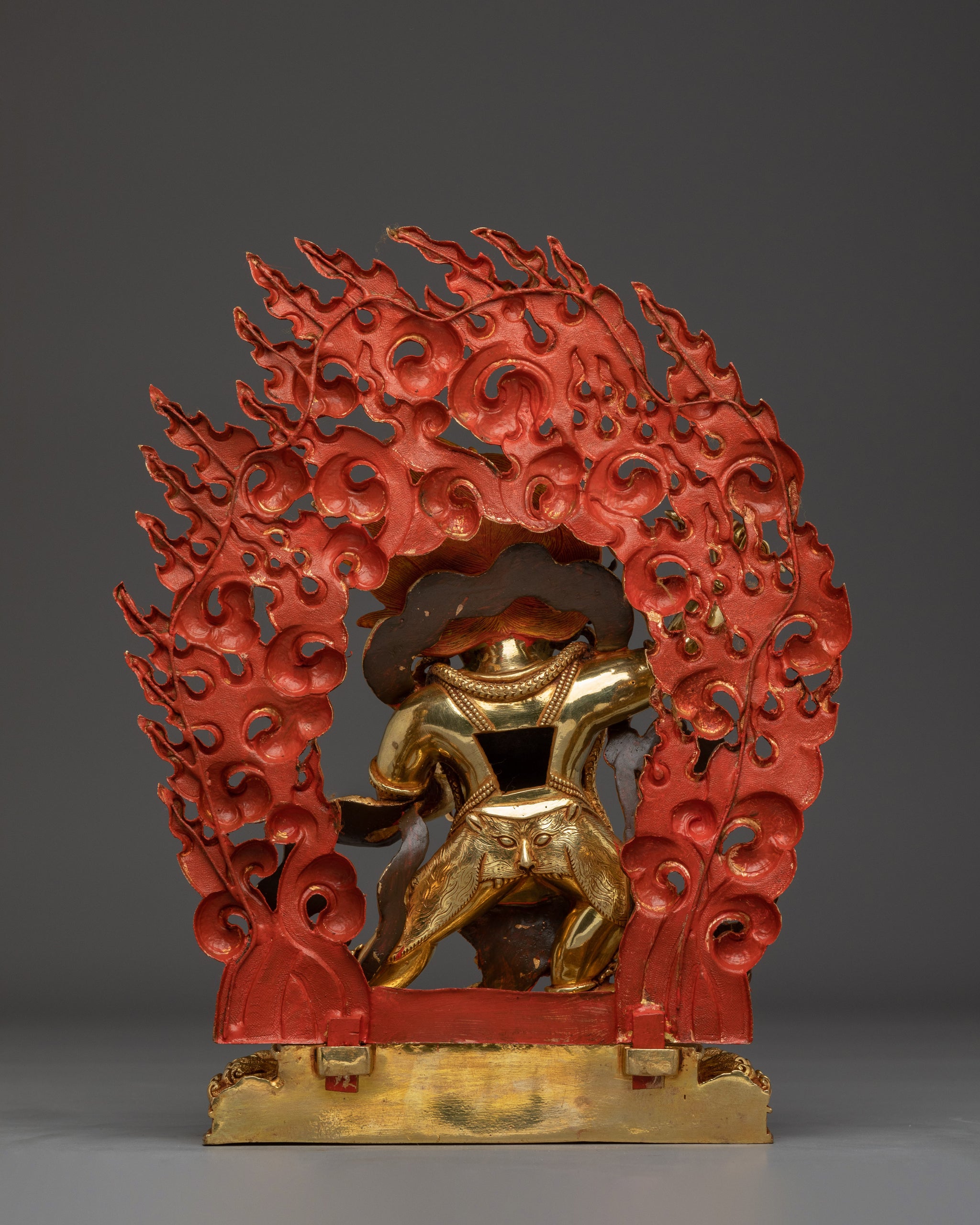 Vajrayogini is stunning. The details are amazing. It's easy to make out her facial expressions, skulls, feet, and the ring of fire around her. You can tell she's handmade. There is a consecration hole in her back.
