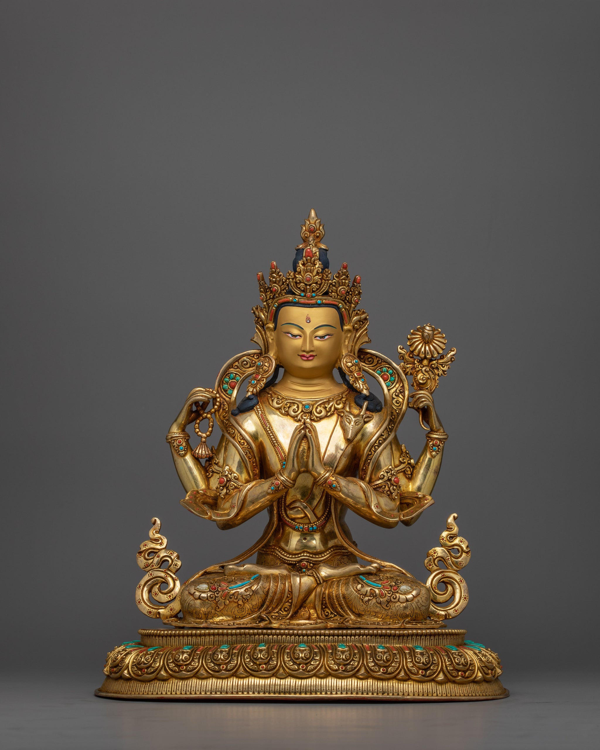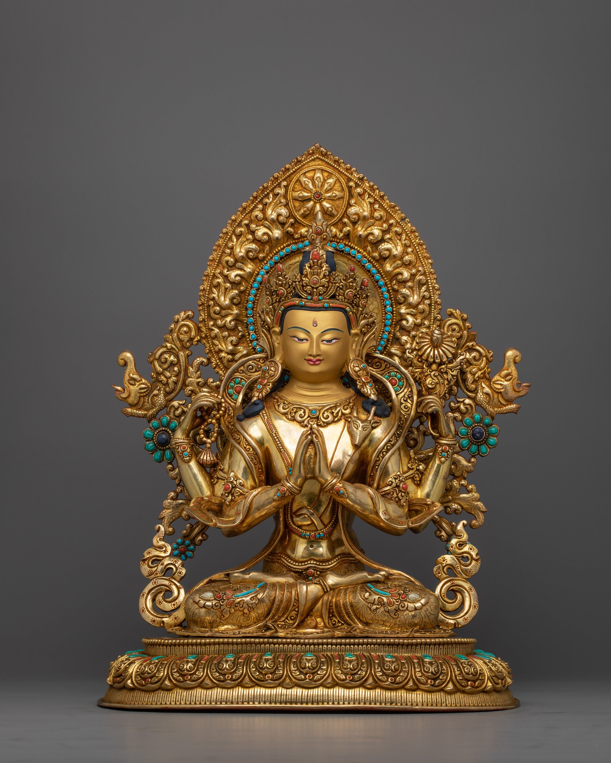 Exquisite Chenrezig Gold Statue | The embodiment of Compassion