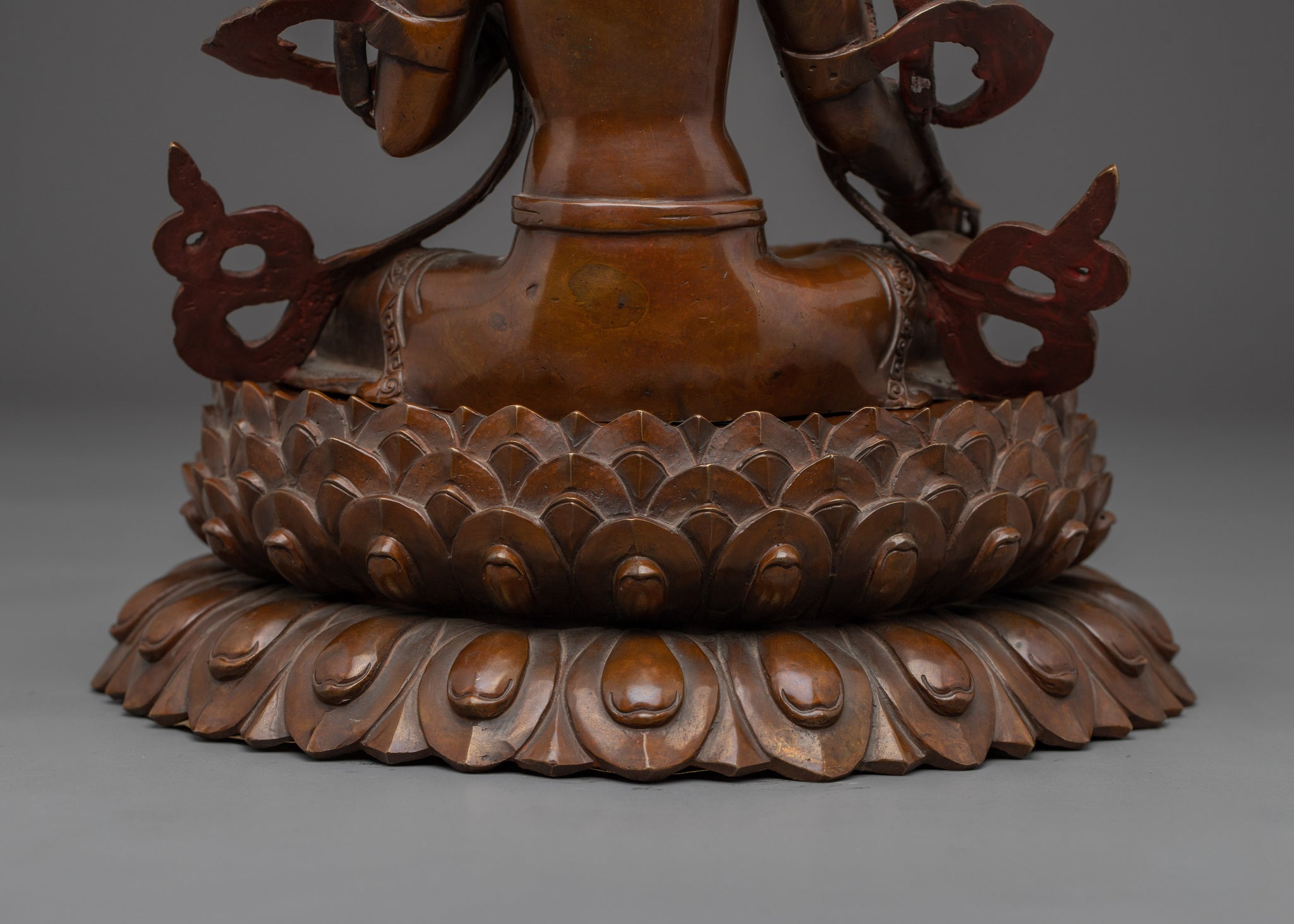 This Female Enlightenment Deity Green Tara Art represents protection, healing, and spiritual enlightenment. This handcrafted statue, which measures 13.4" (Height) x 10.2" (Base) and weighs 4.17 kg, is made of oxidized copper and has a durable and spiritual appeal. Crafted by expert artisans, this item symbolizes the rich traditions of Himalayan Buddhism, making it an important addition to altars, meditation places, or holy collections.