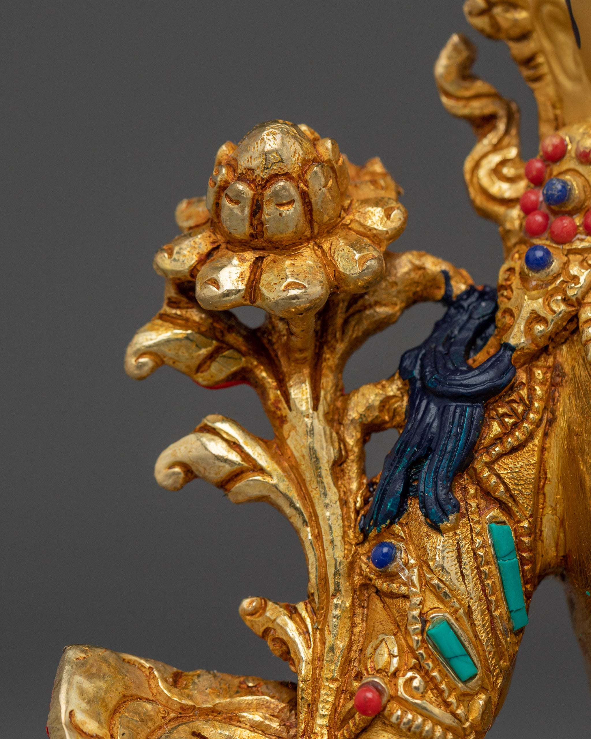 Vajrayogini is stunning. The details are amazing. It's easy to make out her facial expressions, skulls, feet, and the ring of fire around her. You can tell she's handmade. There is a consecration hole in her back.