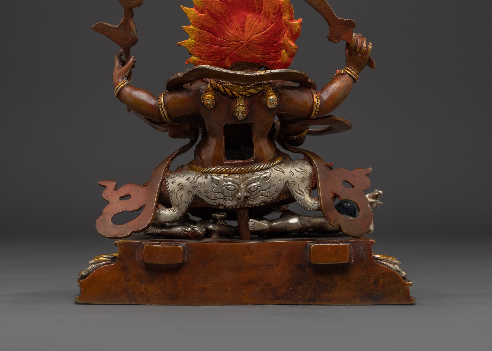 Fierce Mahakala Sculpture with Flame Halo | Tibetan Protector Deity