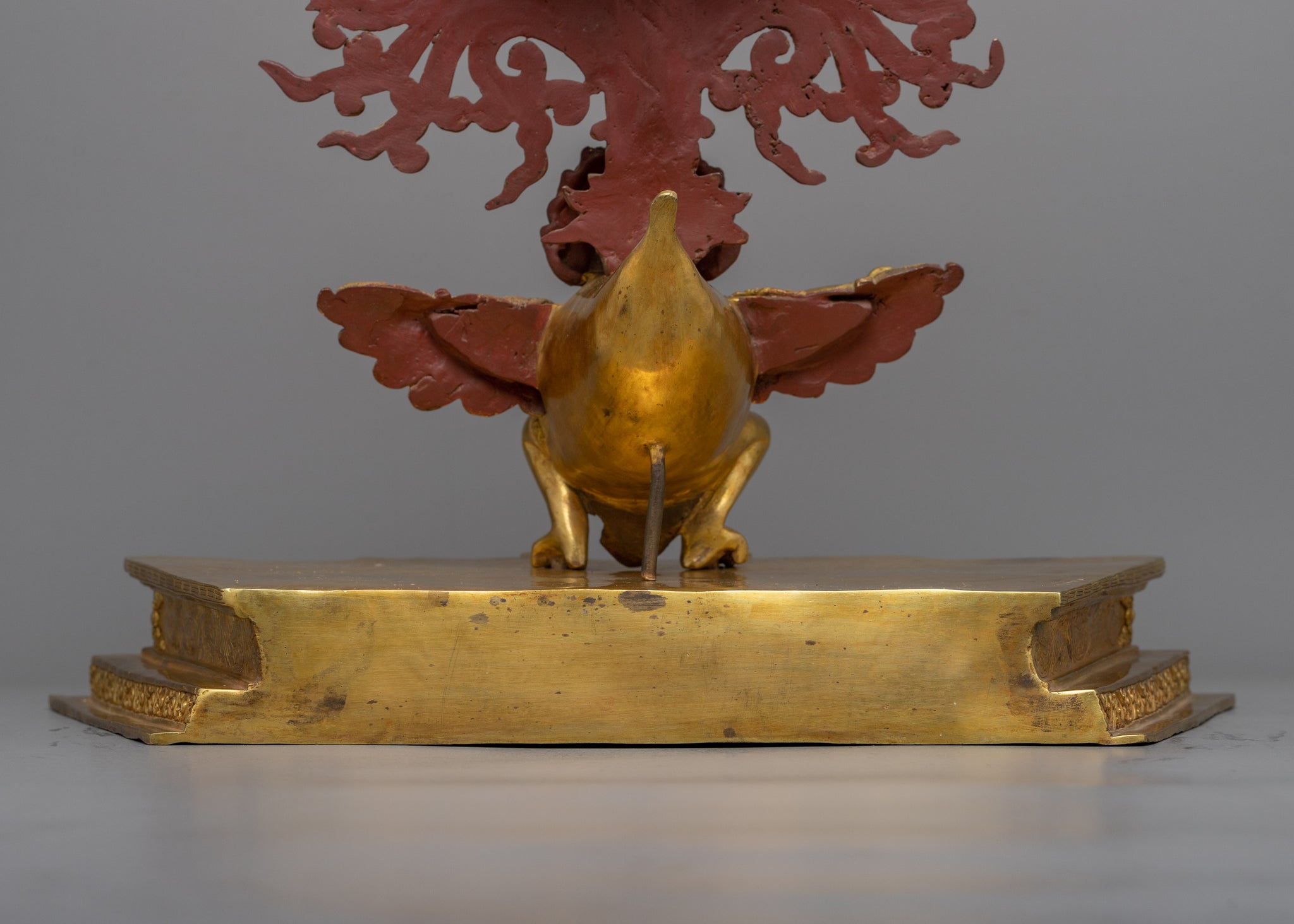 Vajrayogini is stunning. The details are amazing. It's easy to make out her facial expressions, skulls, feet, and the ring of fire around her. You can tell she's handmade. There is a consecration hole in her back.
