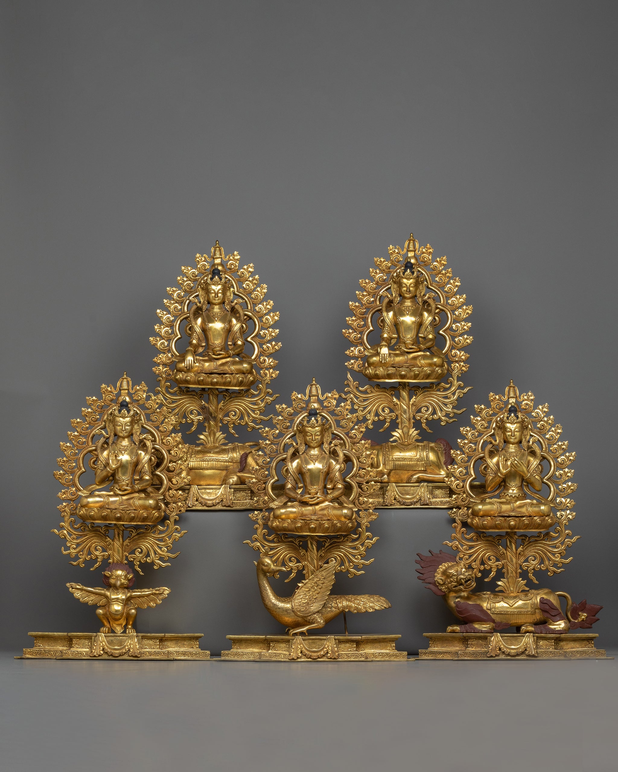 Five Dhyani Buddhas Set | Premium 24K Gold Gilded Assembly of Transcendental Wisdom