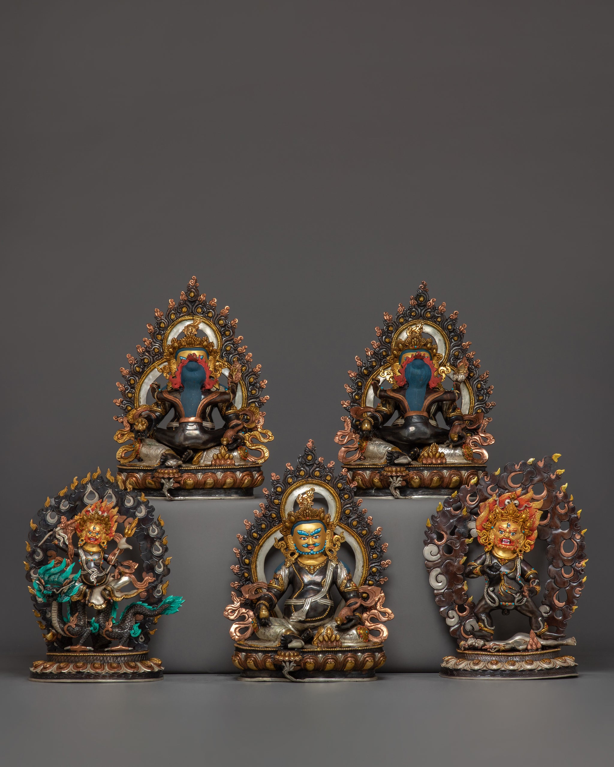 Handmade Five Dzambhala Statue Set | Yellow, White, Red, Black, and Central Dzambhala