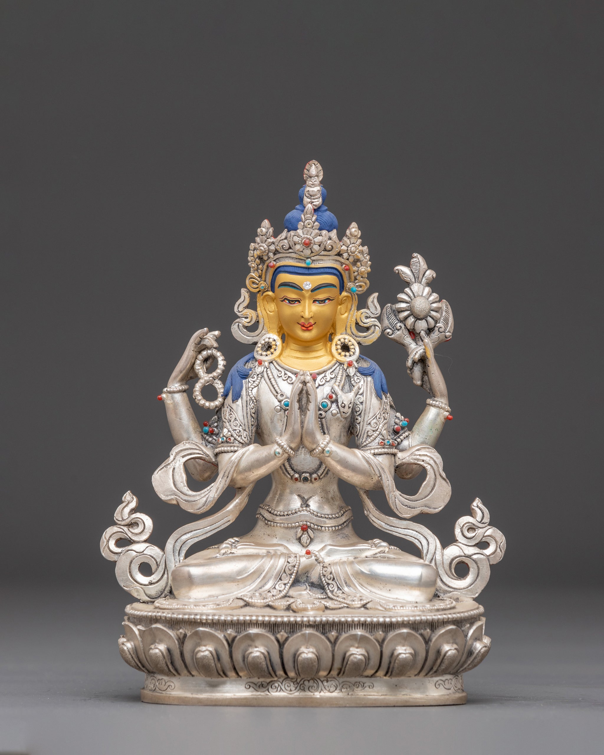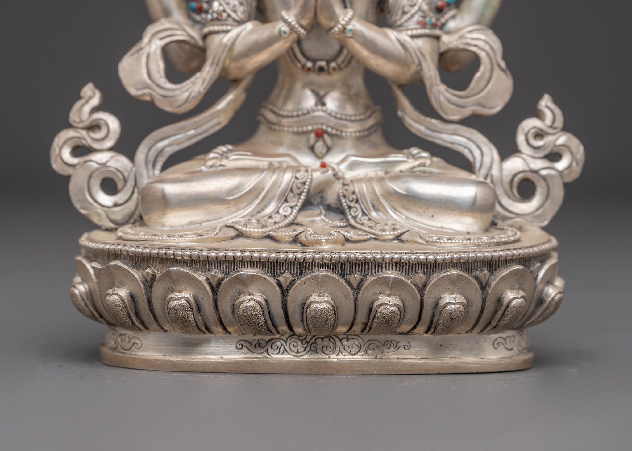 6.3 Inch Four-Armed Chenrezig Silver Statue | Spiritual Decor Icon