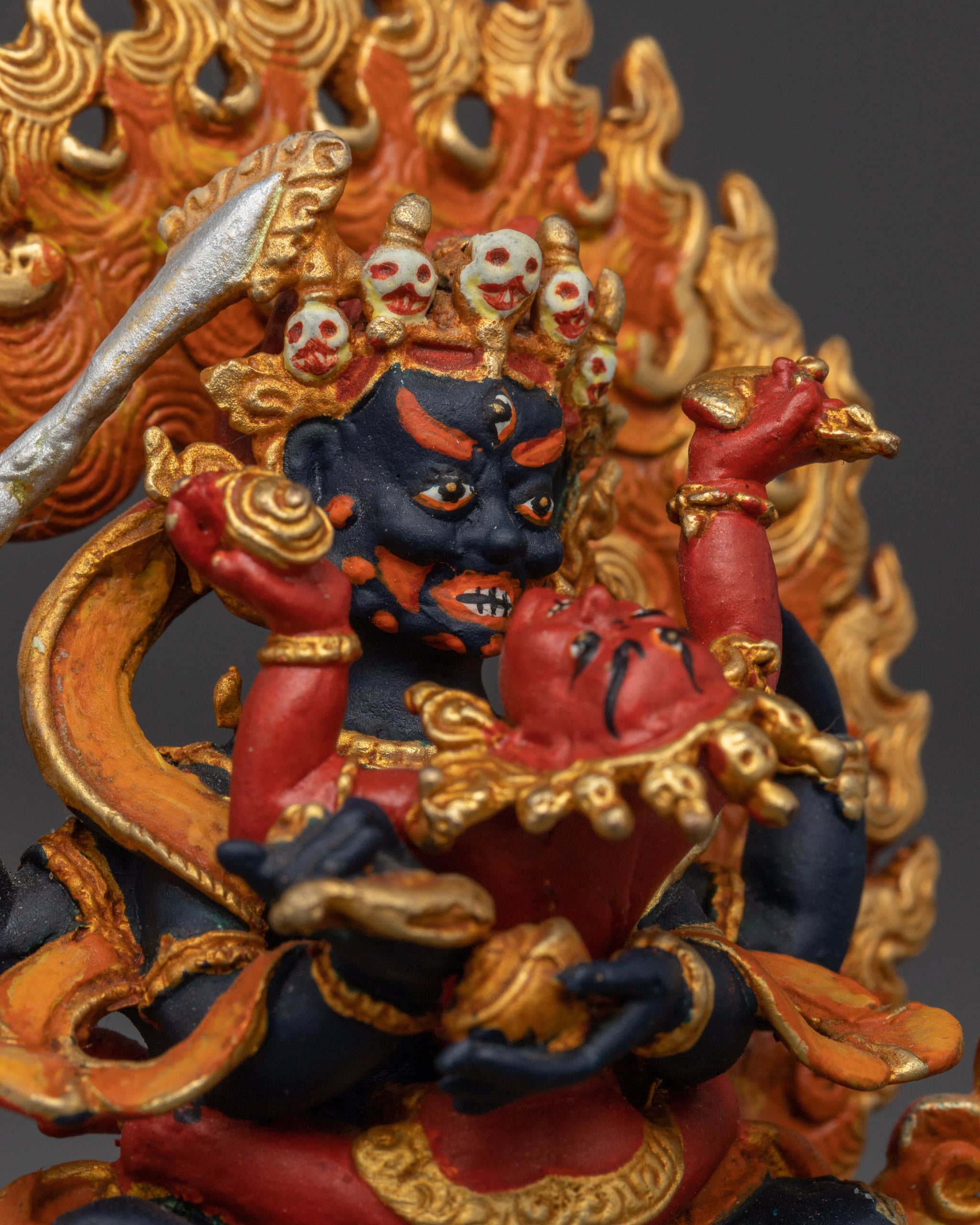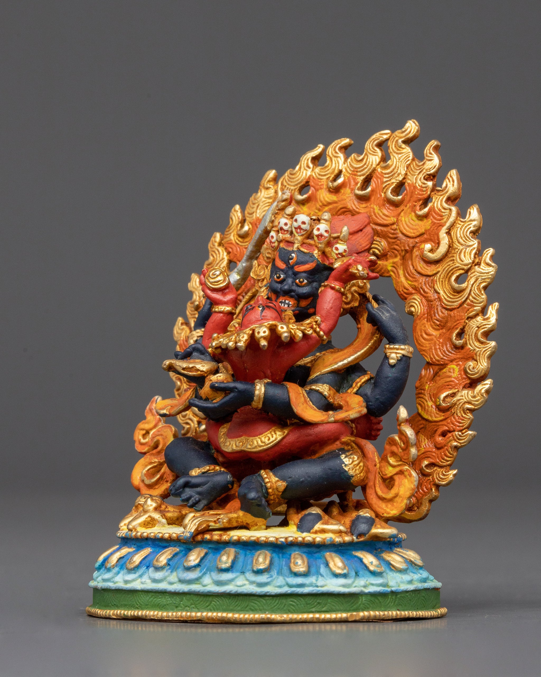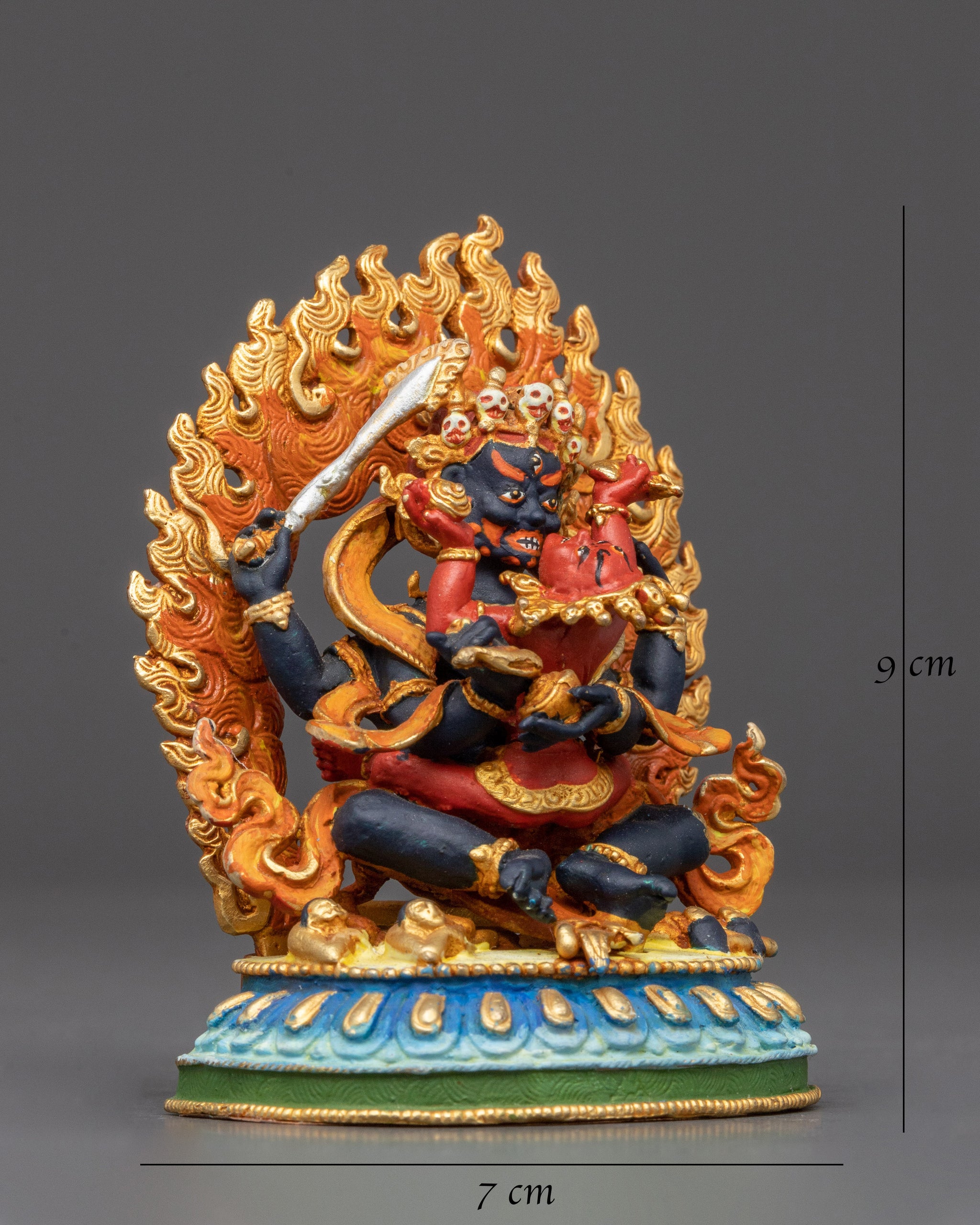 Four-Armed Mahakala with Consort Statue | 3.5 Inches Gold Electroplated Copper Figure