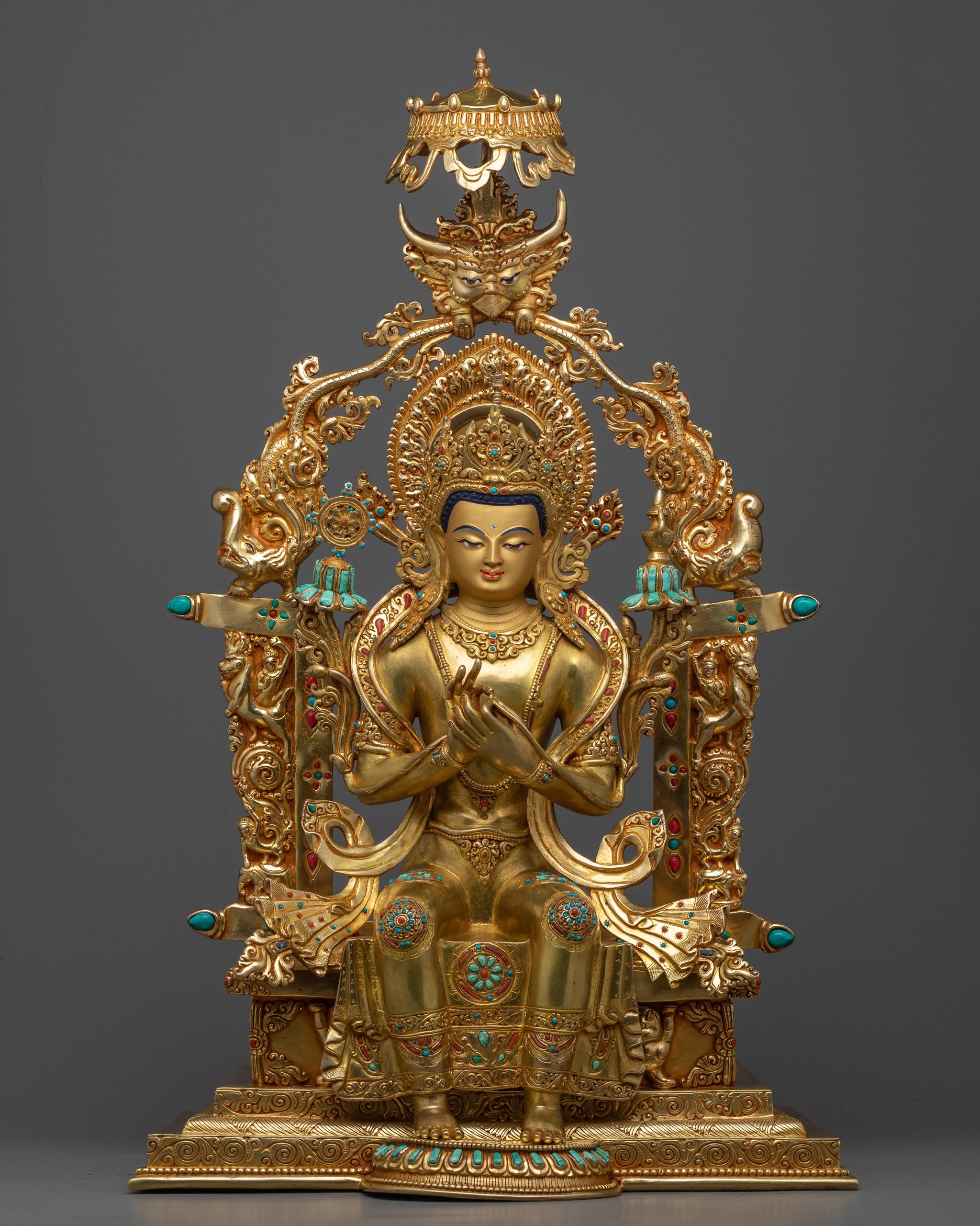 Our Handcrafted Future Buddha Statue, Seated Upon Beautiful Throne