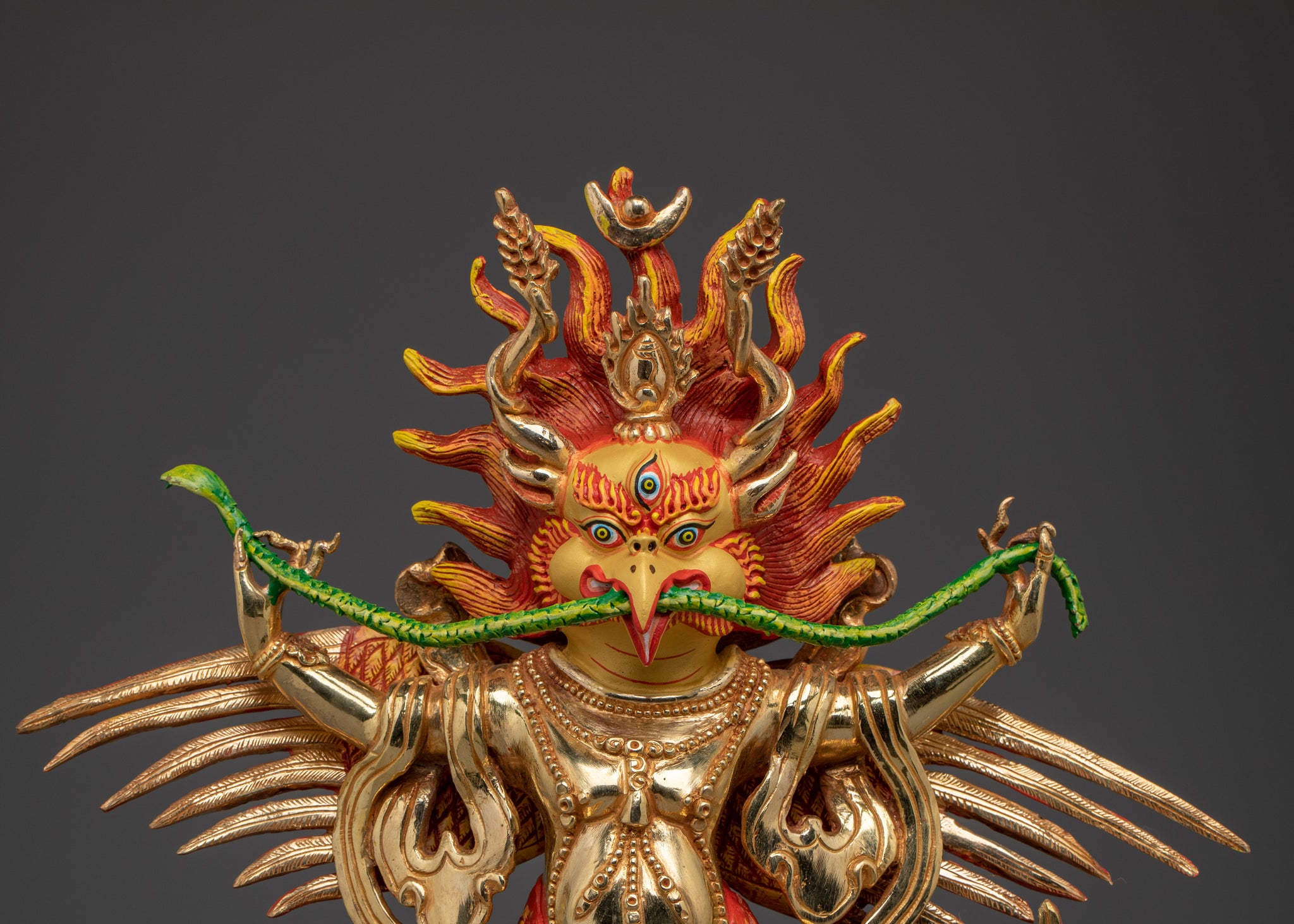 Garuda statue with flaming aureole | Spiritual Buddhist Art for Protection and Power