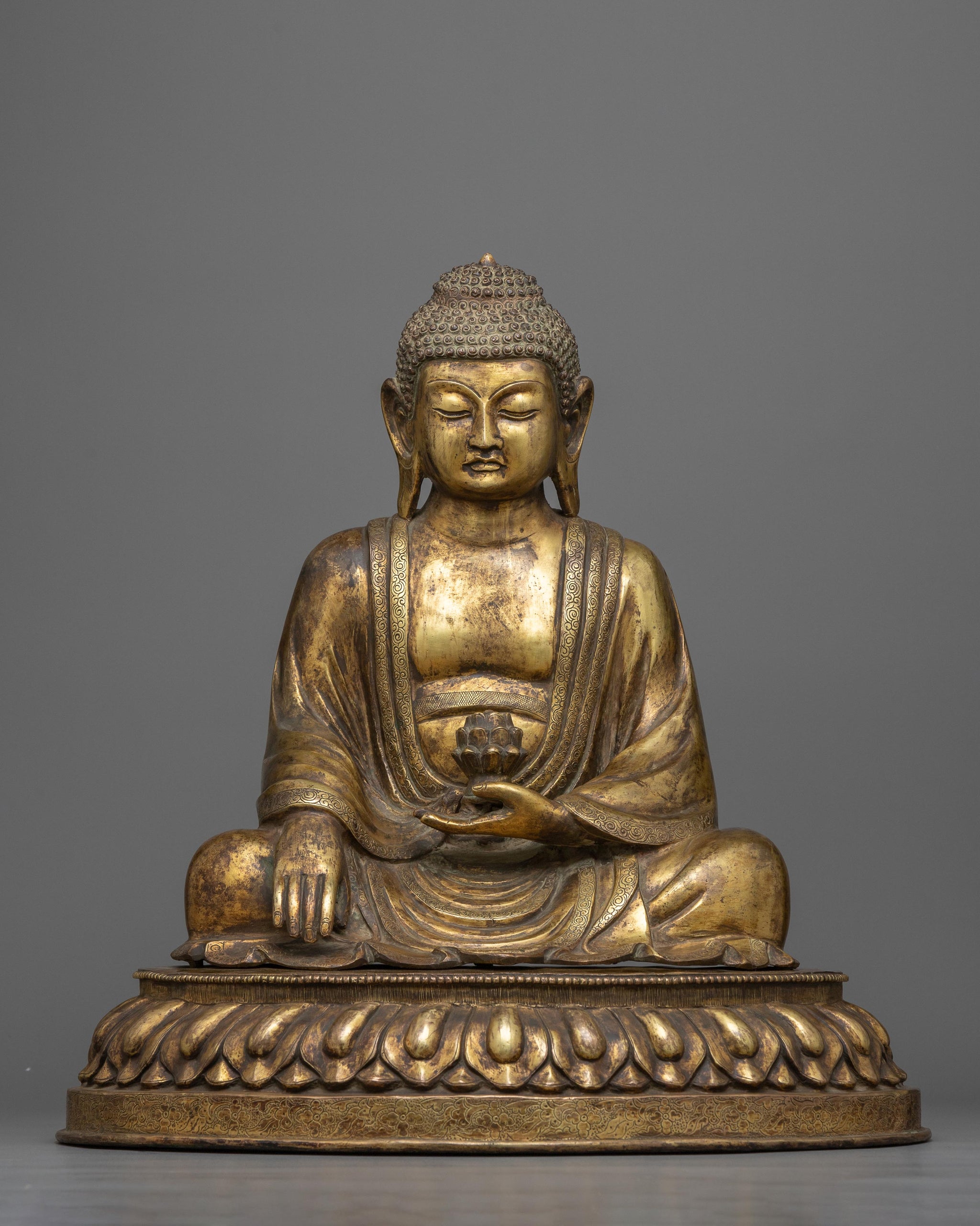 Very beautiful and perfect statue of the Dhyani-Buddha Amogasiddhi representing the wisdom of fulfillment, accomplishment and spiritual success.