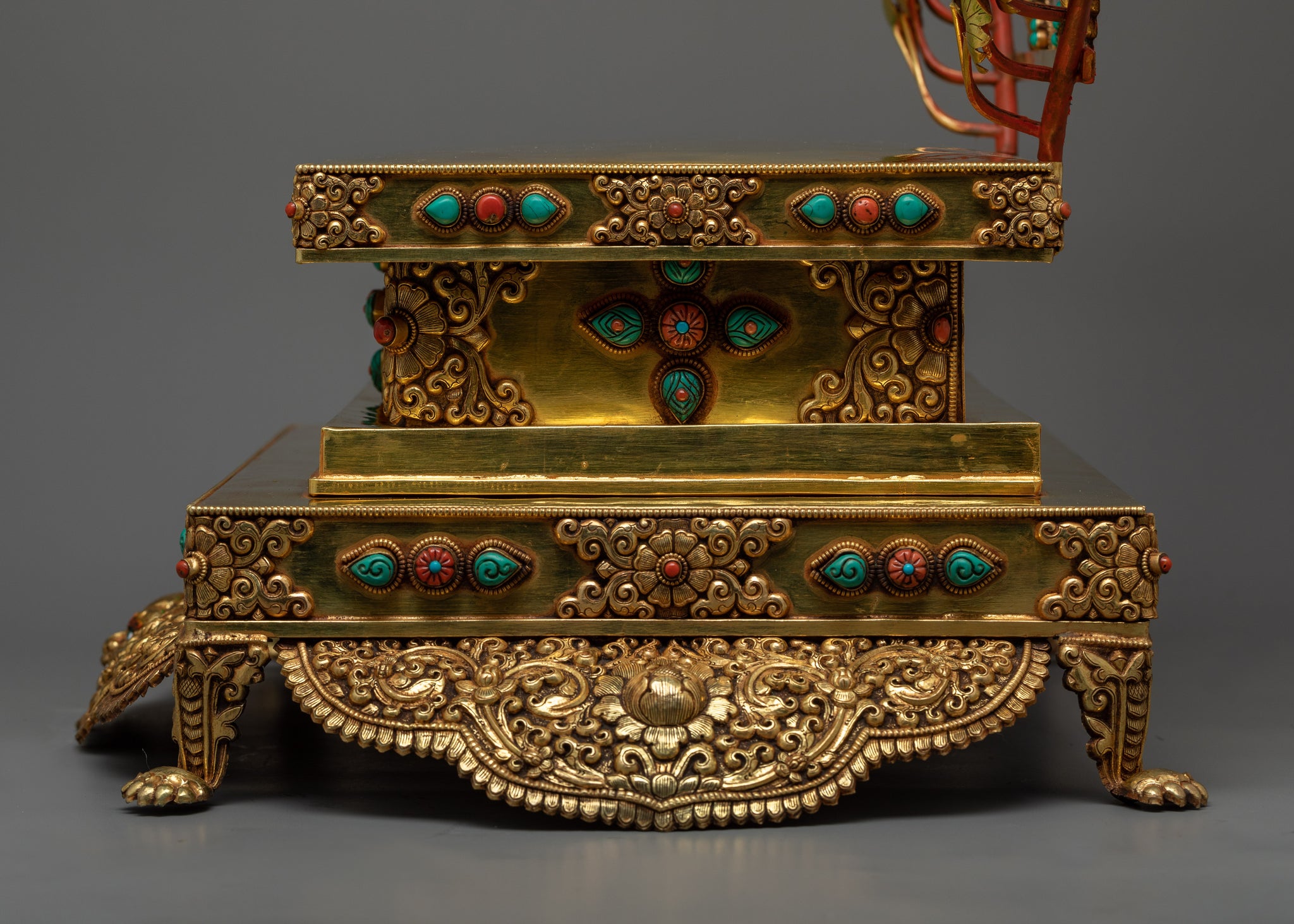 Vajrayogini is stunning. The details are amazing. It's easy to make out her facial expressions, skulls, feet, and the ring of fire around her. You can tell she's handmade. There is a consecration hole in her back.