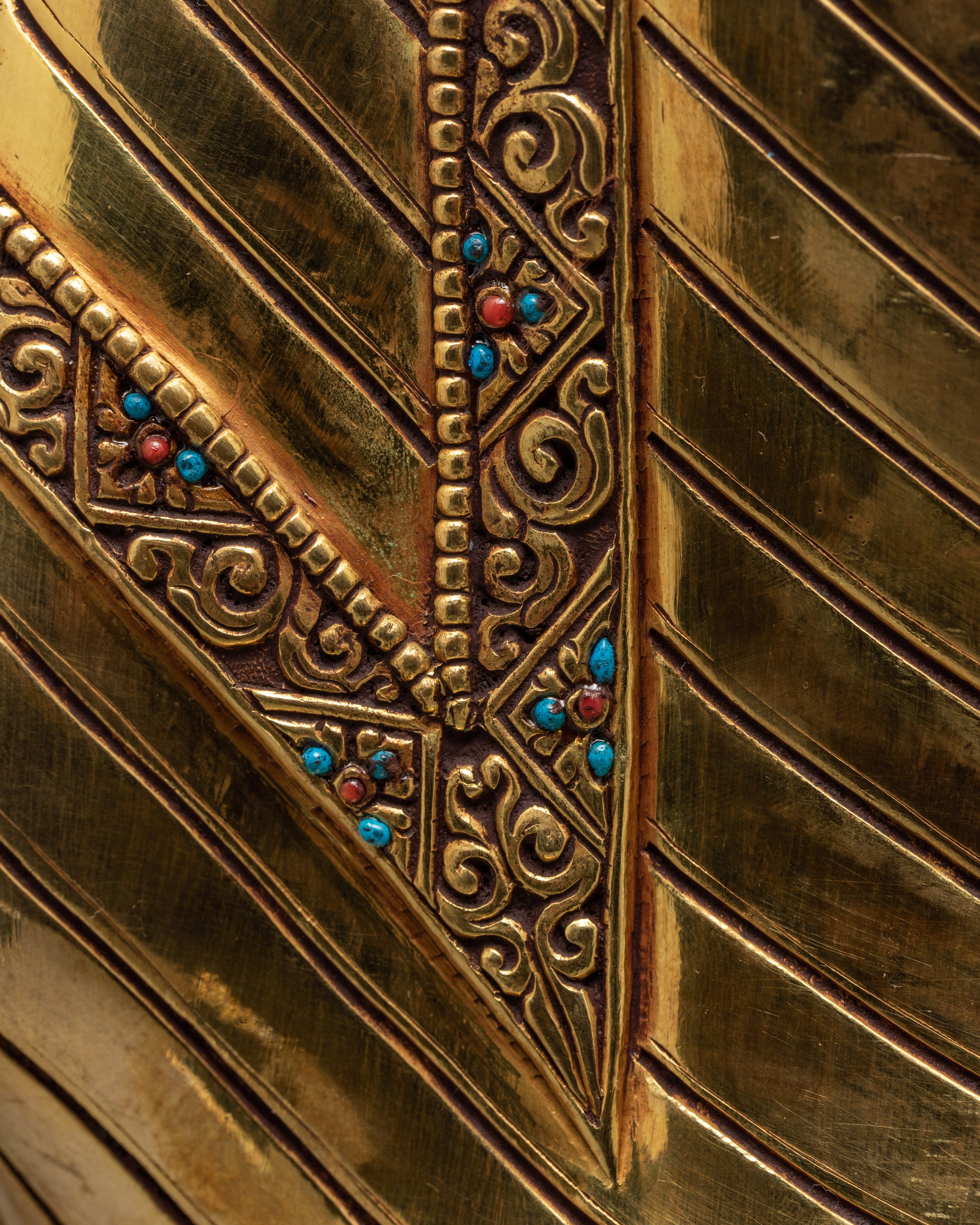 This is the statue of Gautama Shakyamuni depicted atop a moon disc lotus seat with a calm and peaceful expression. His right hand is in earth touch mudra while his left hand is carrying a begging bowl which seems to be handcrafted exquisitely by the artist. This statue is made in Kathmandu by a Nepali artist which will be the best statue for your meditation shrine.