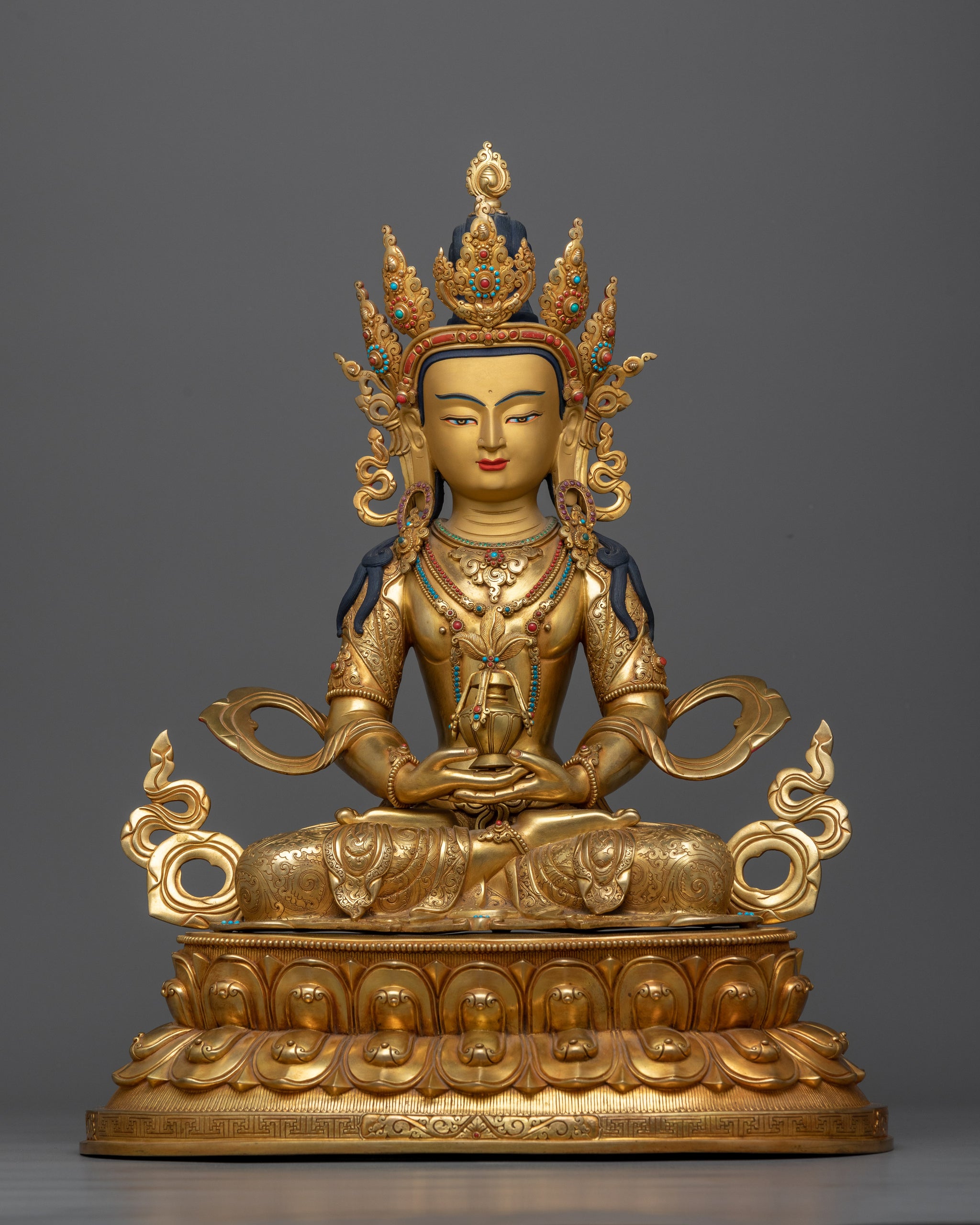 Gold-Gilded Amitayus Longevity Buddha Statue | A Beacon of Eternal Life