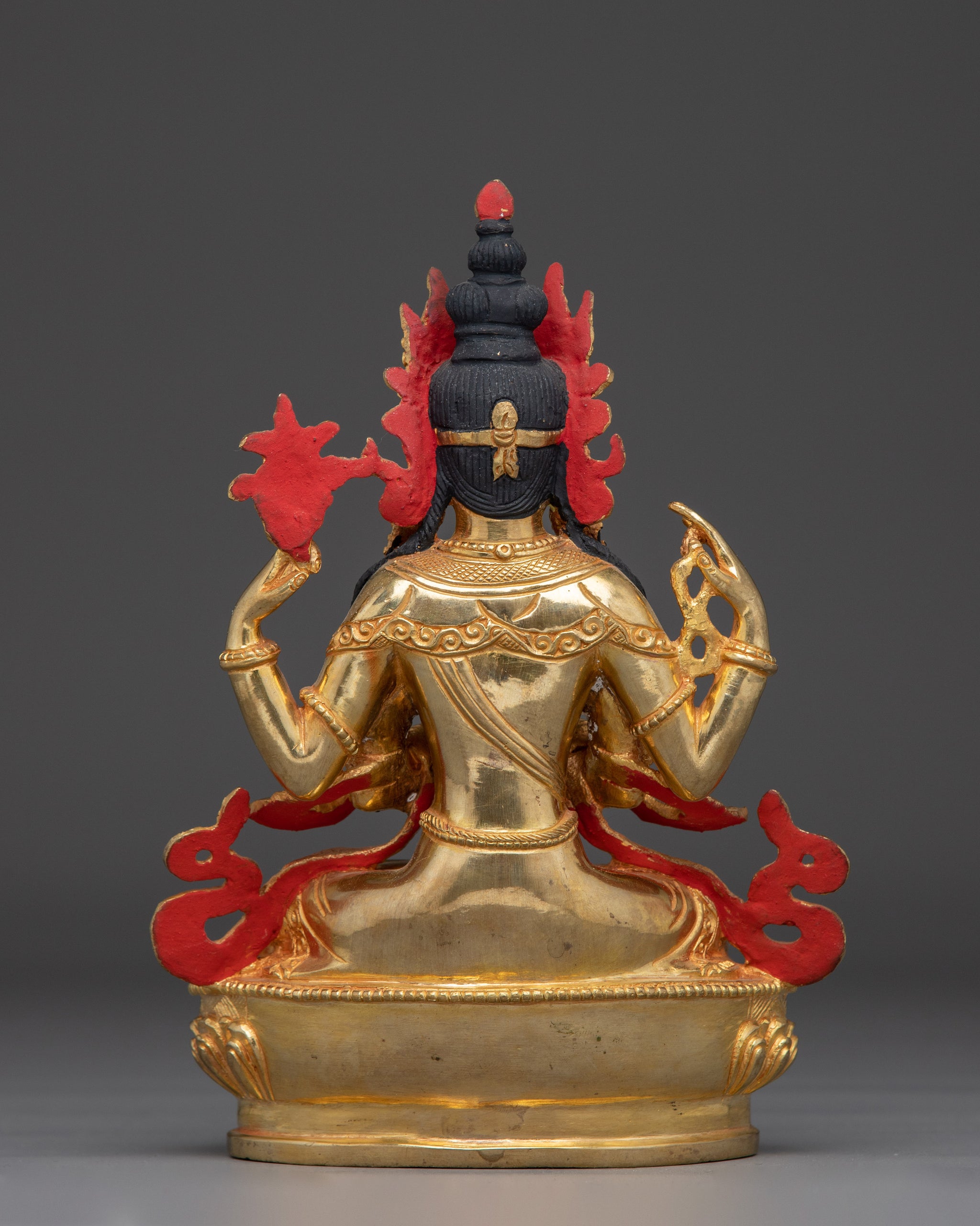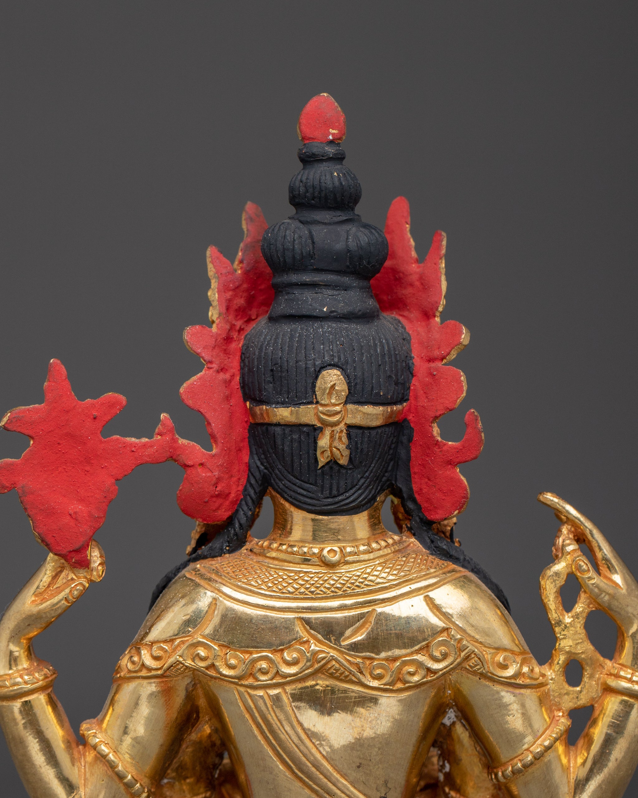 Handmade Gold Gilded Chenrezig Art | Tibetan Bodhisattva of Compassion