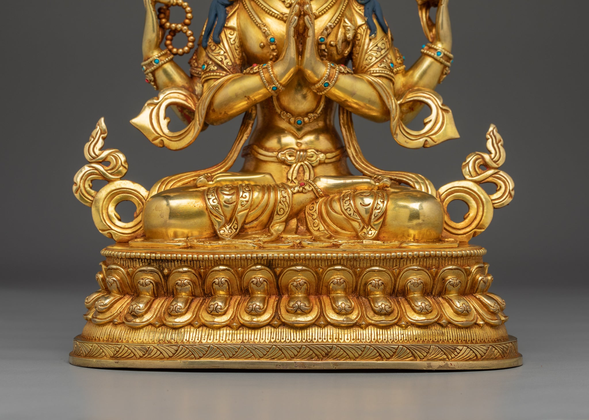 Gold Gilded Copper Avalokiteshvara Sculpture | Sacred Symbol of Compassion