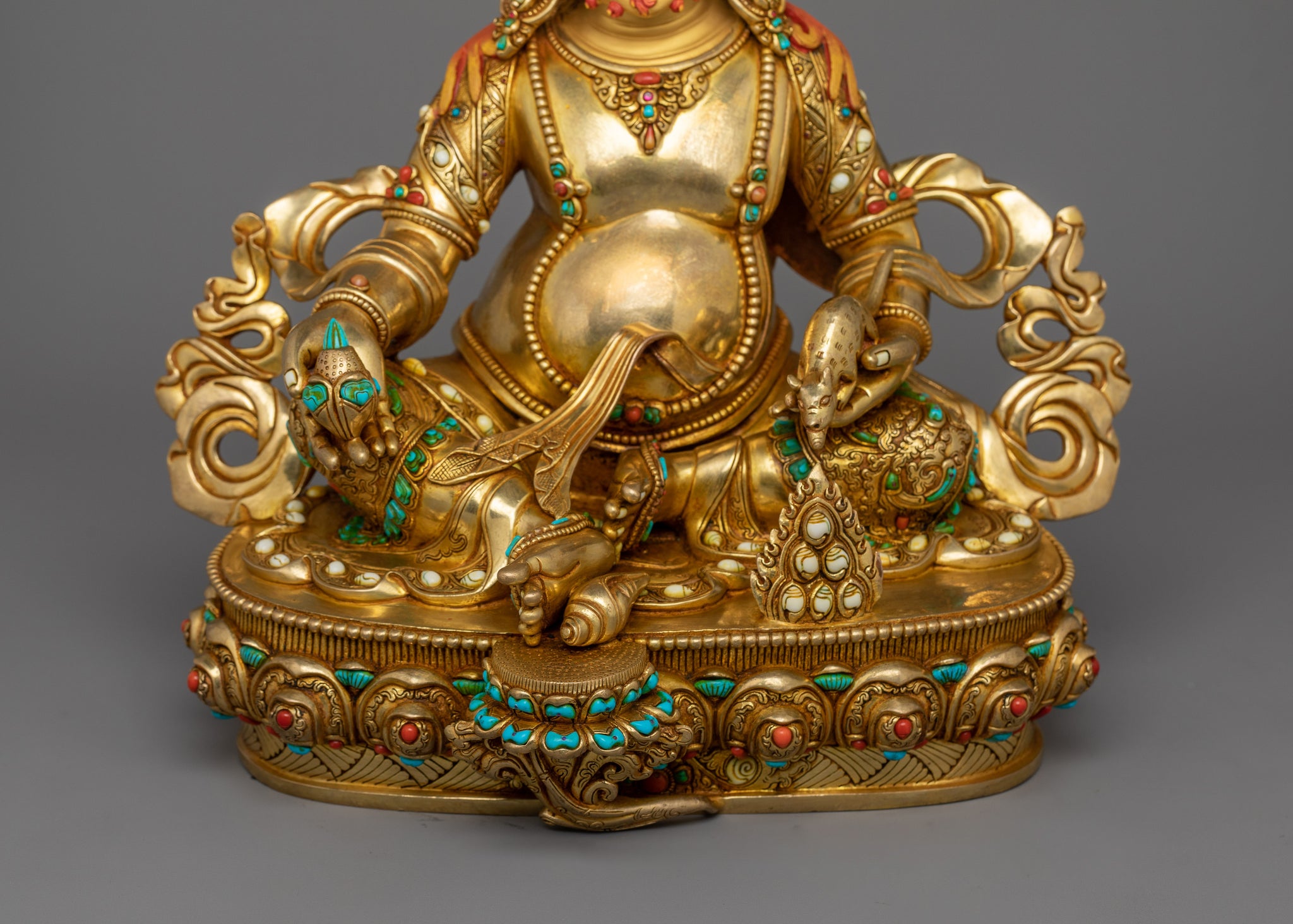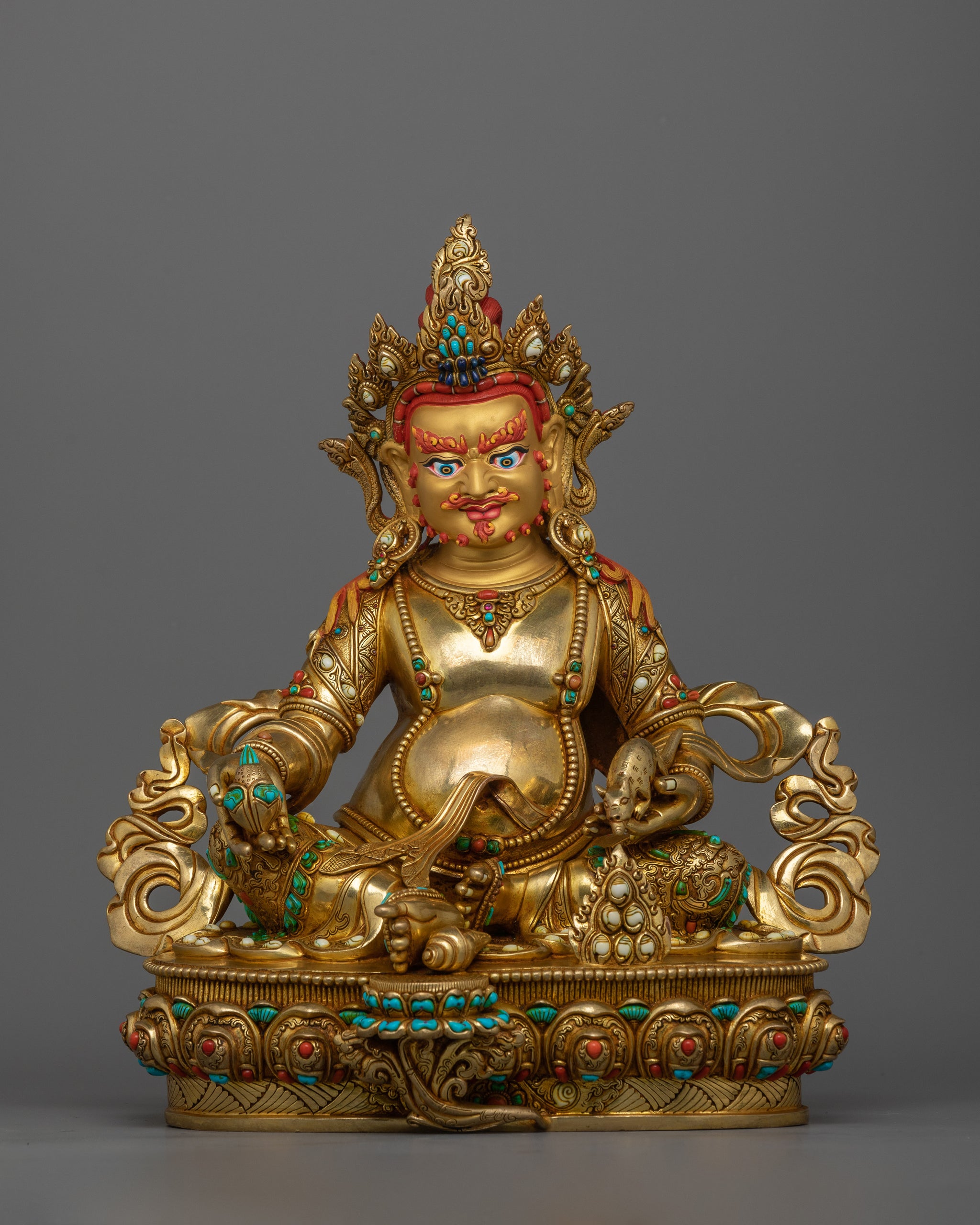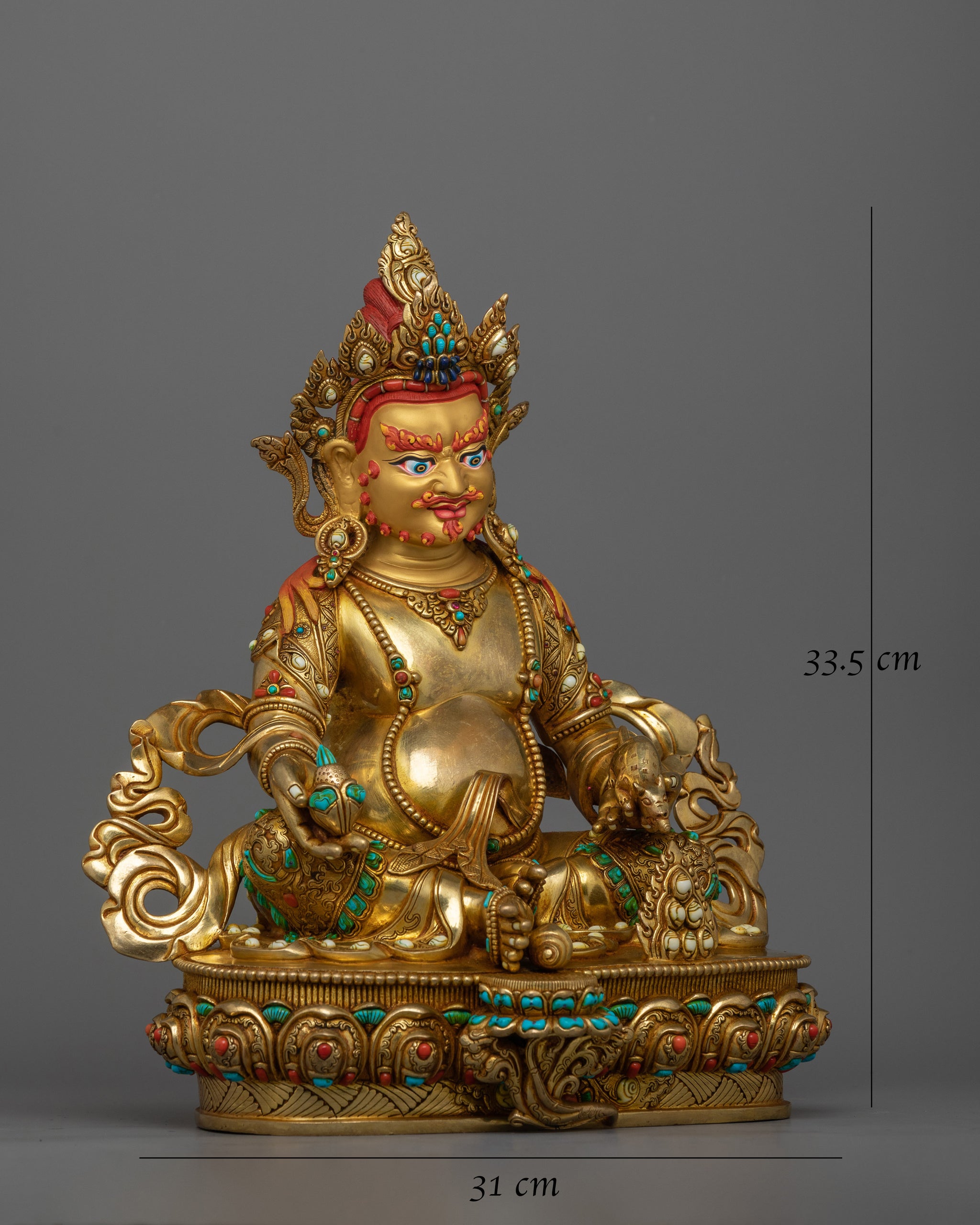 Gold-Gilded Jambhala Statue | Handcrafted Sculpture with Stone Citron