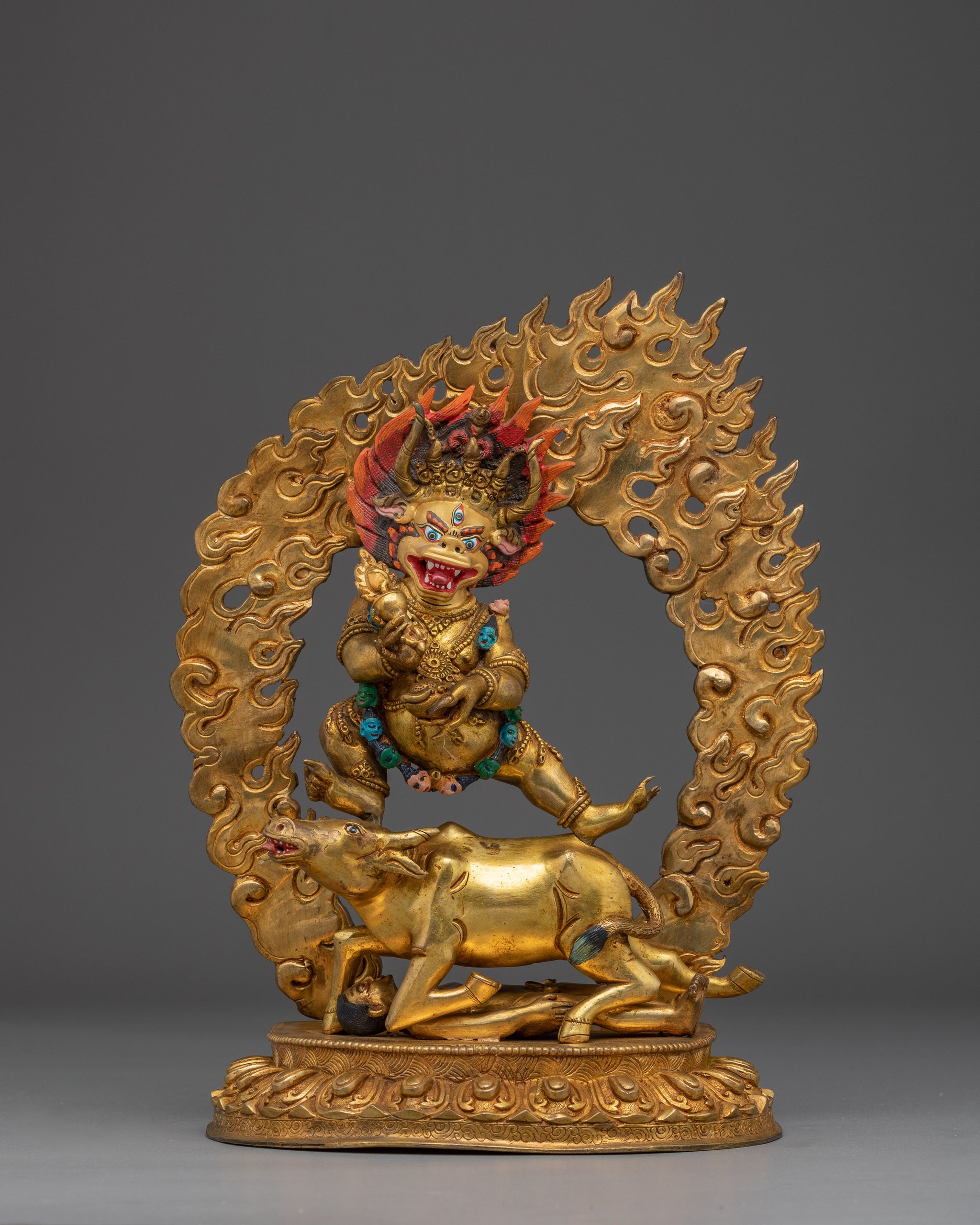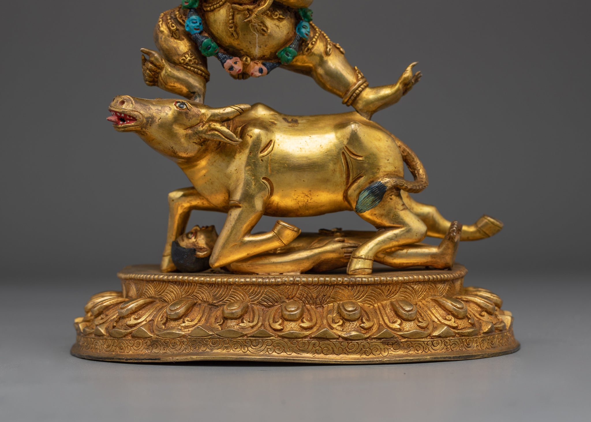 Gold Gilded Yamantaka Statue | Acrylic Paint Detail for Altar & Meditation