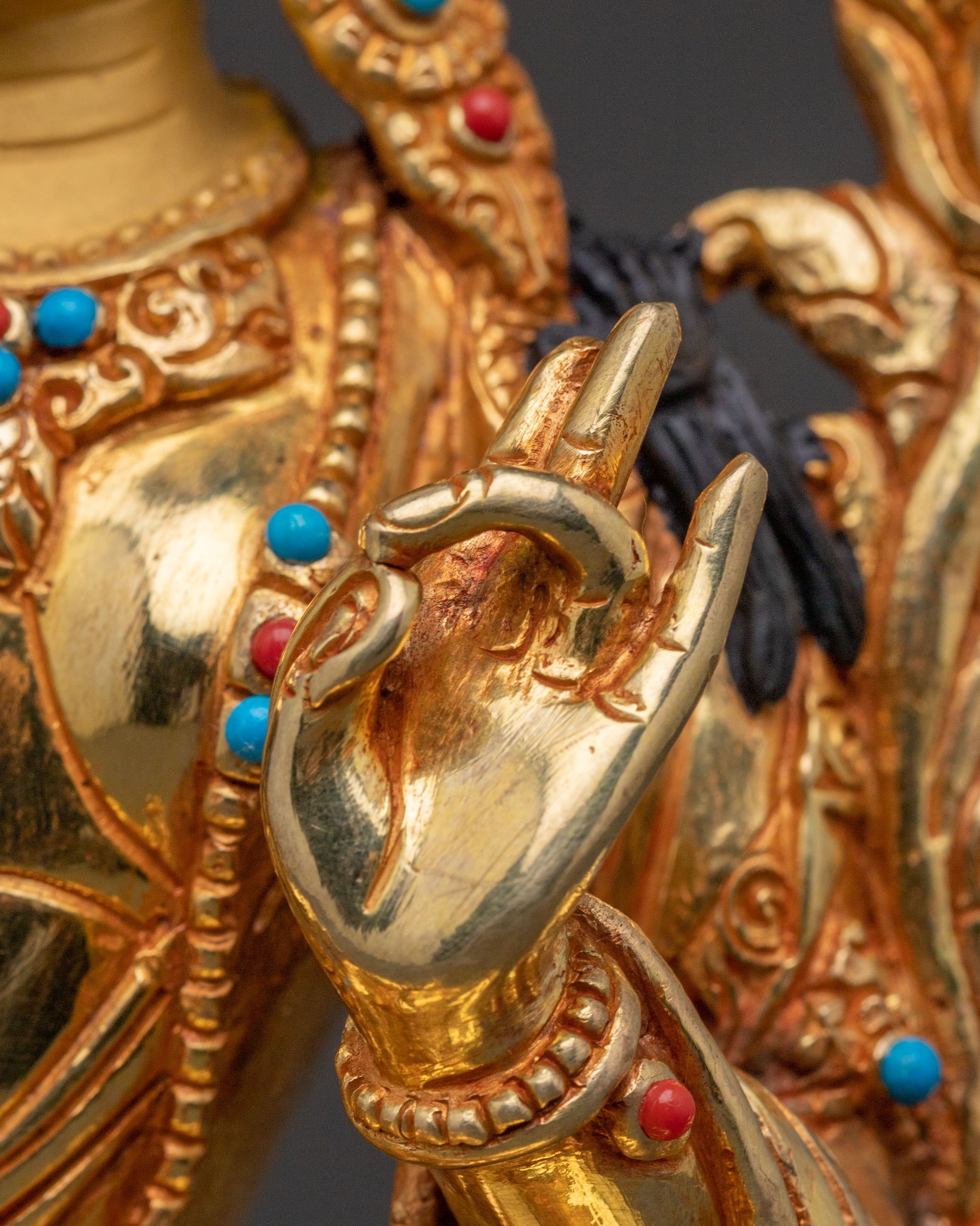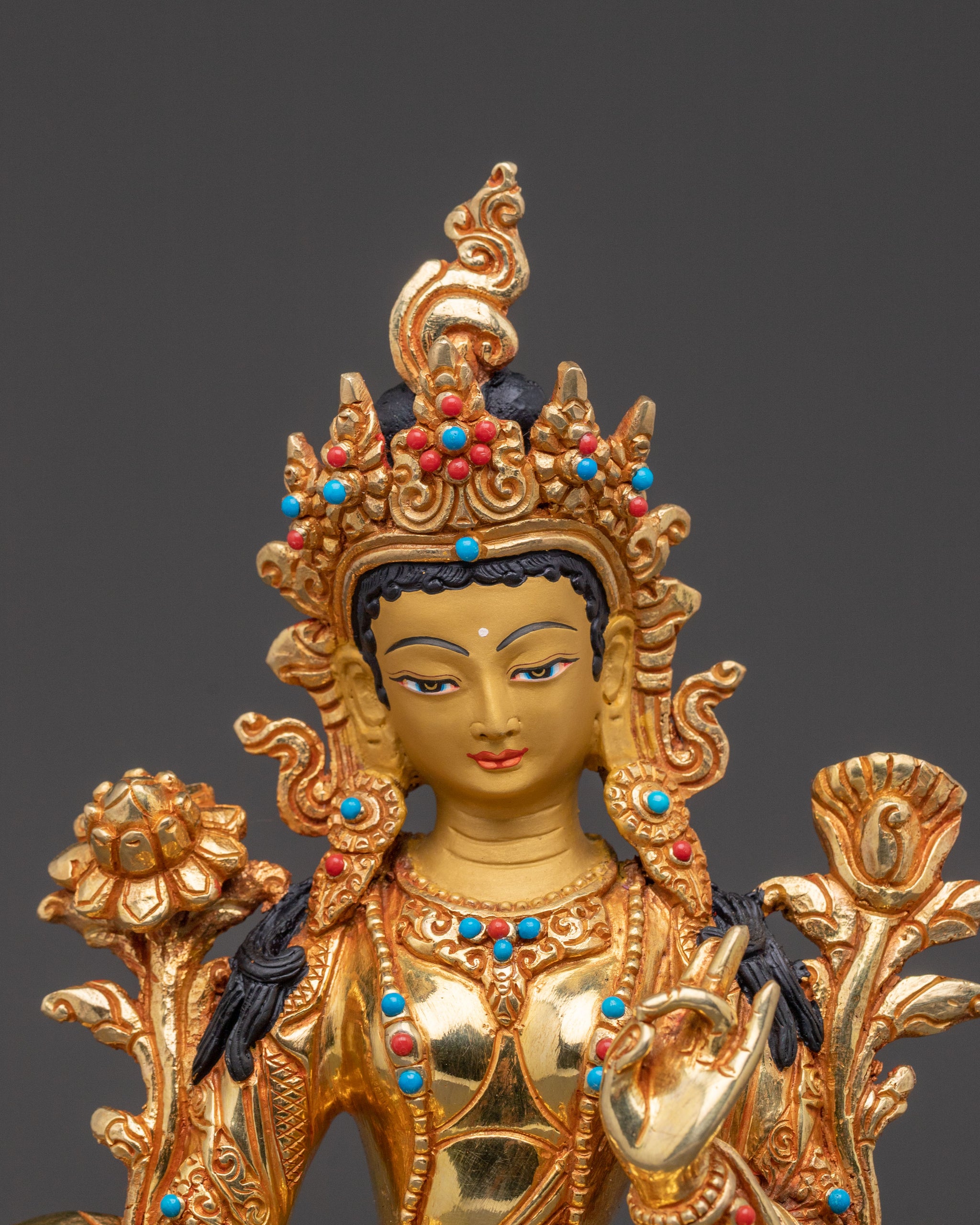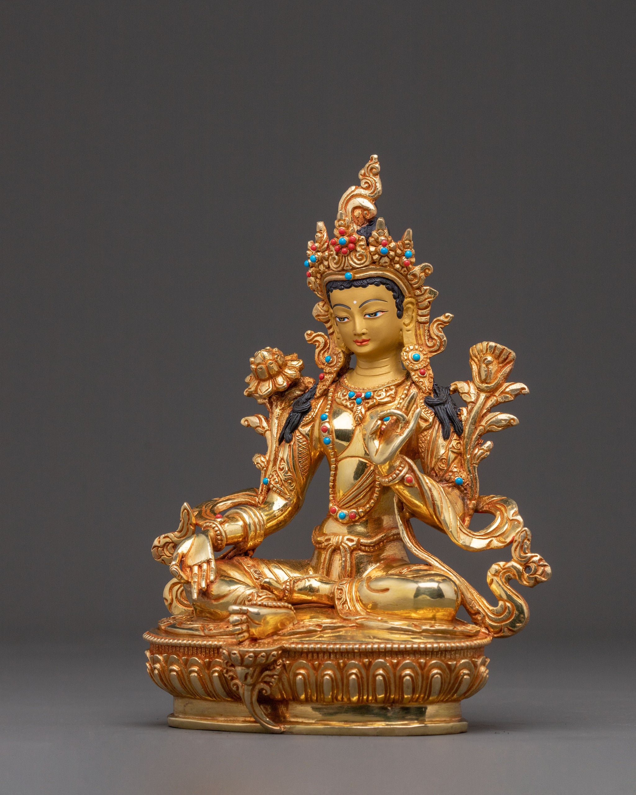 Gold Glided Green Tara Statue - Handcrafted Copper Artwork