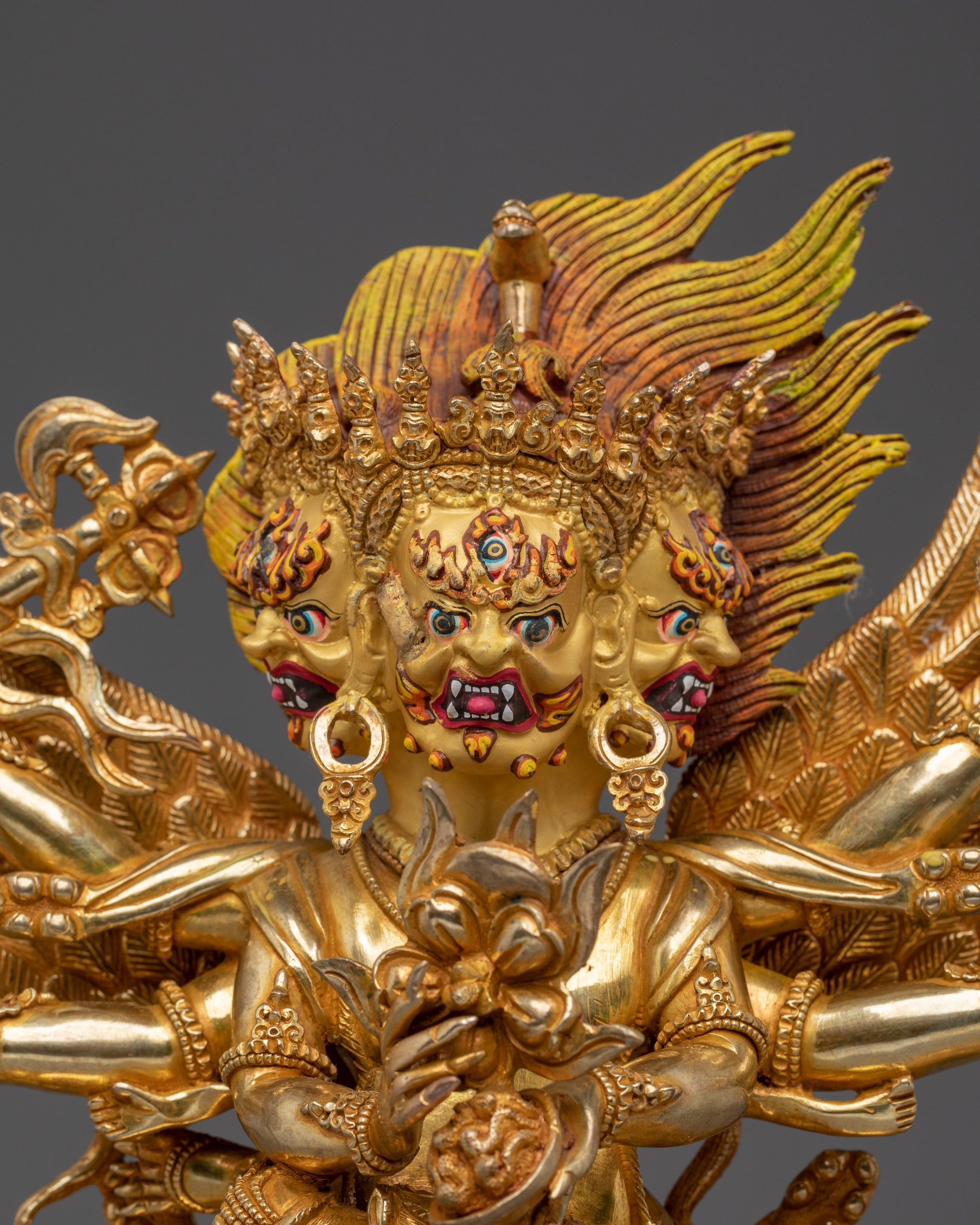 Gold Hayagriva Statue Wrathful Copper Deity | Buddhist Protector for Altar