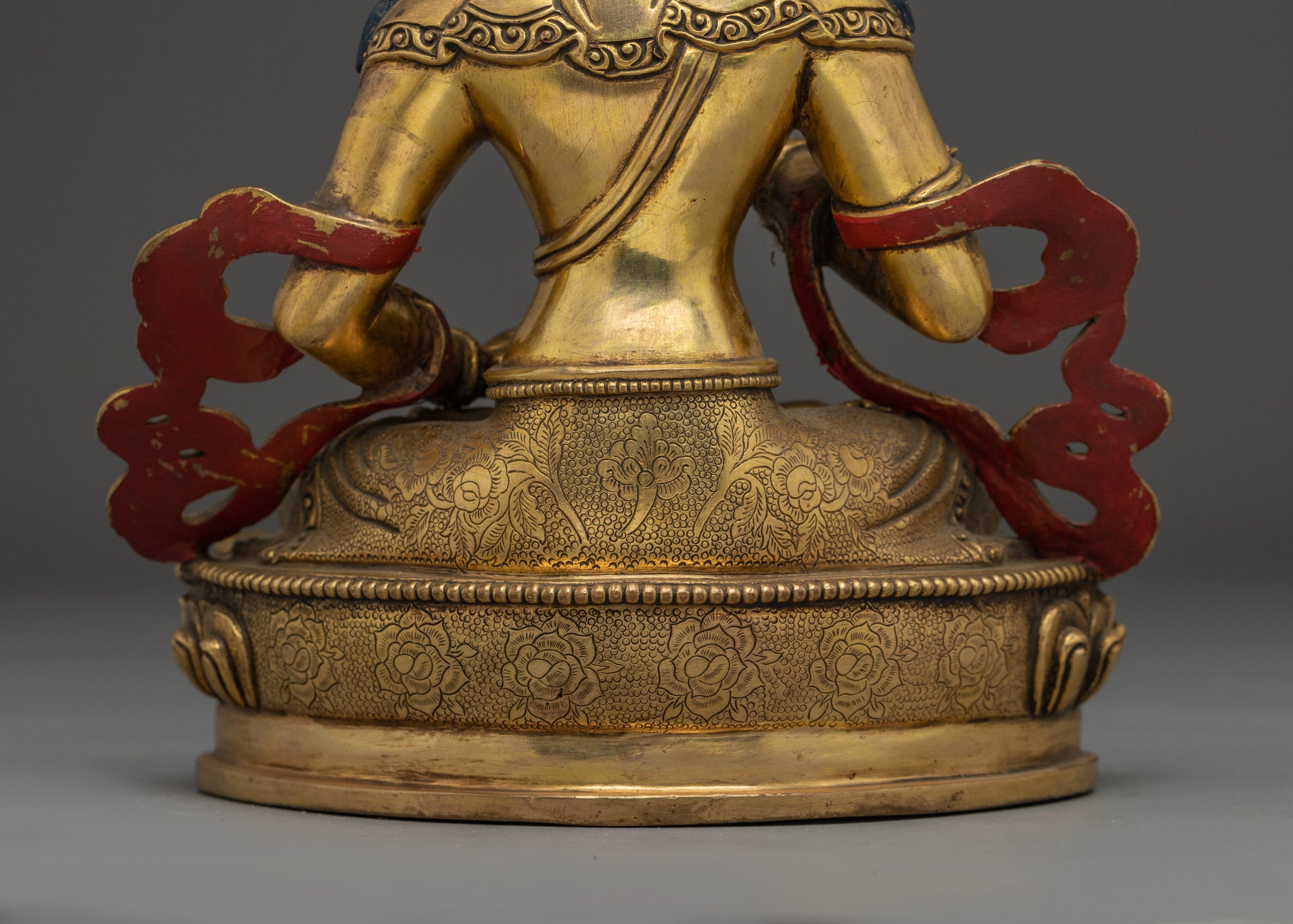 Gold Vajrasattva Statue with Gemstones | Copper Buddhist Deity for Altar and Purification