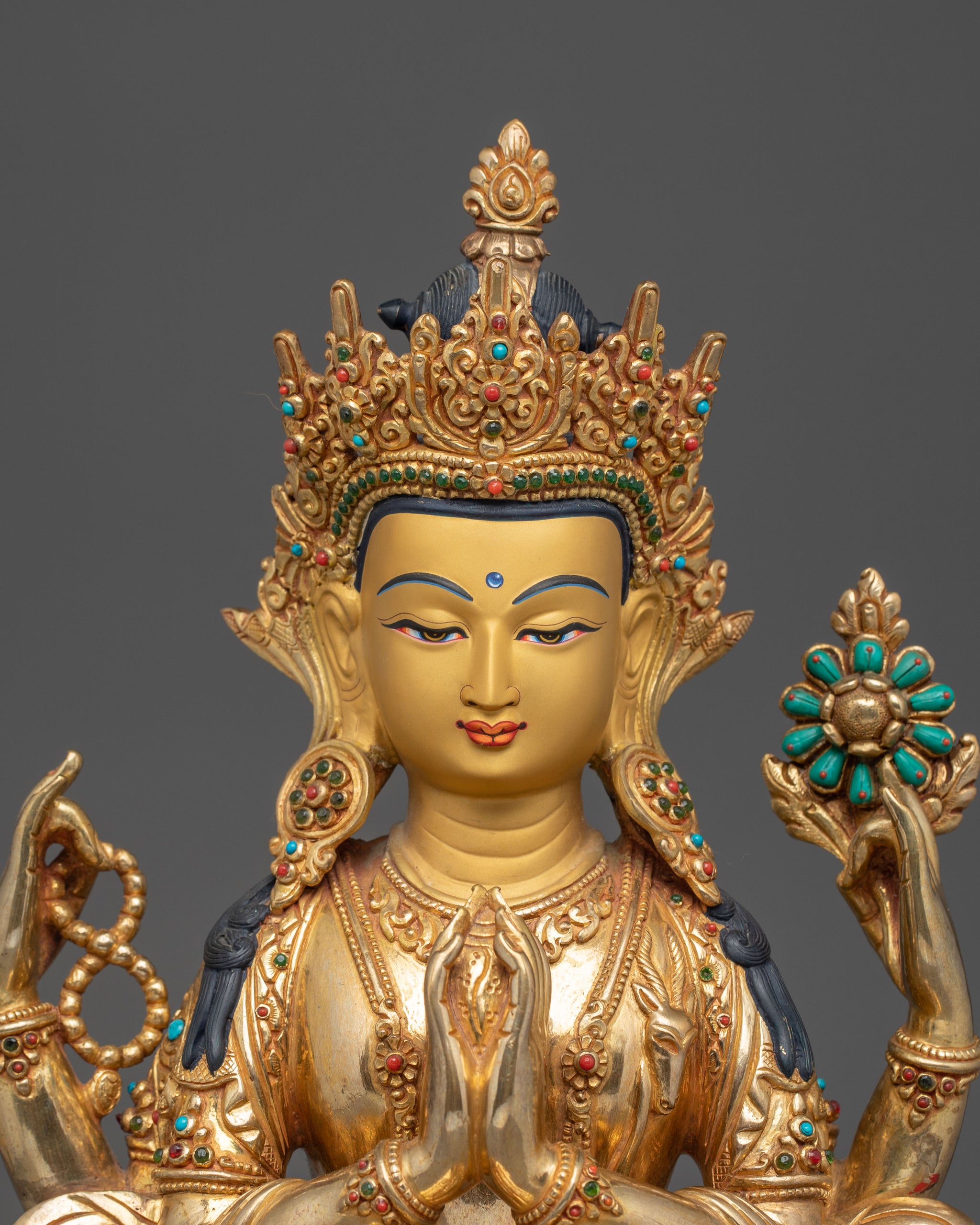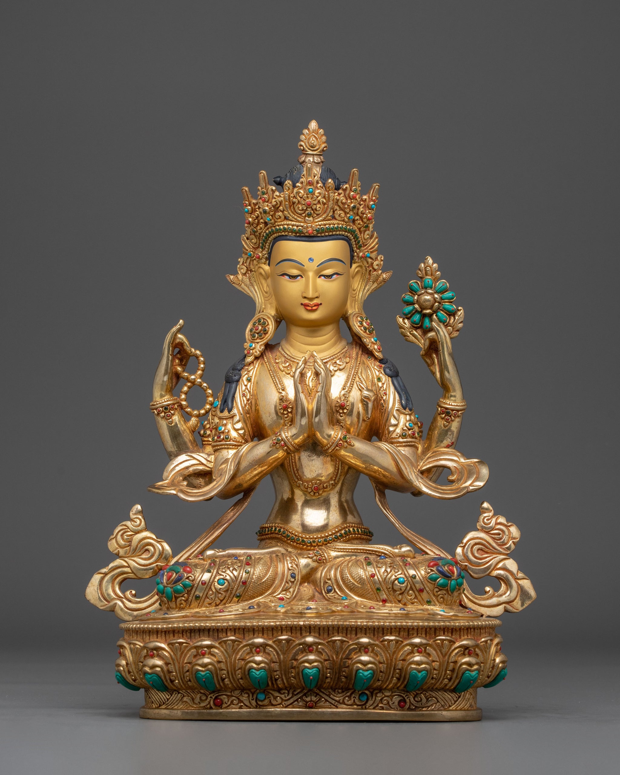 Golden Chenrezig Statue: Symbol of Compassion | Avalokiteshvara Figurine