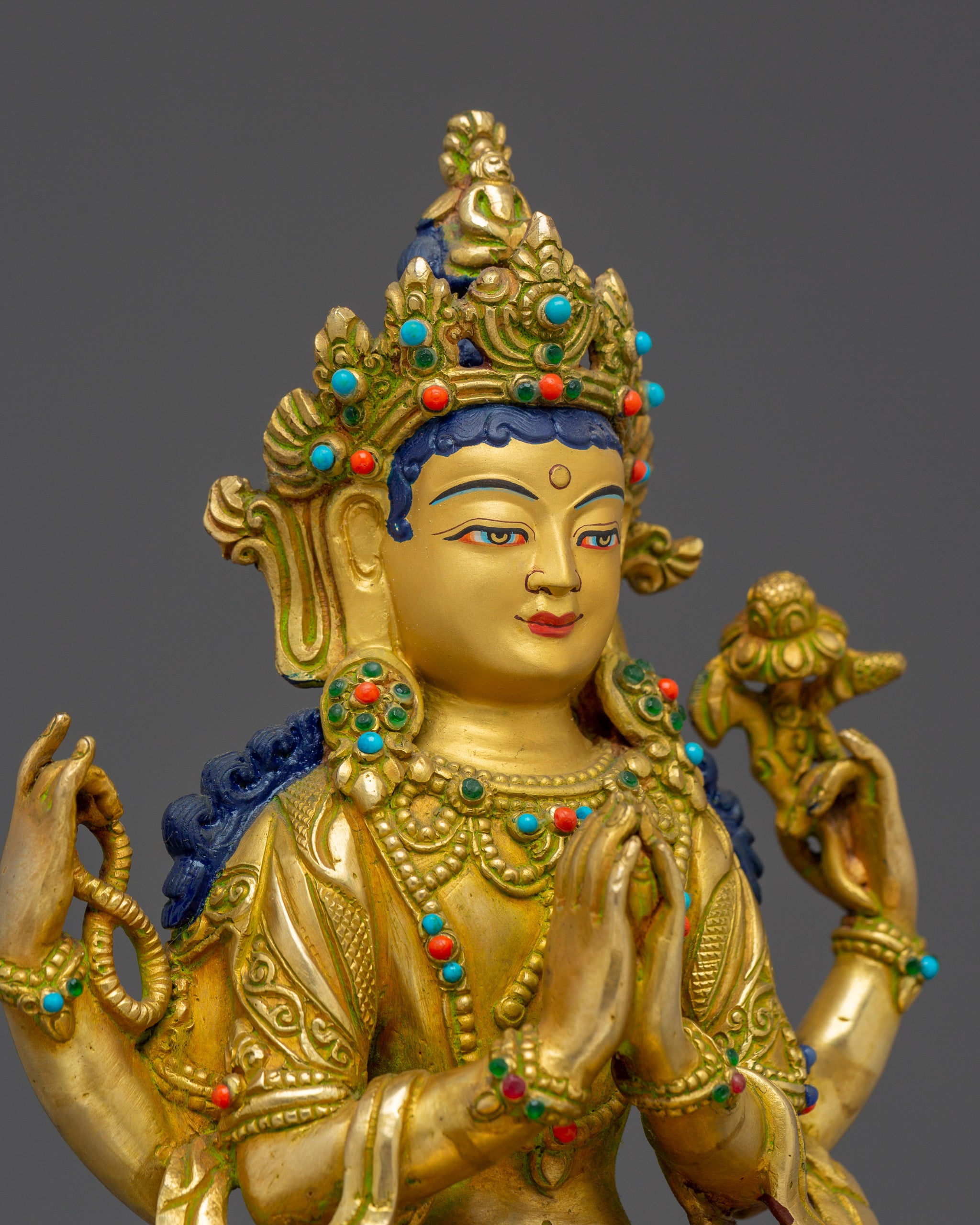 Sacred Golden Chenrezing Statue: Bodhisattva of Compassion