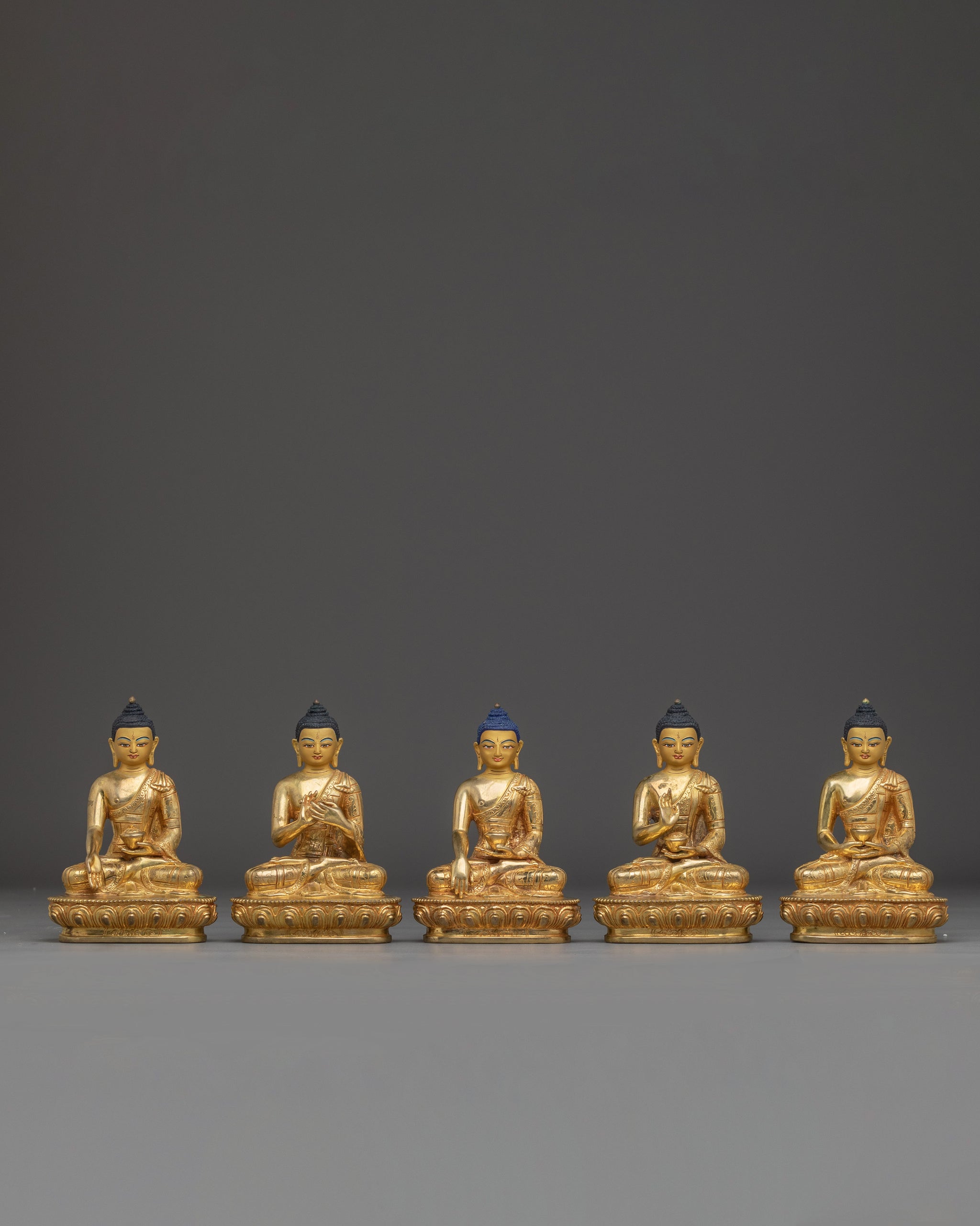 Golden Five Dhyani Buddha Statue Set | Five Enlightened Beings