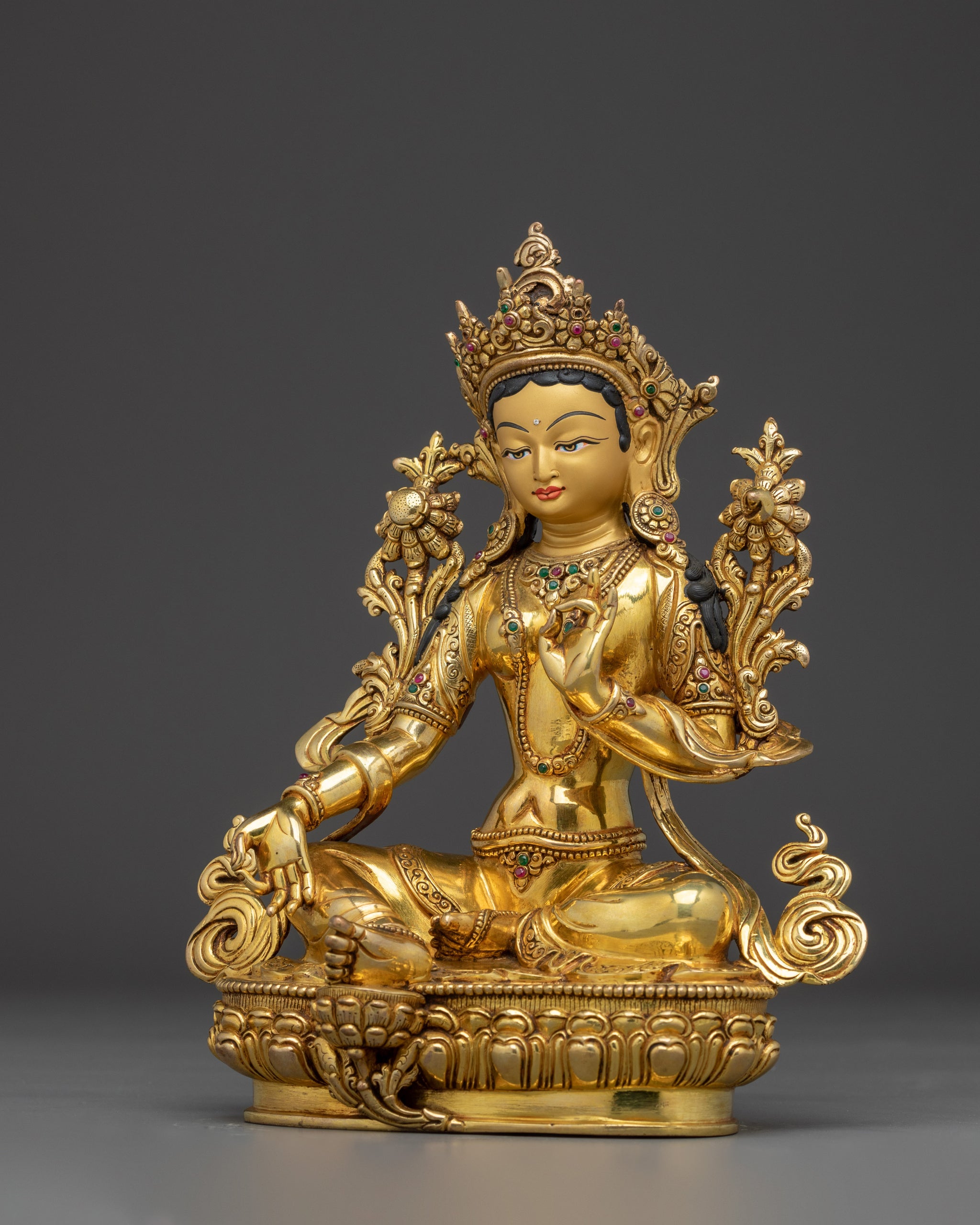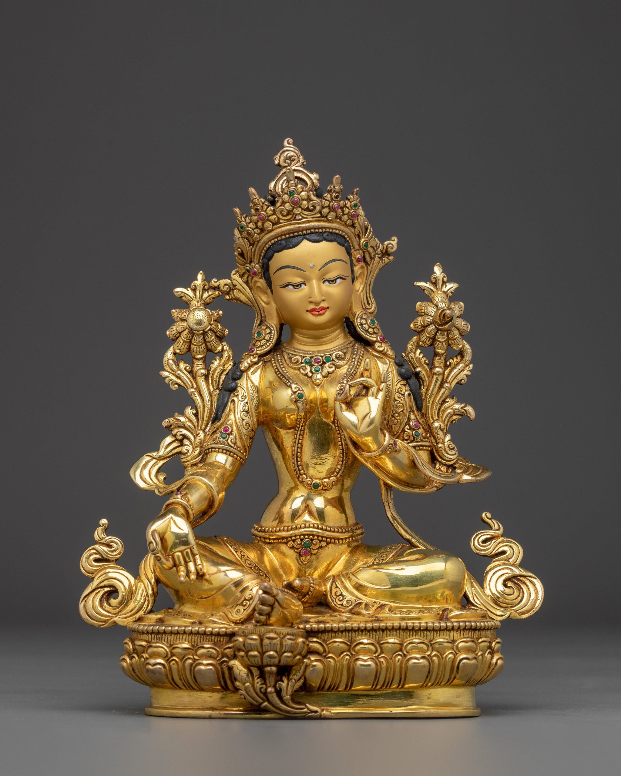 Golden Handmade Green Tara Art | Shyama Tara - Mother of Liberation