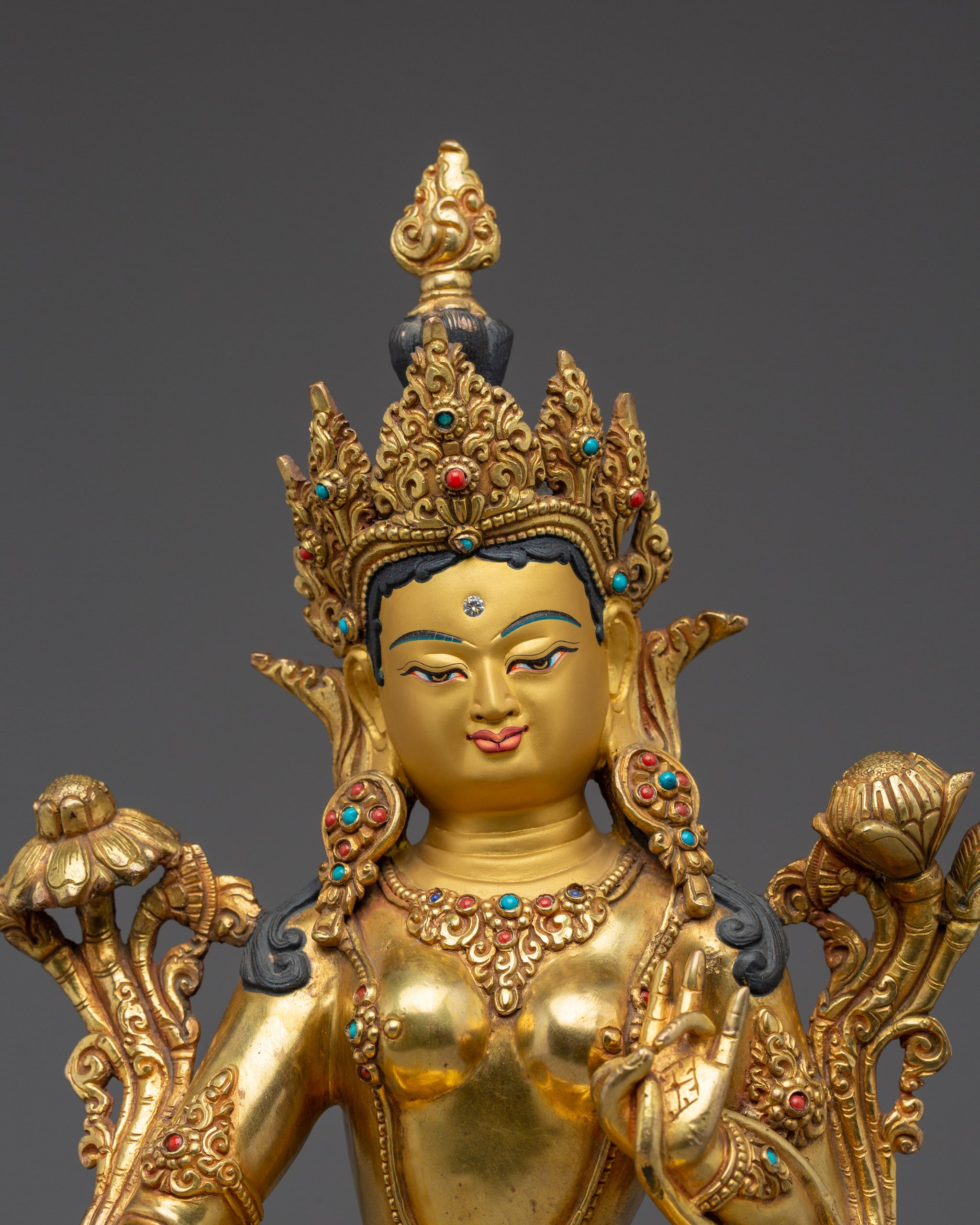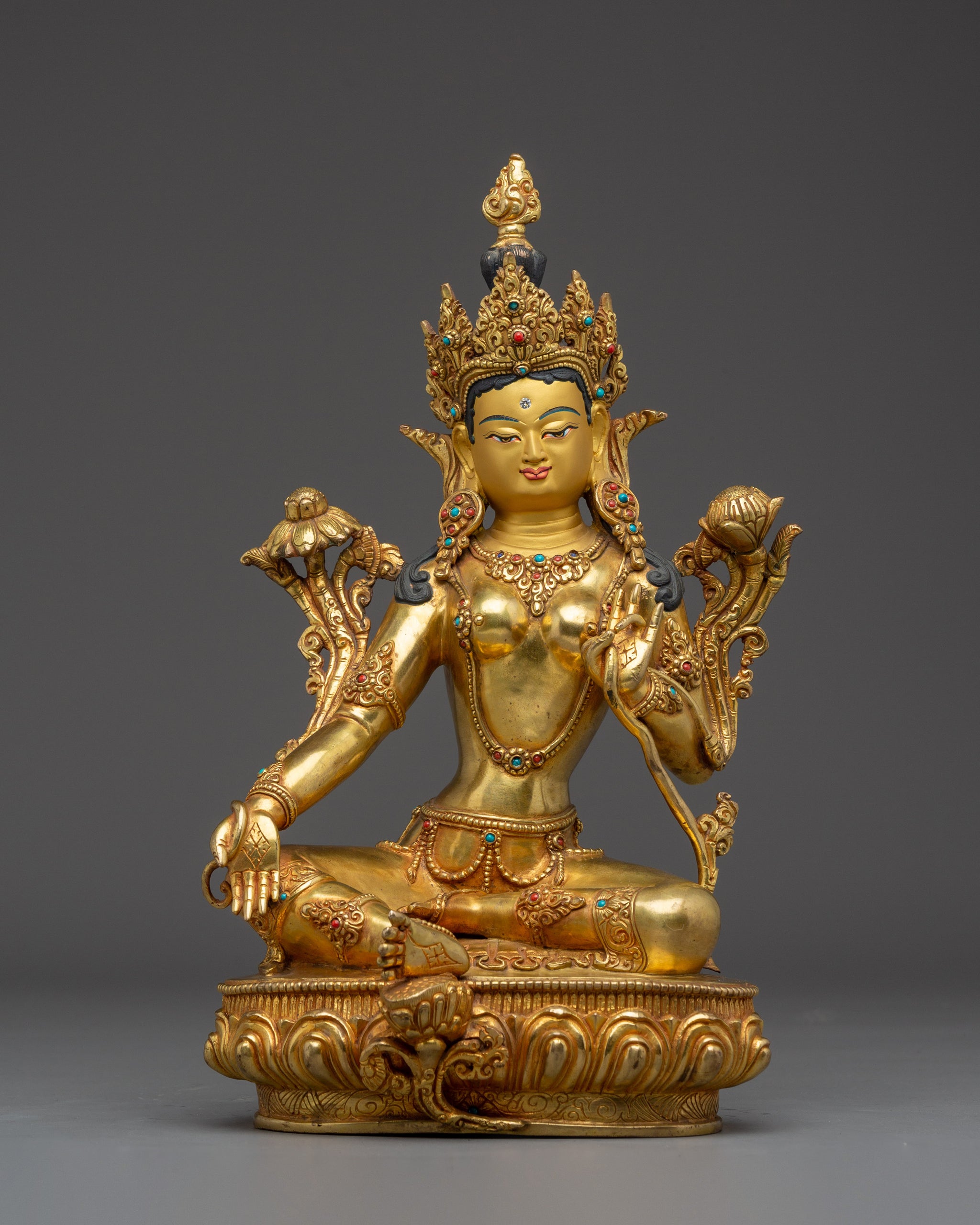 Golden Handmade Green Tara Artwork | Shyama Tara - Mother of Liberation