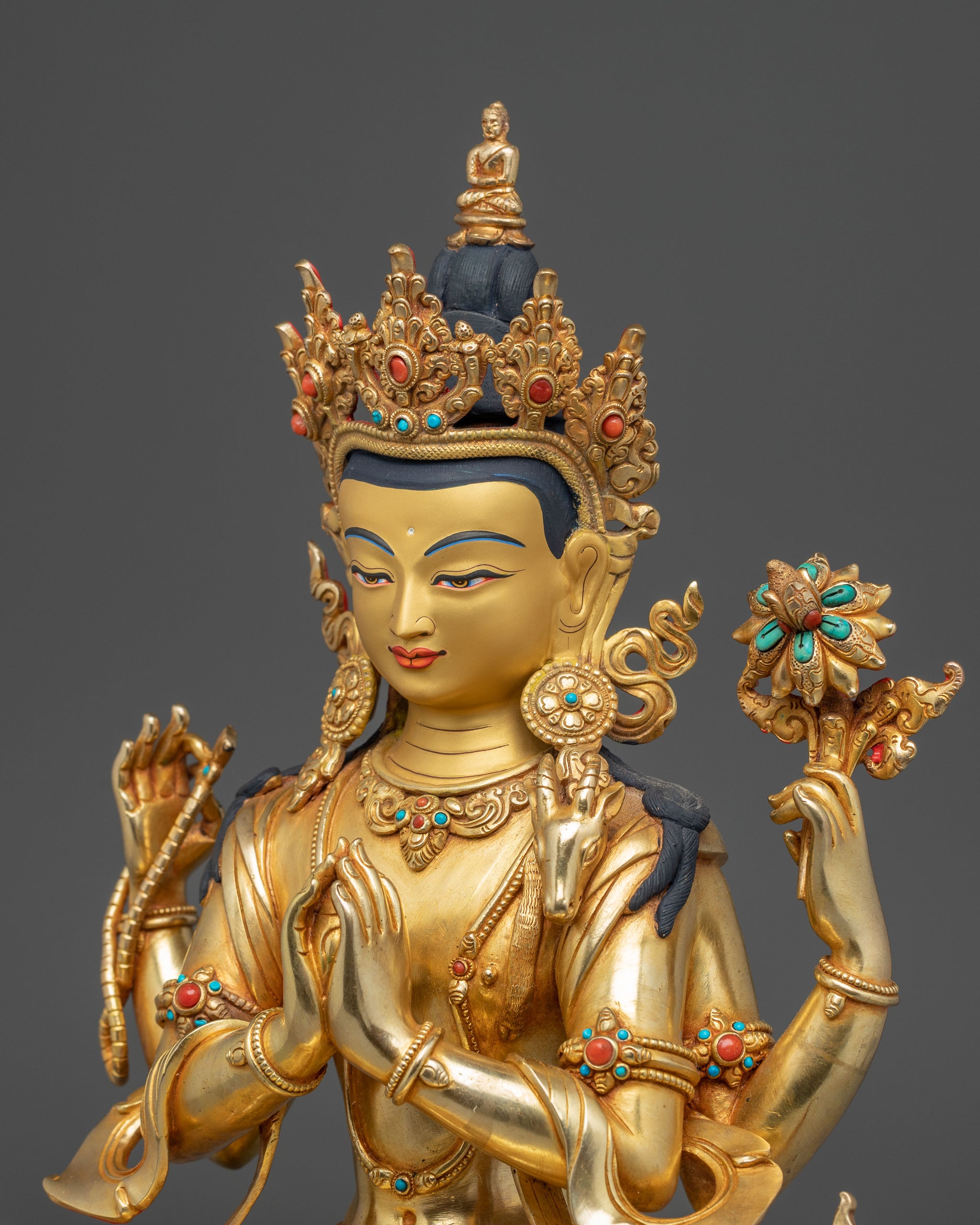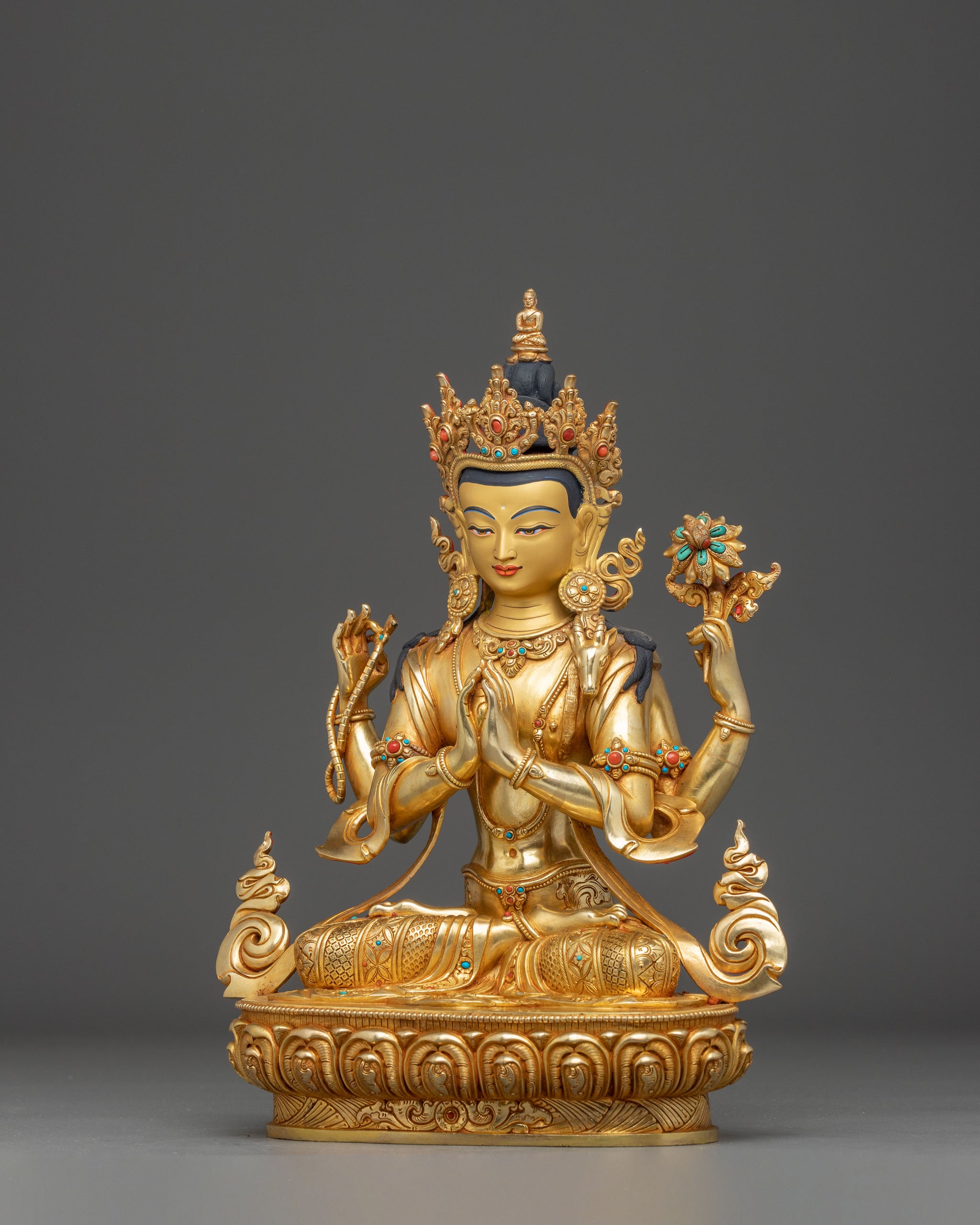 Golden Handmade Statue of Bodhisattva Chenrezig