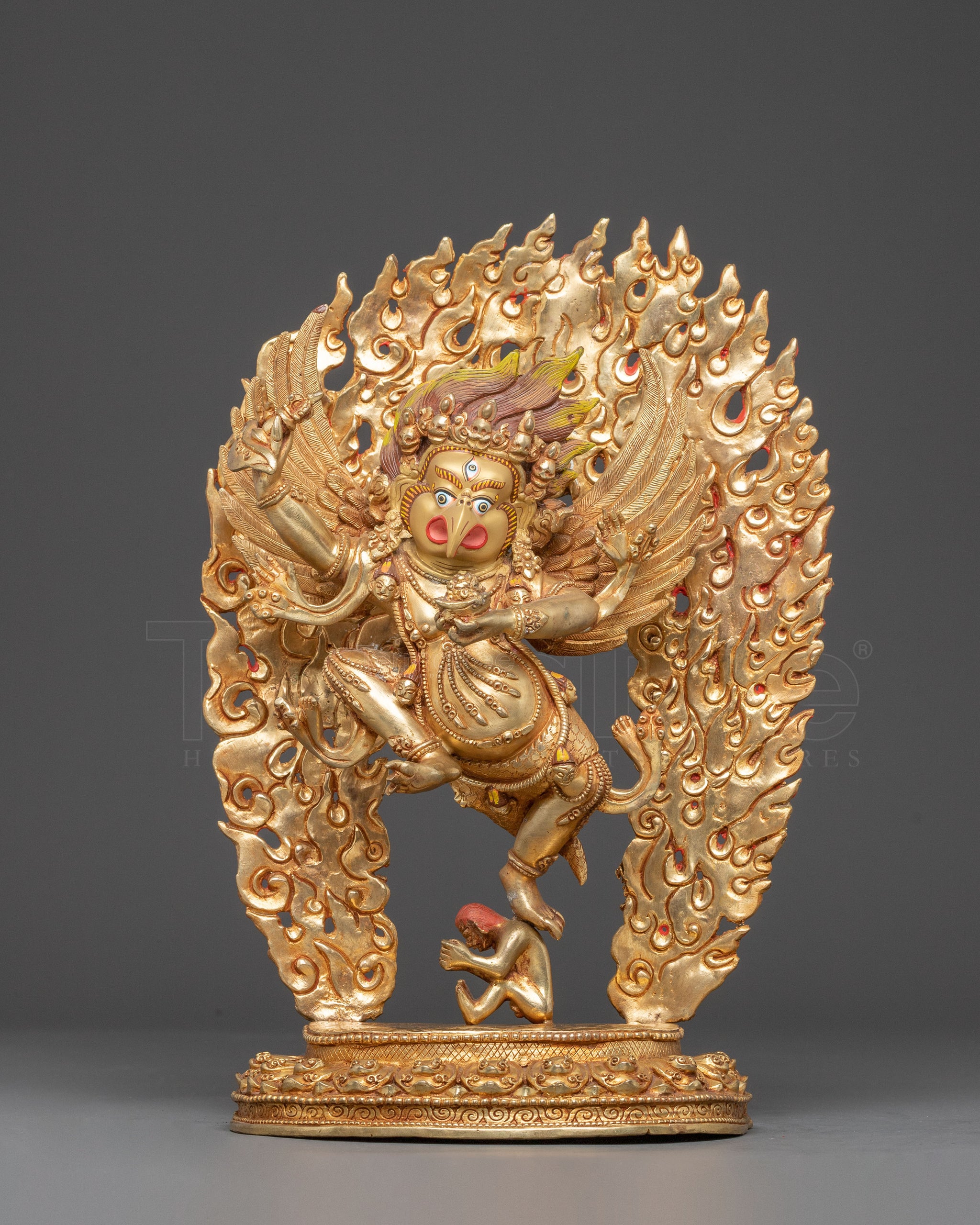 Garuda is a revered figure in many spiritual traditions, including Buddhism, where he is associated with strength, courage, and spiritual power. As a divine protector, Garuda is often invoked to overcome obstacles, destroy negative influences, and bring peace to the mind. Placing his statue in your space is believed to bring protection, clarity, and the ability to rise above challenges with grace and wisdom.