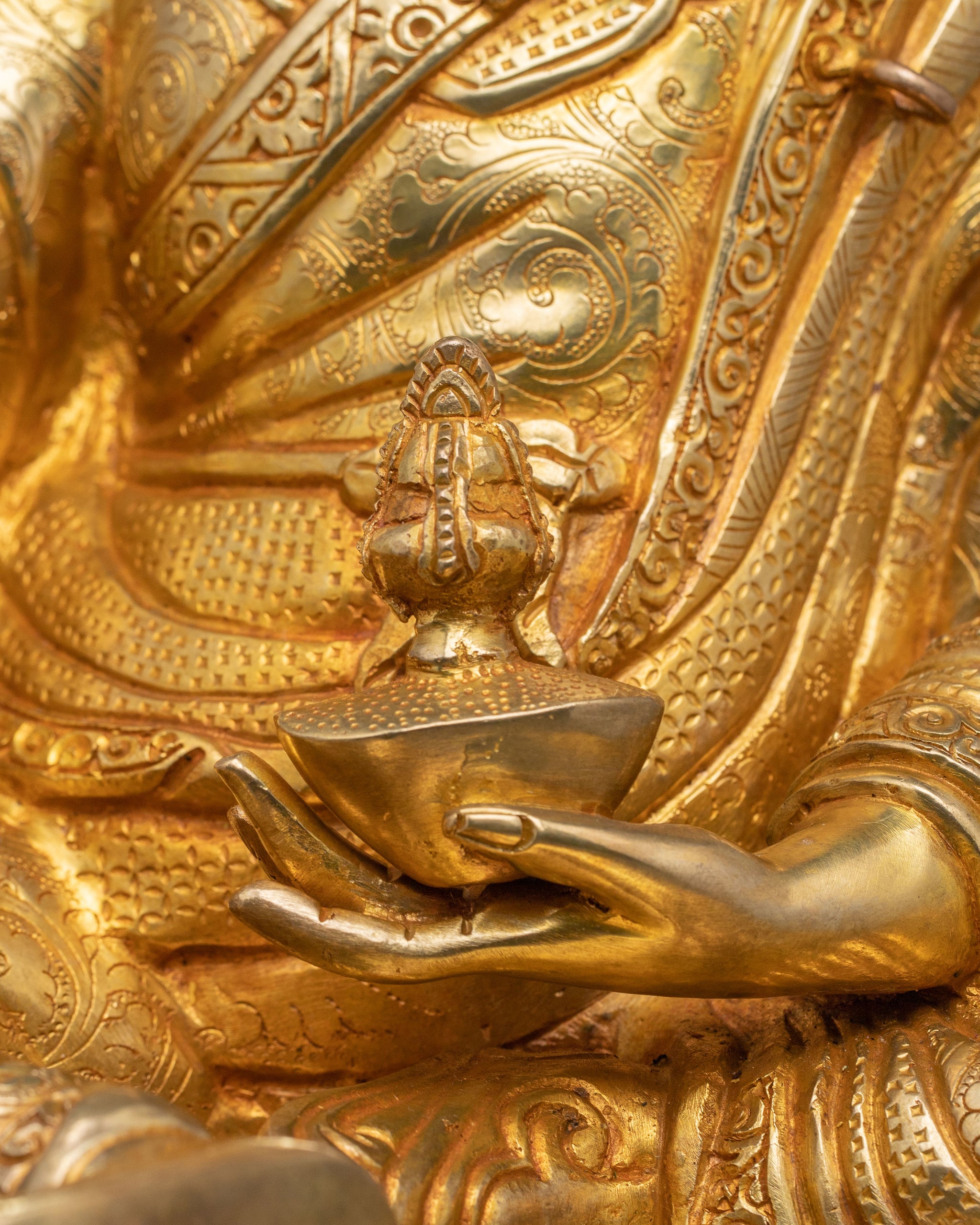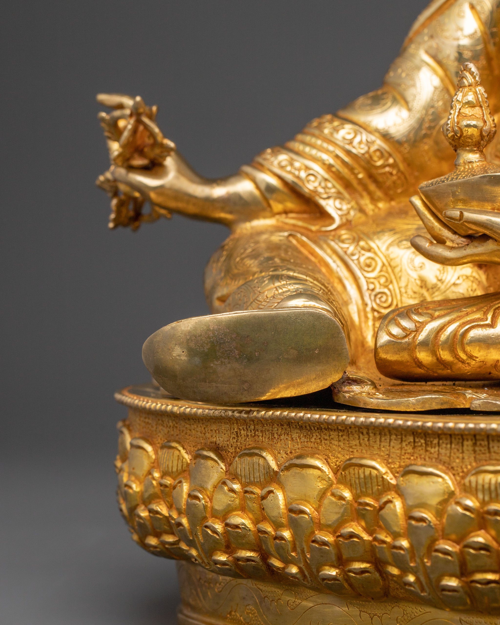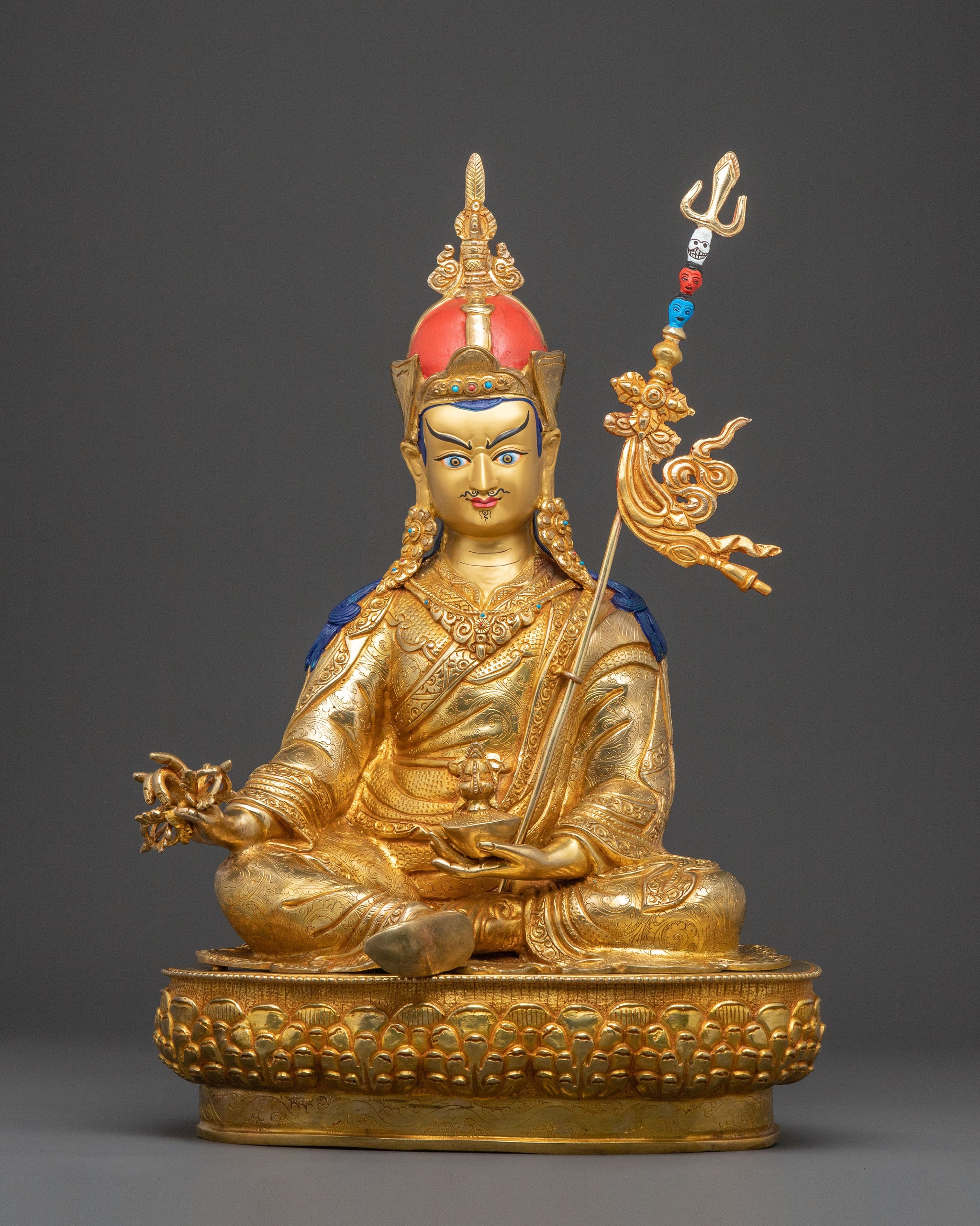Golden Lotus Born Guru Rinpoche Sacred Statue – Hand-Gilded Copper
