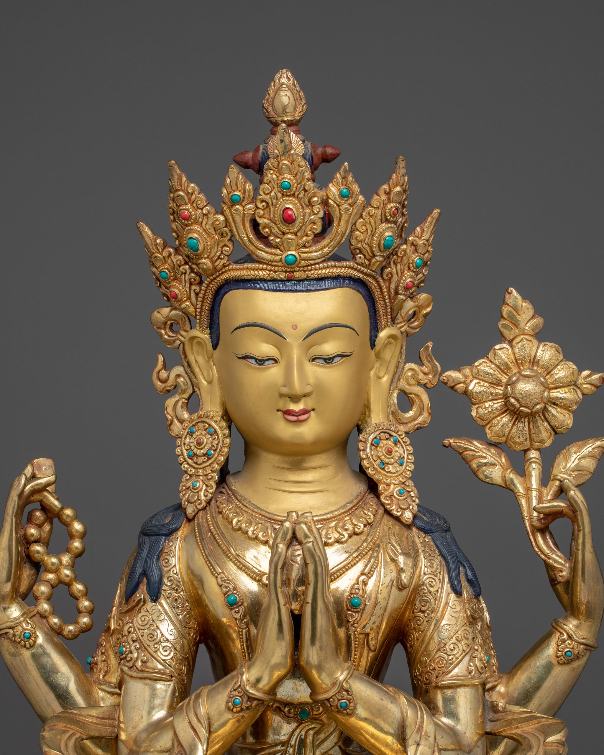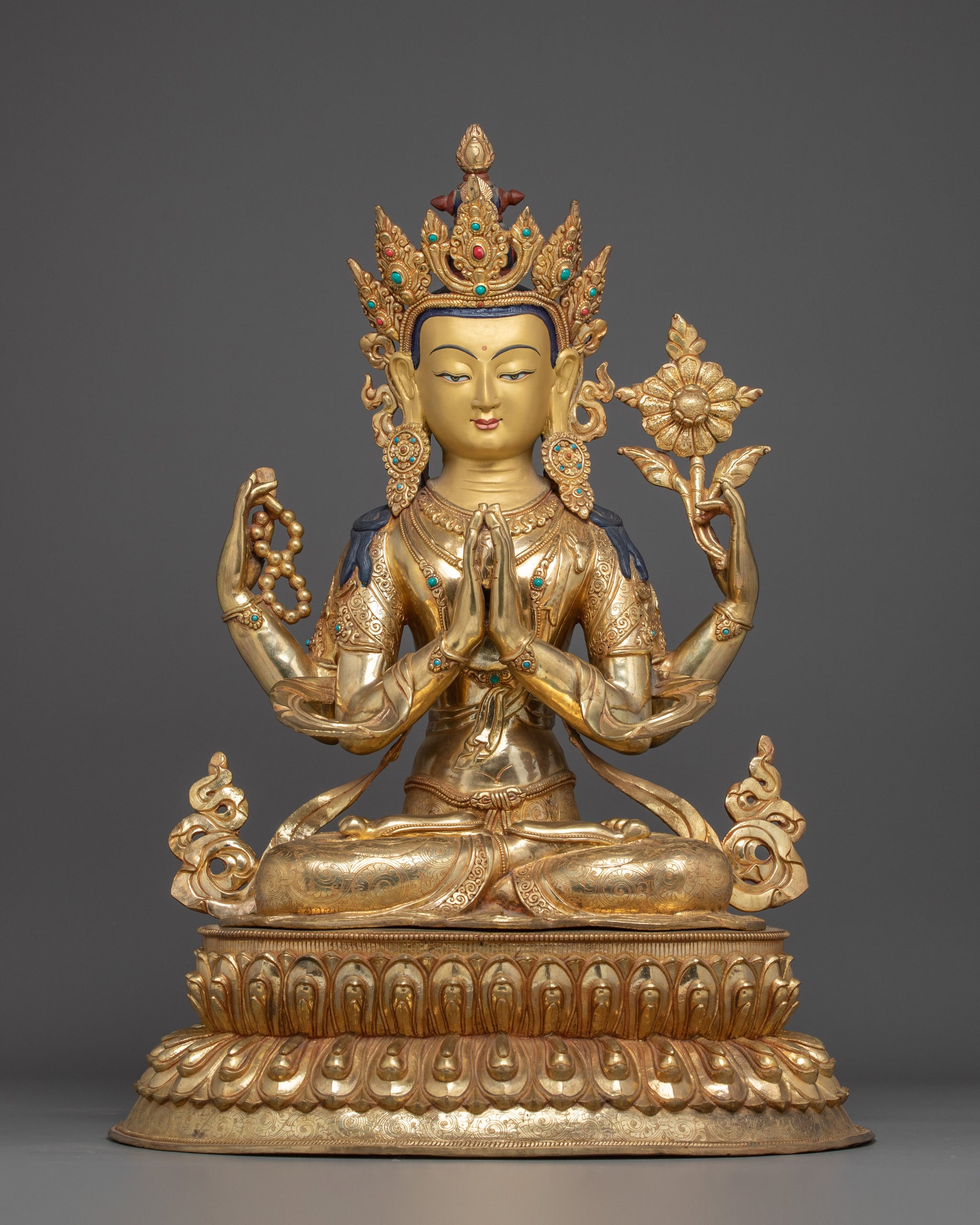 Golden Sculpture of Chenrezig | Also Known as Avalokiteshvara