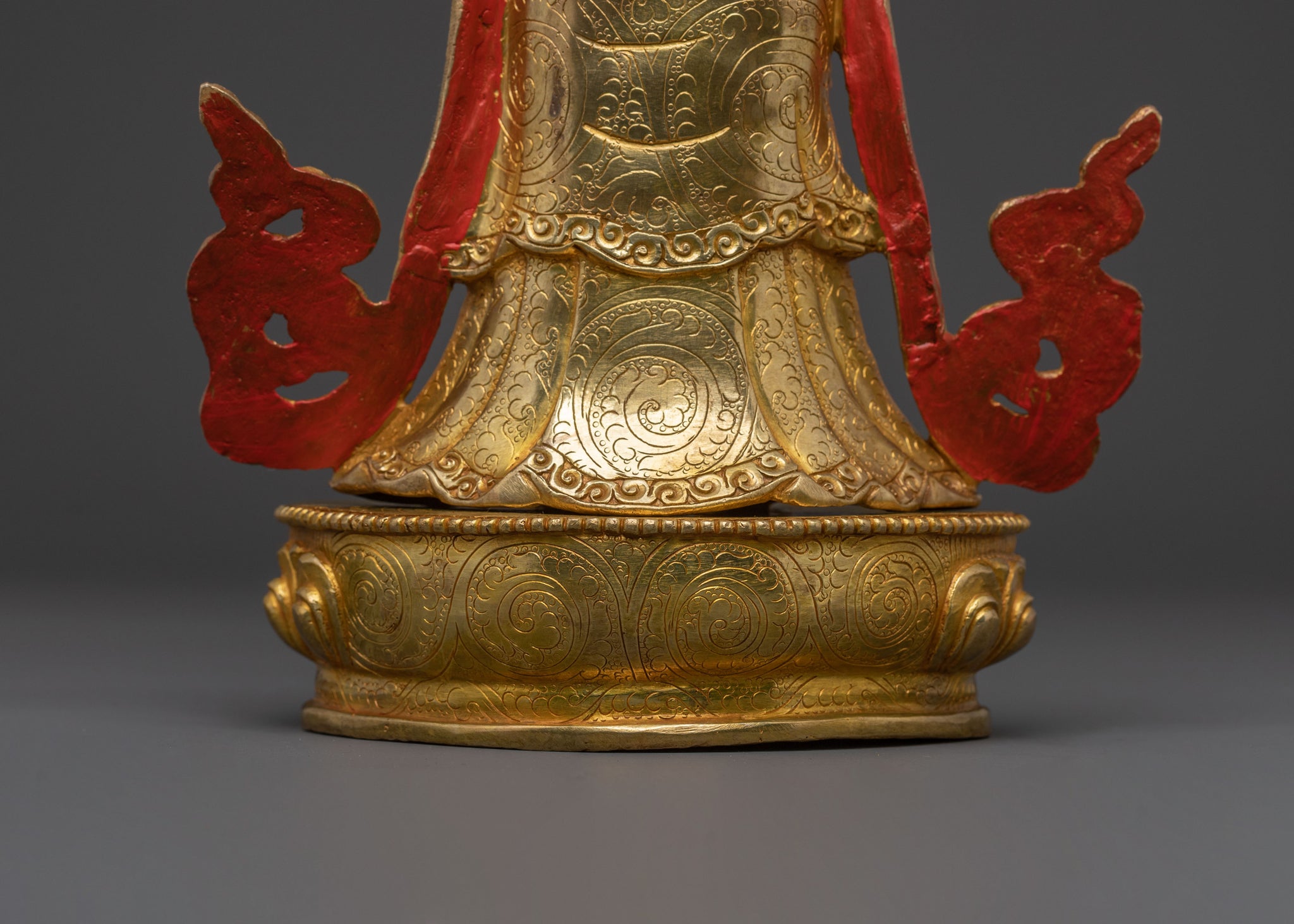 Adorned in radiant 24K gold, this golden standing Chenrezig statue emanates boundless compassion. Crafted with devotion, this inspiring piece of Buddhist art represents the Bodhisattva of Great Compassion, standing tall at 35cm (13.7 inches) with a peaceful presence, making it a focal point for any spiritual space.