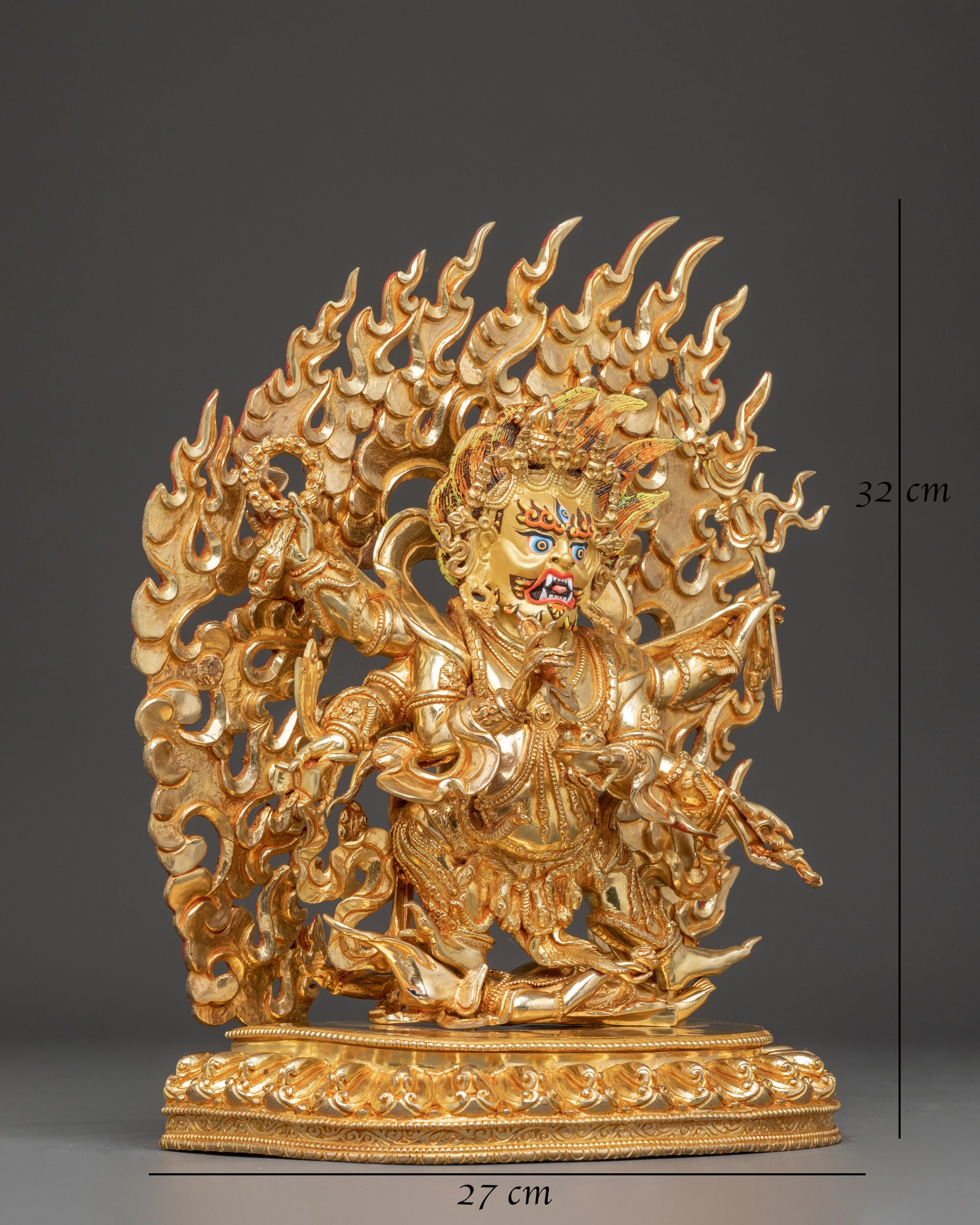Golden Statue of Protector Six-Armed Mahakala | Wrathful Guardian