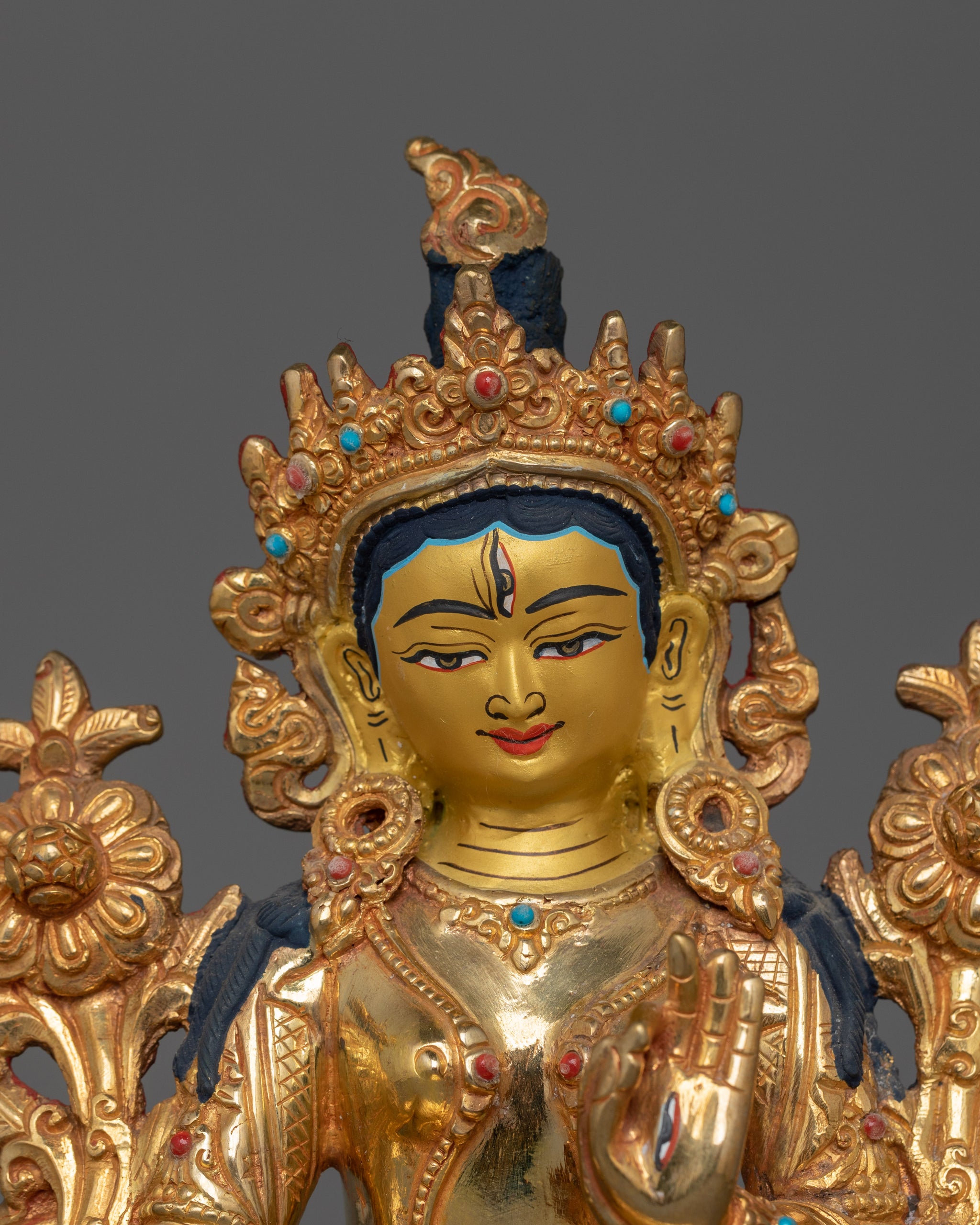 Handmade Golden Statue of Seven Eyes White Tara | The Goddess of Longevity