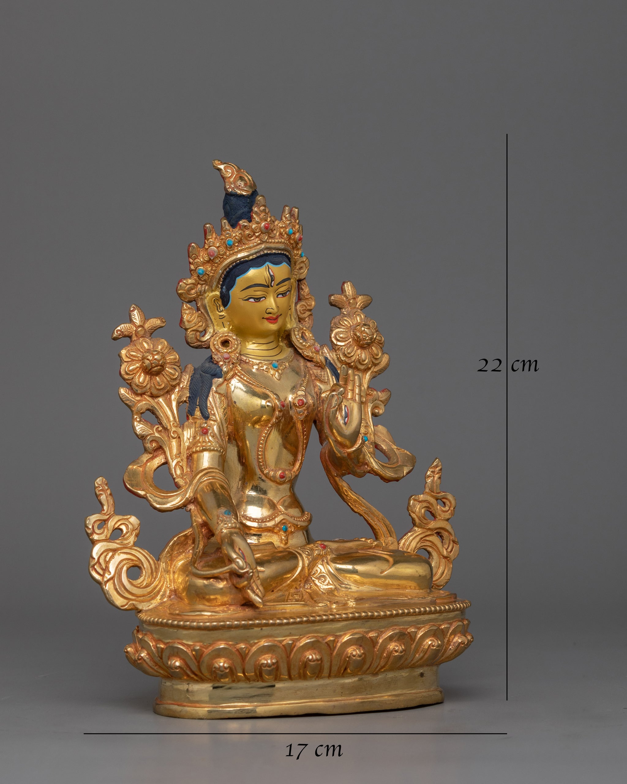 The statue is very beautiful. The craftsman who crafted it clearly shows the care and heart he put into it. It is a true dharma jewel on the altar. Shipping was quick, considering the recent events in Nepal. It was carefully packed and filled in a wooden box. If you're buying for shipping to the European Union, please note that customs duties on items from outside the EU are as high as 23 percent of the value.