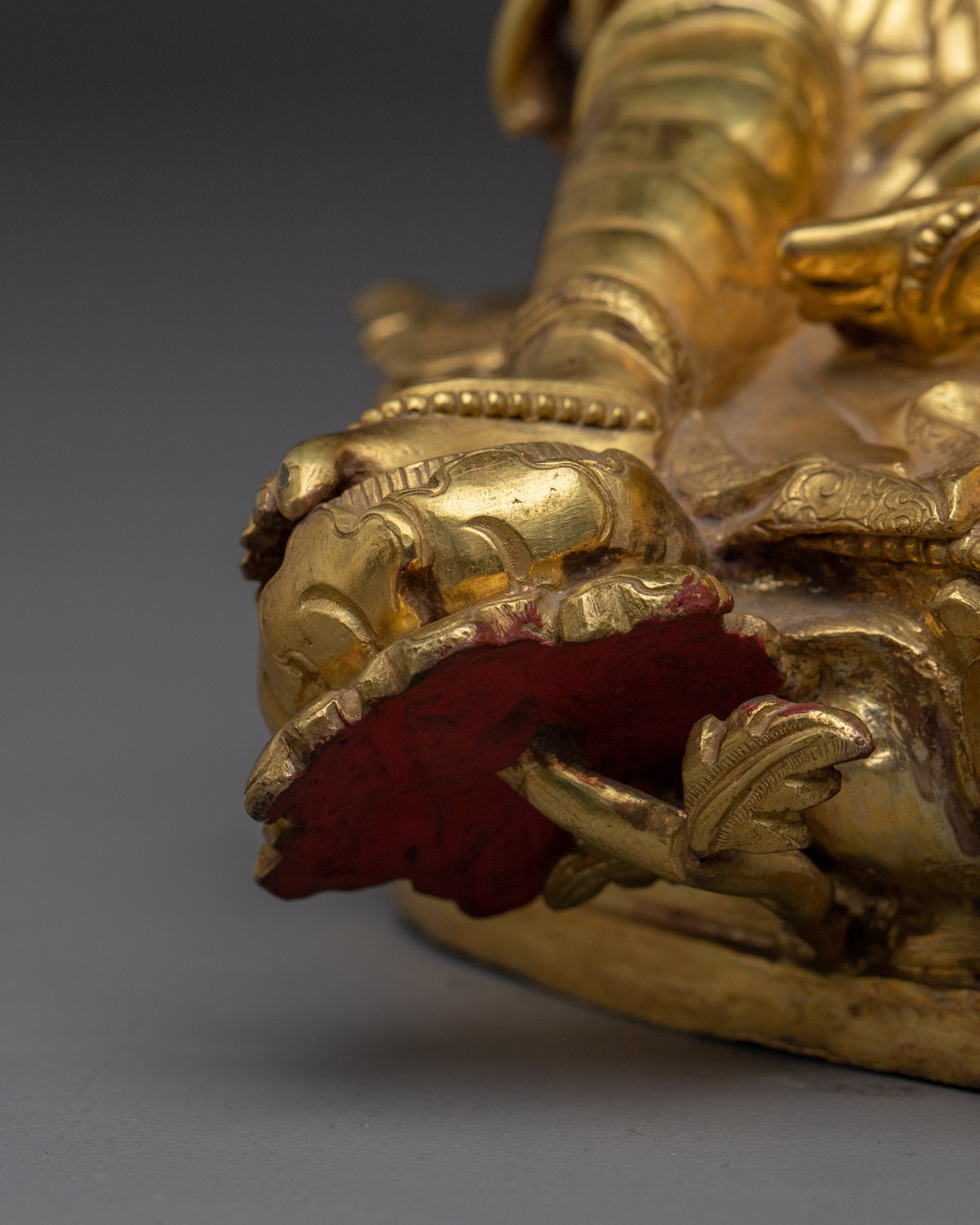 Vajrayogini is stunning. The details are amazing. It's easy to make out her facial expressions, skulls, feet, and the ring of fire around her. You can tell she's handmade. There is a consecration hole in her back.