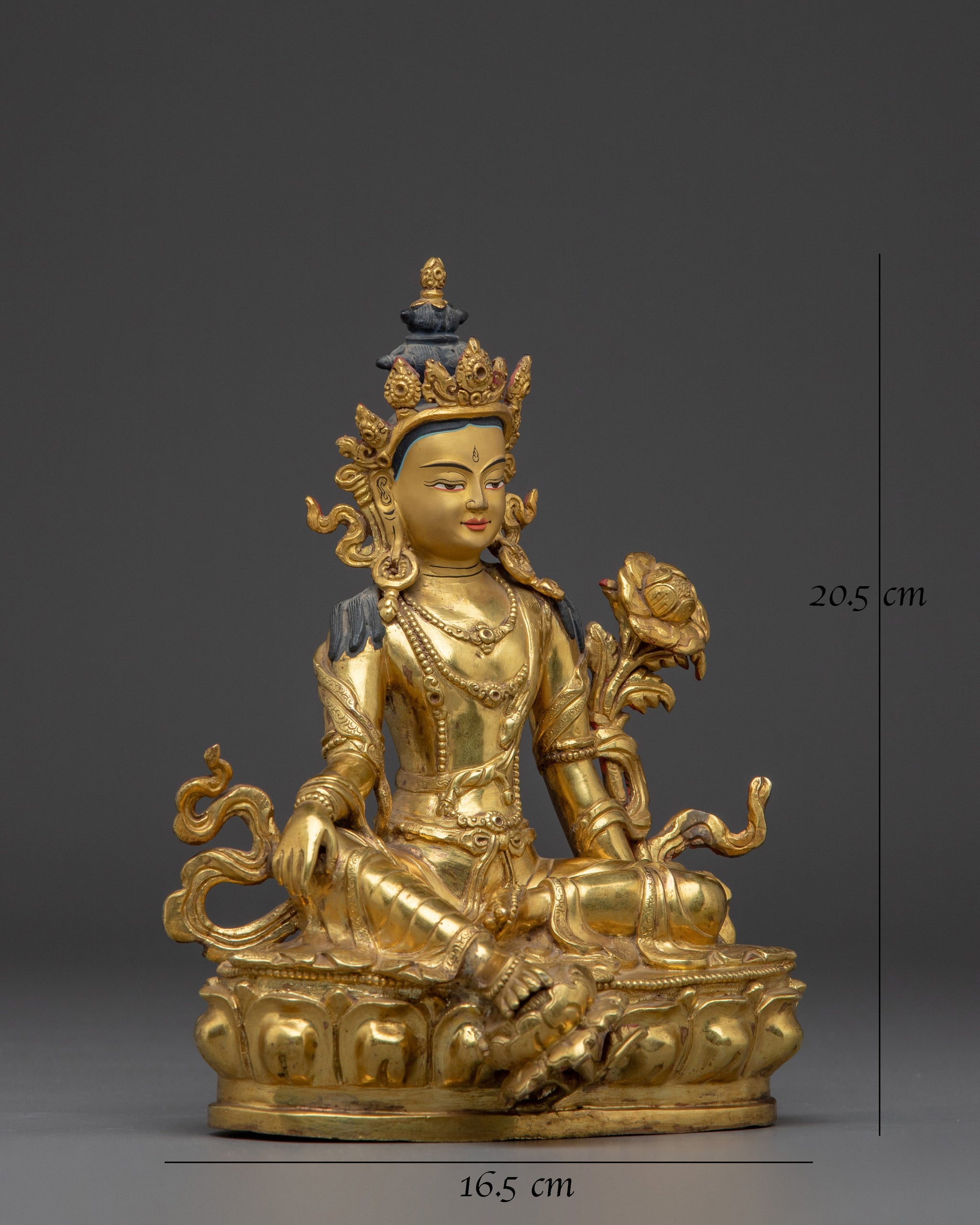 The statue is very beautiful. The craftsman who crafted it clearly shows the care and heart he put into it. It is a true dharma jewel on the altar. Shipping was quick, considering the recent events in Nepal. It was carefully packed and filled in a wooden box. If you're buying for shipping to the European Union, please note that customs duties on items from outside the EU are as high as 23 percent of the value.