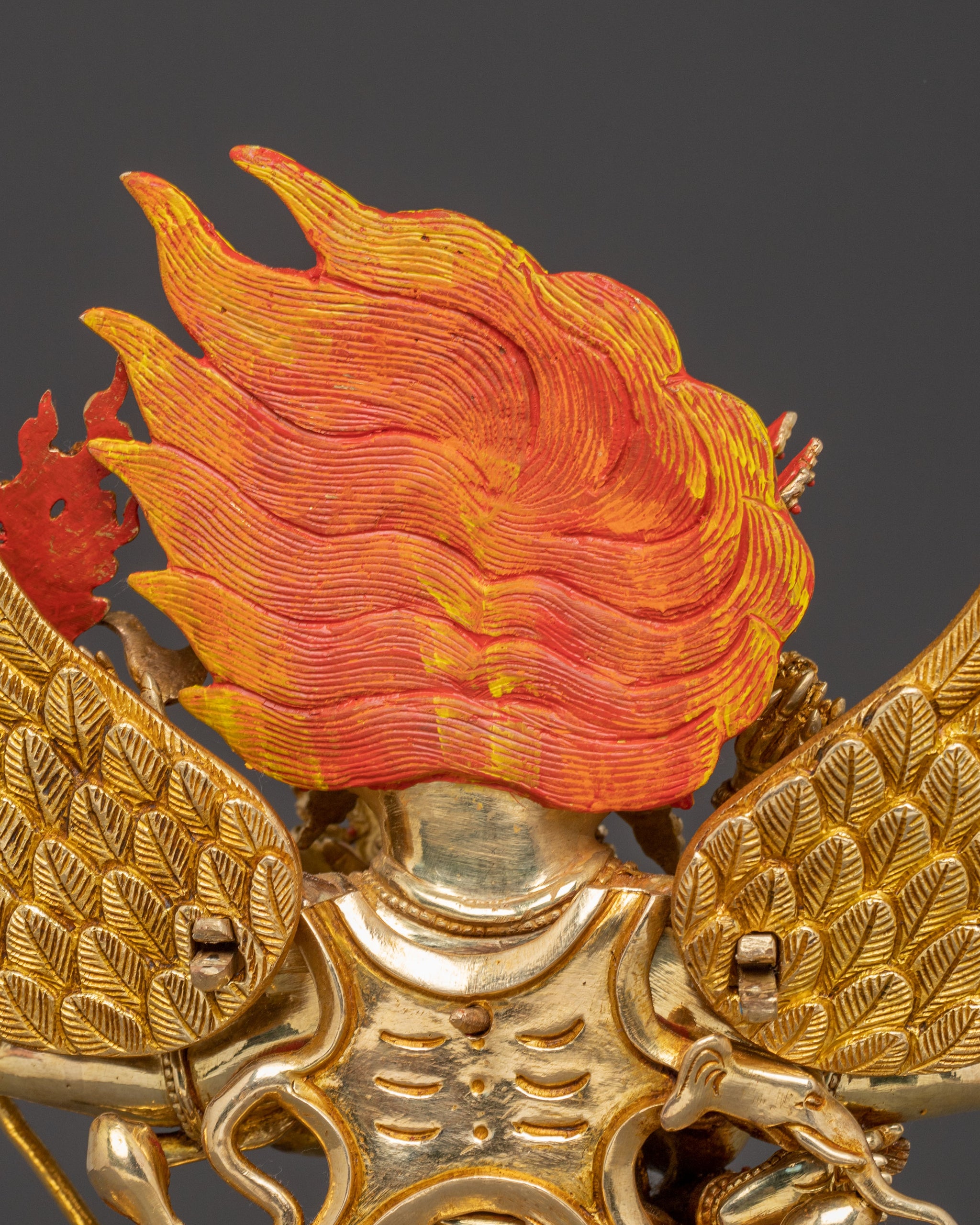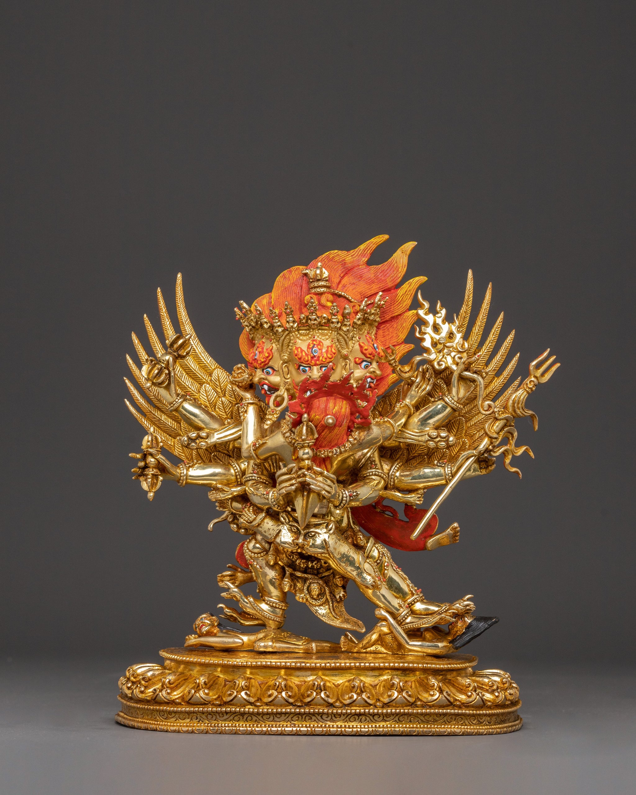 From the dynamic wings and symbolic weaponry to Vajrakilaya's expressive faces and many arms, every element of this statue exemplifies the highest level of tantric artistry. This statue exudes protective energy and an enduring presence, whether it is utilized for excellent ritual, spiritual purification, or as the focal point of a dharma hall. It is a direct path to unwavering compassion and spiritual awareness, and it is more than just sacred art.