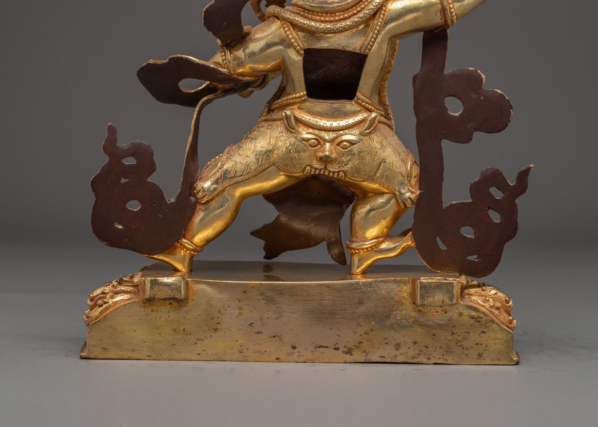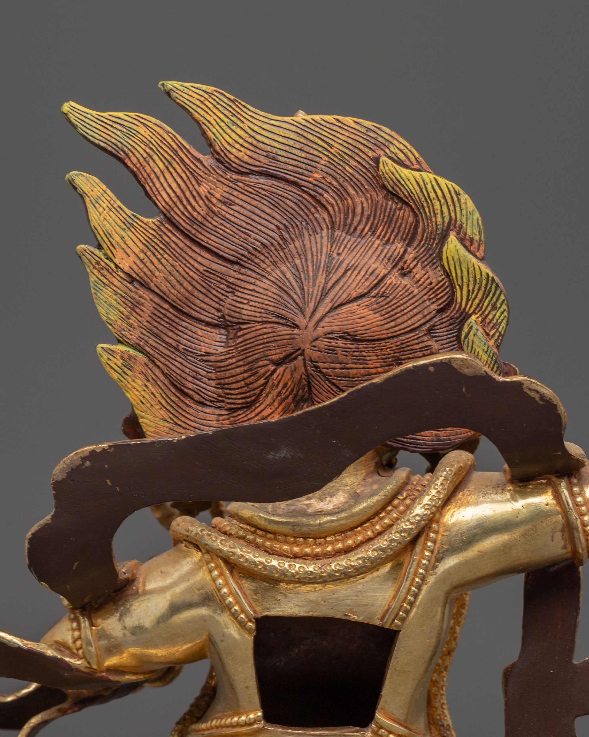 Vajrayogini is stunning. The details are amazing. It's easy to make out her facial expressions, skulls, feet, and the ring of fire around her. You can tell she's handmade. There is a consecration hole in her back.