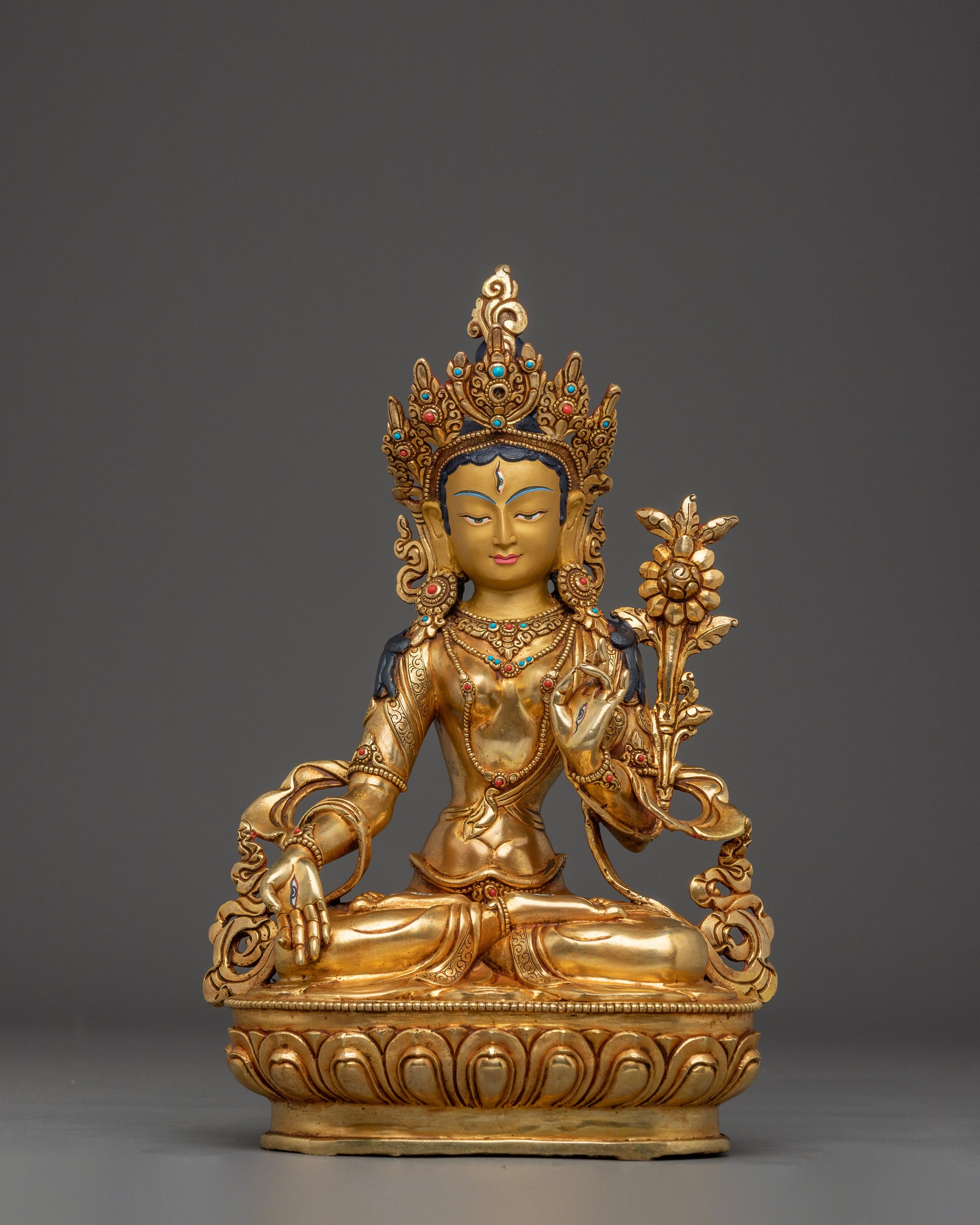 Golden White Tara Sacred Buddhist Artwork | Divine Protector and Spiritual Guide