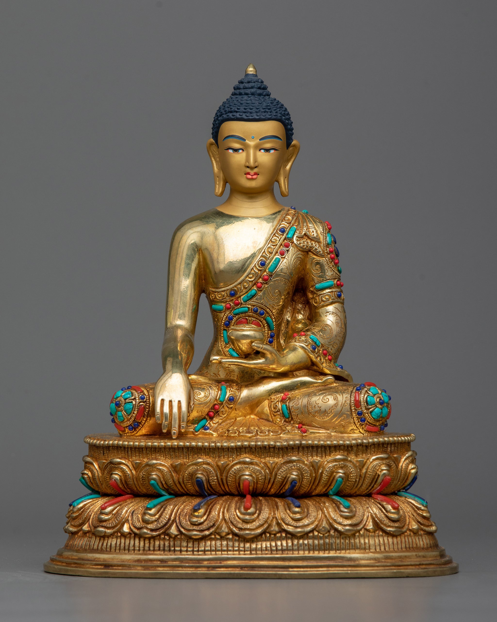 The Gotama Shakyamuni Buddha Statue is a representation of compassion and enlightenment. This monument, which was carefully crafted, represents inner serenity and spiritual awakening. This statue, which is composed of a copper body, hand-carved gemstone, 24K gold gilded, gold and acrylic paintings, and a timeless wisdom of Buddha's teachings, the Buddha Shakyamuni Statue serves as a revered reminder of the Buddha's profound message of compassion and liberation .