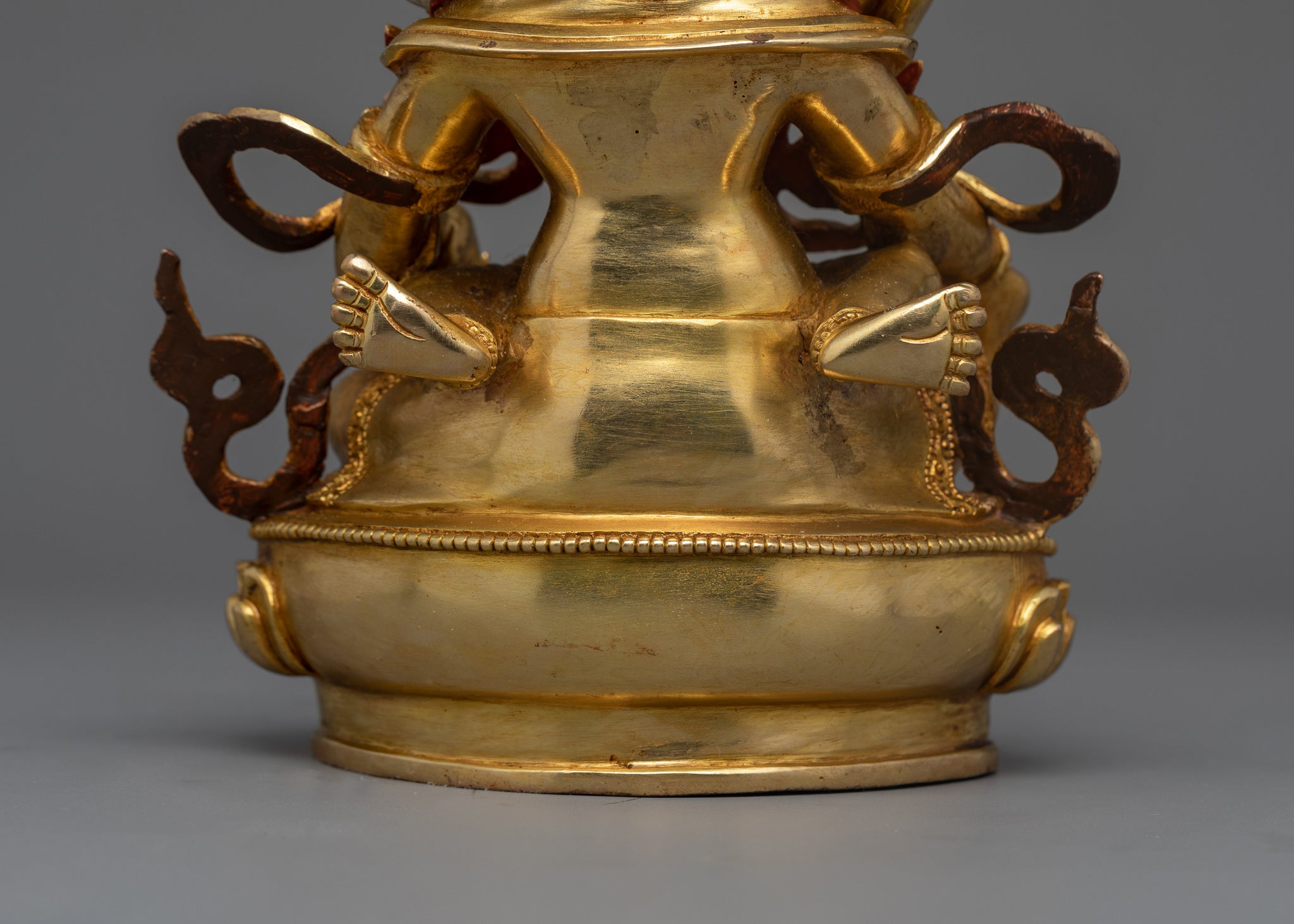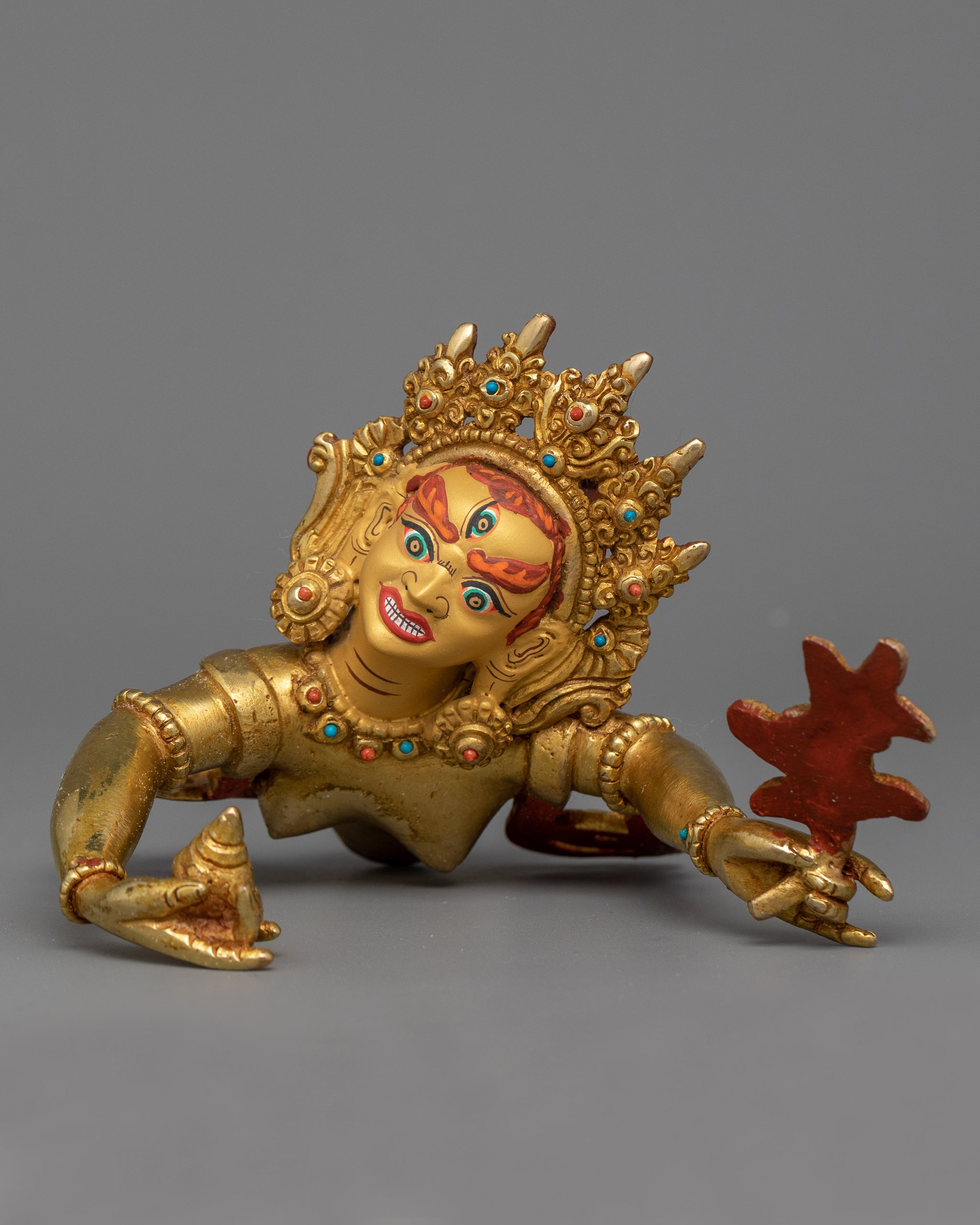Vajrayogini is stunning. The details are amazing. It's easy to make out her facial expressions, skulls, feet, and the ring of fire around her. You can tell she's handmade. There is a consecration hole in her back.