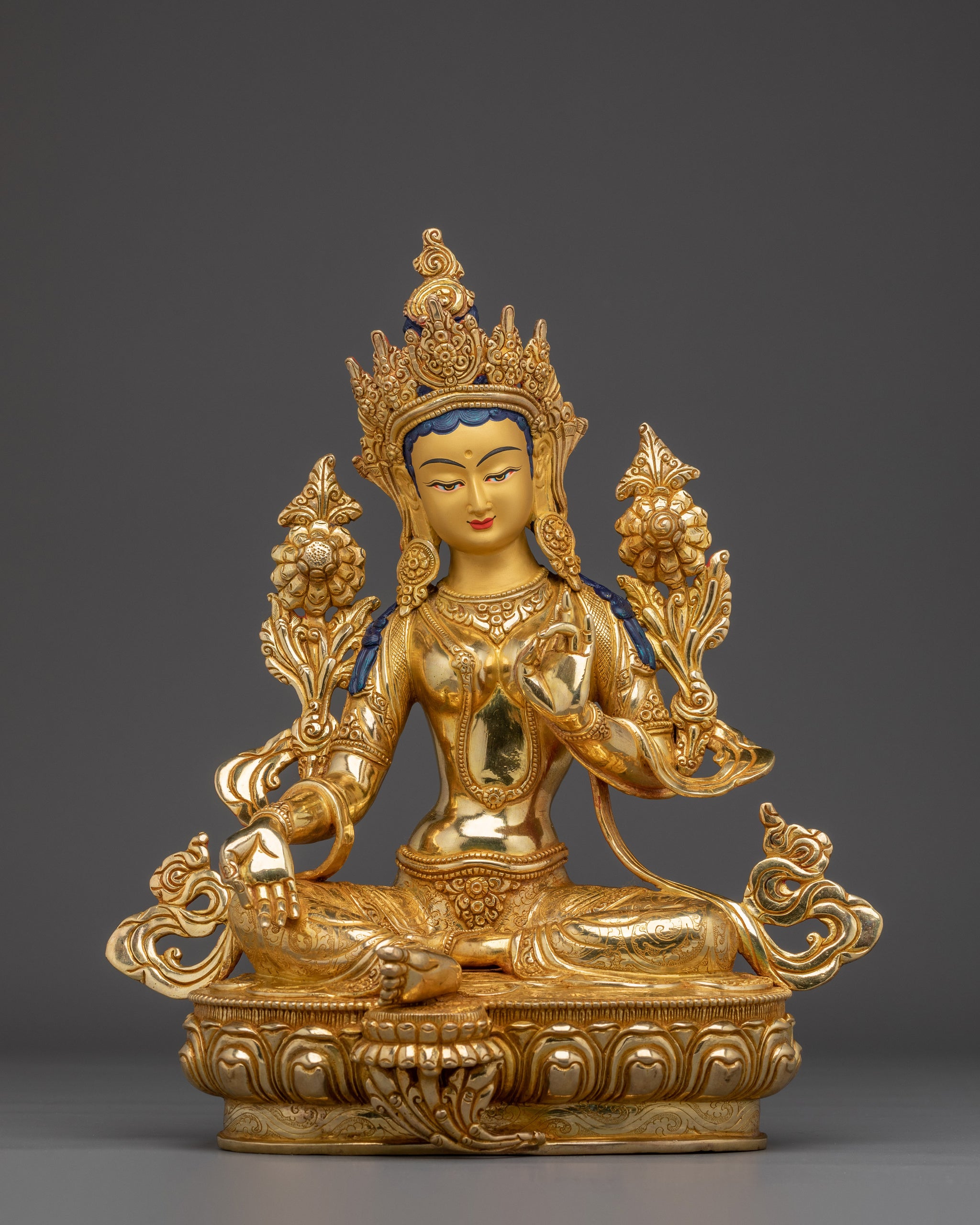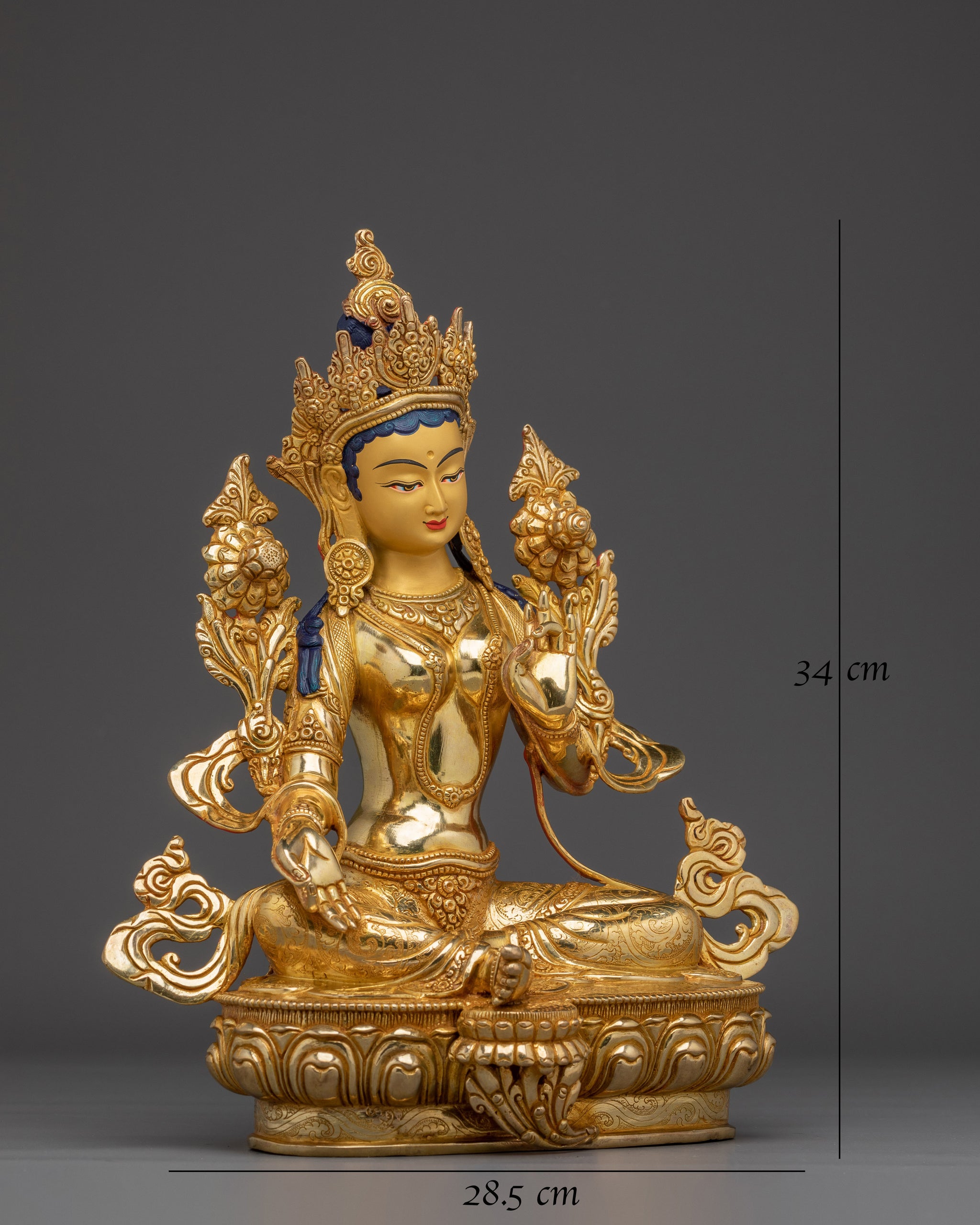 Green Tara 24K Gold Gilded Copper Statue | Bodhisattva of Compassion and Protection