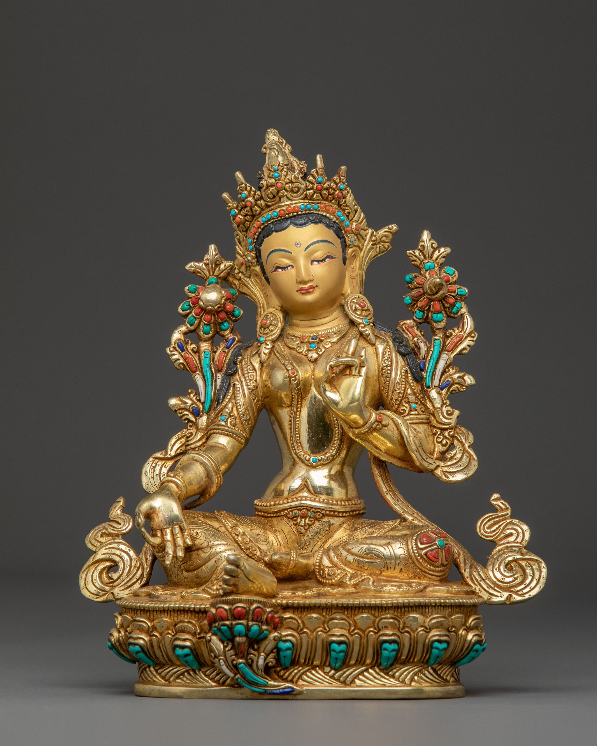 Green Tara Compassion Statue – Gilded Copper Artwork