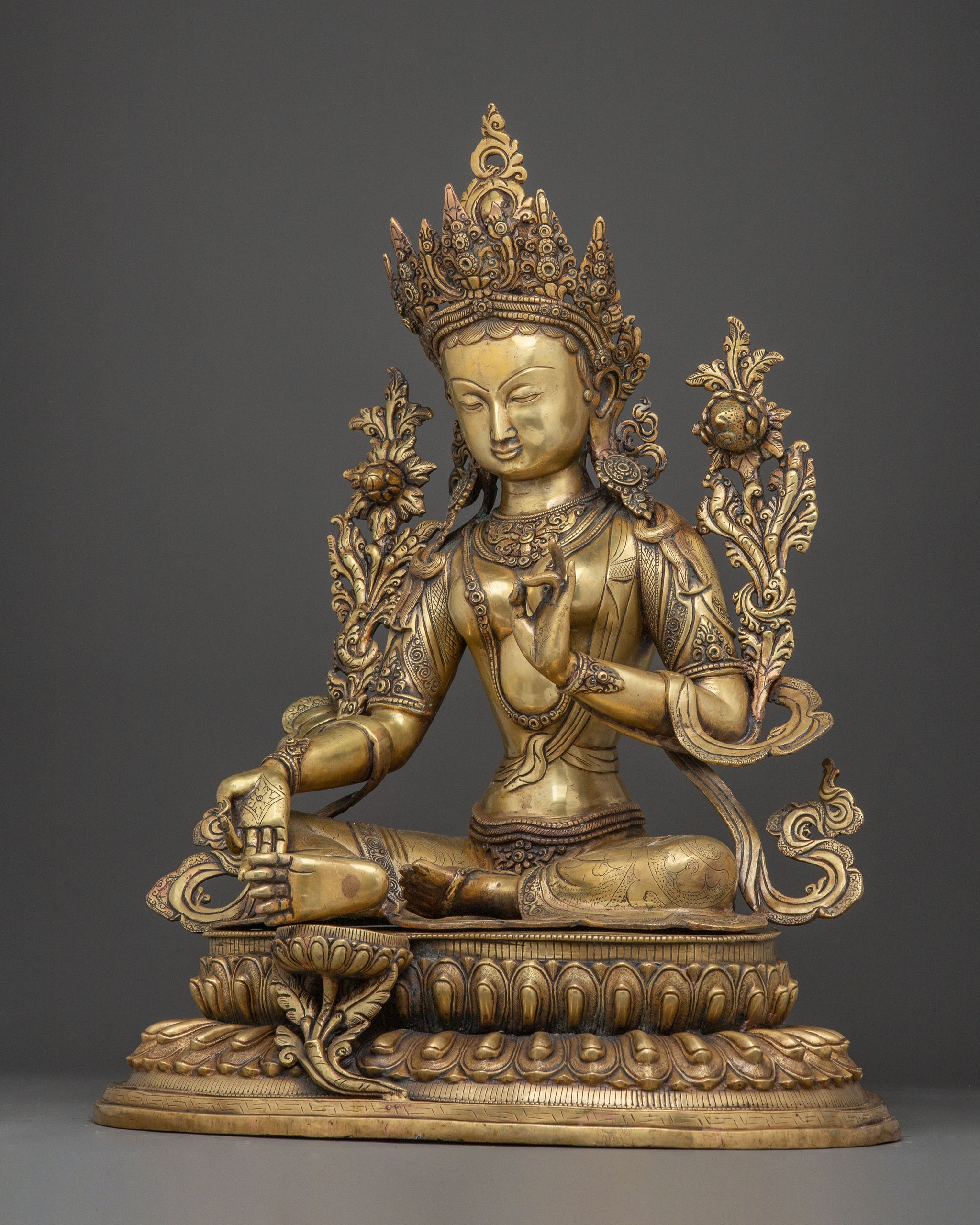 Green Tara Brass Statue: Mother of Liberation | Shyama Tara - Compassionate Protector