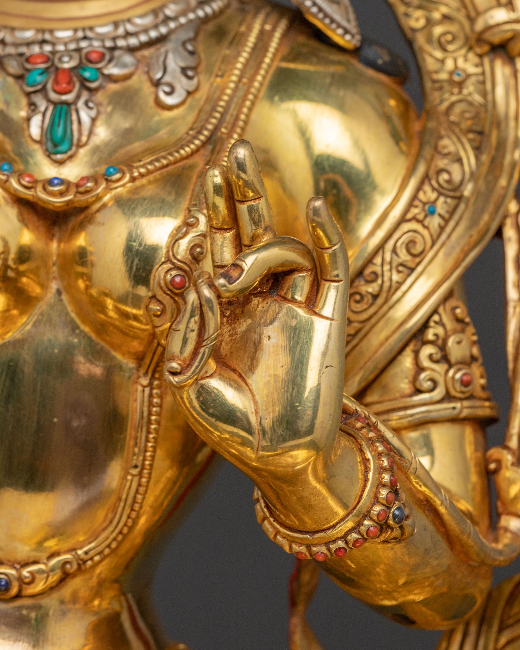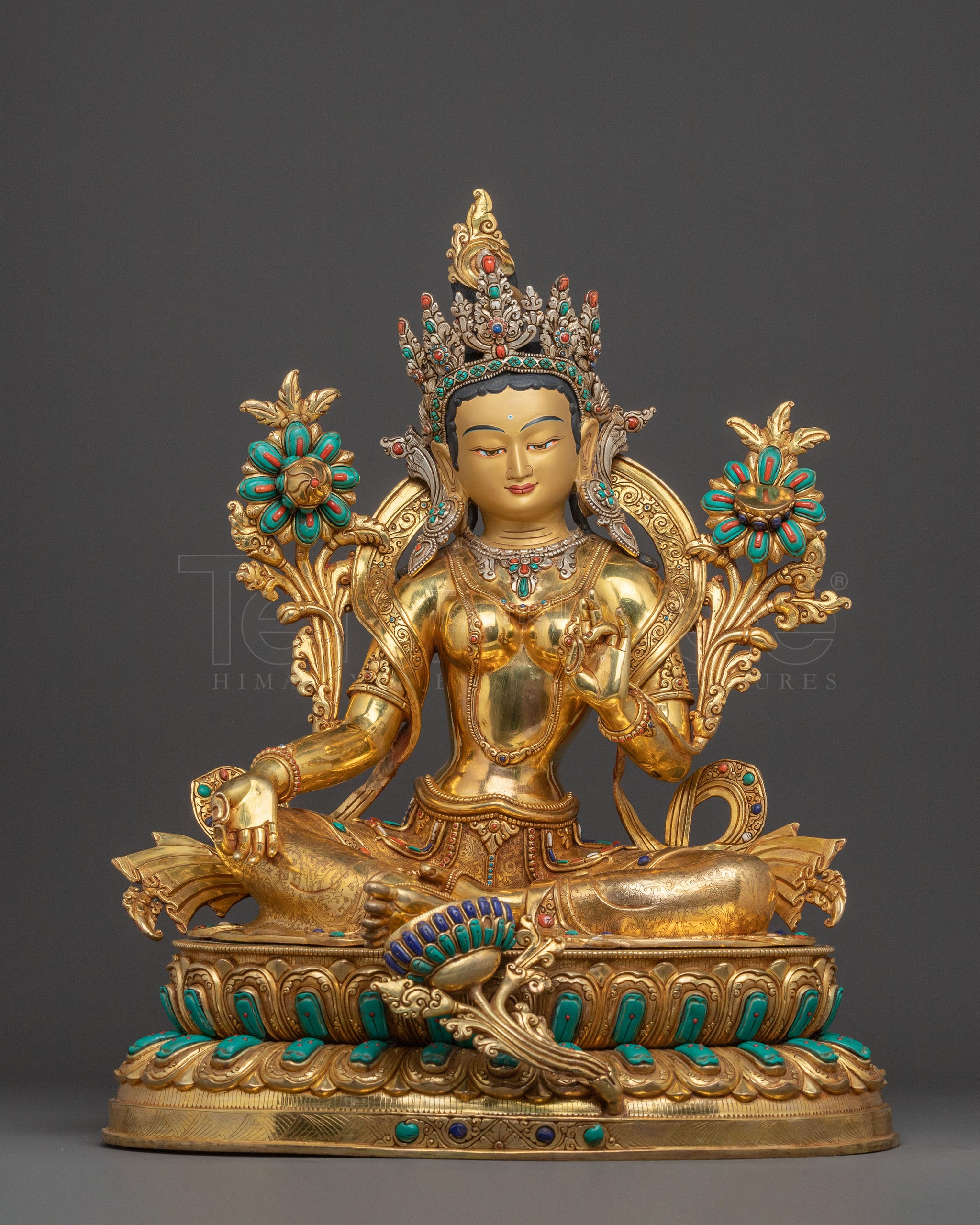 Green Tara Goddess Golden Statue - Triple Layer of 24K Gold Gilding